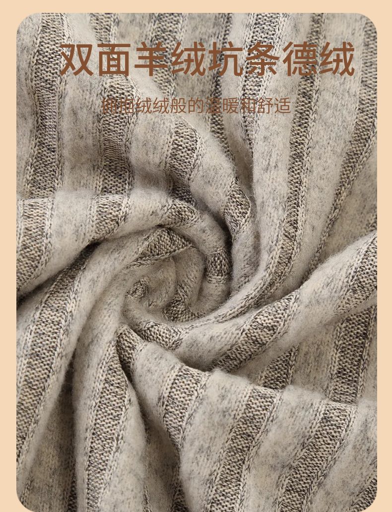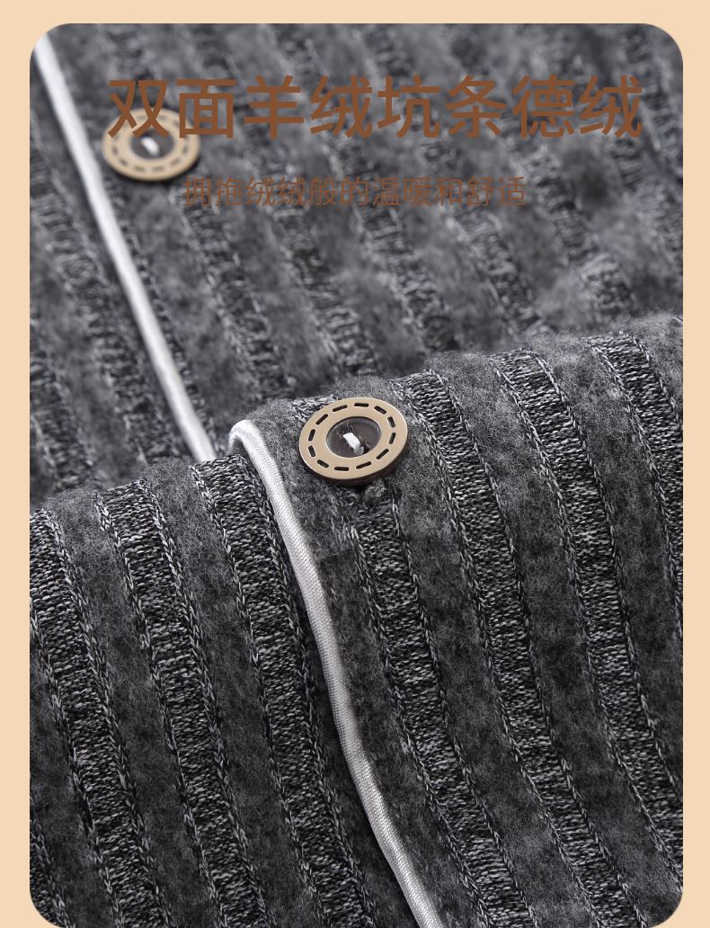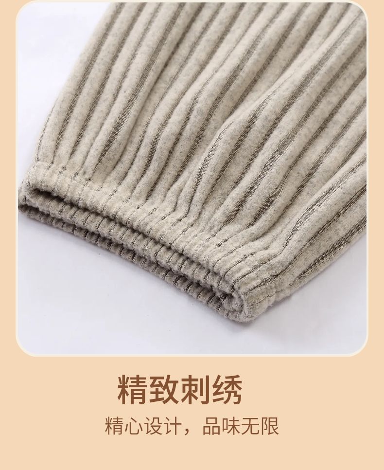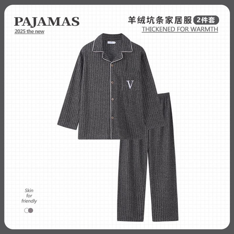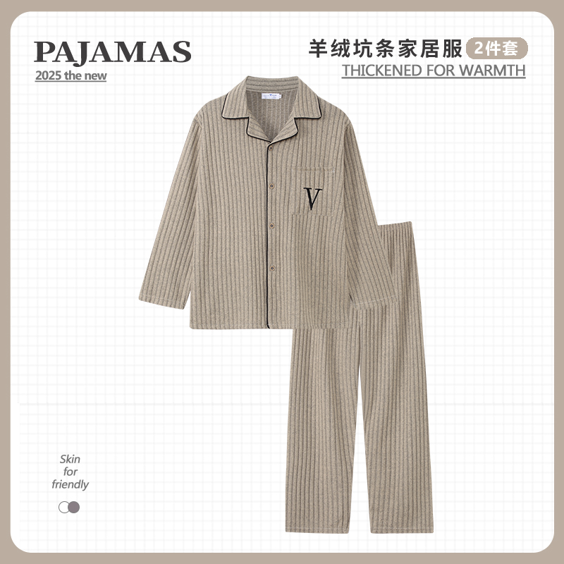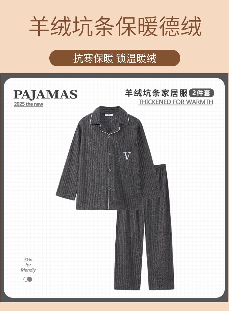 MY15109# 羊绒坑条男士翻领开衫长袖长裤睡衣套装家居服女裝貨源服裝批發