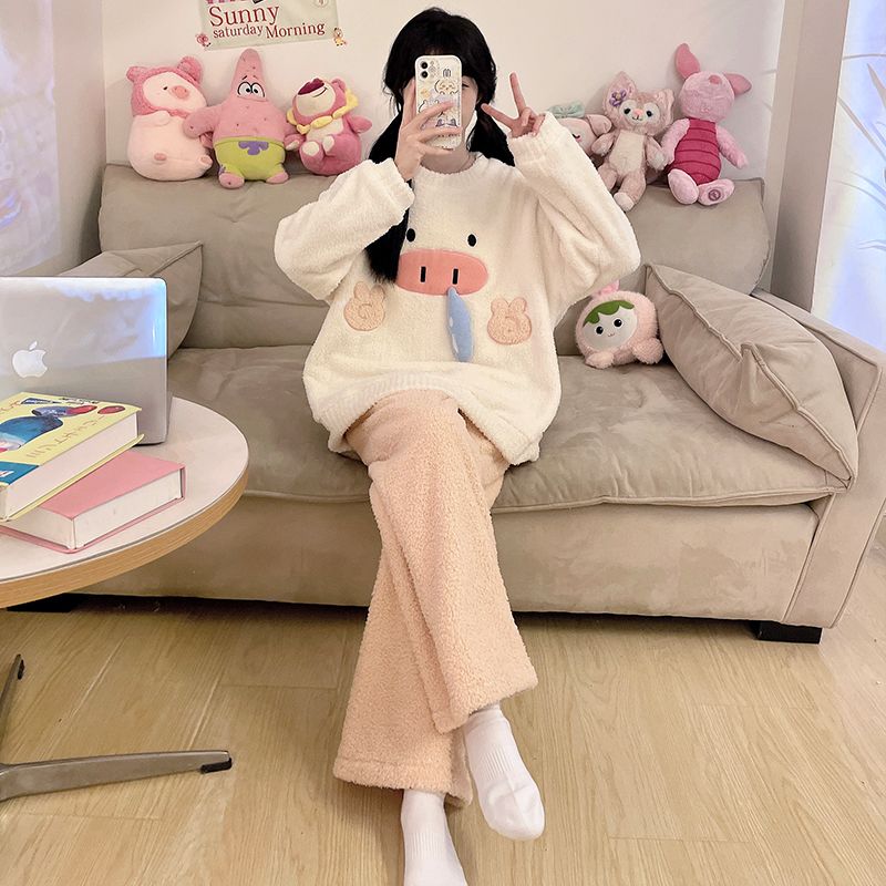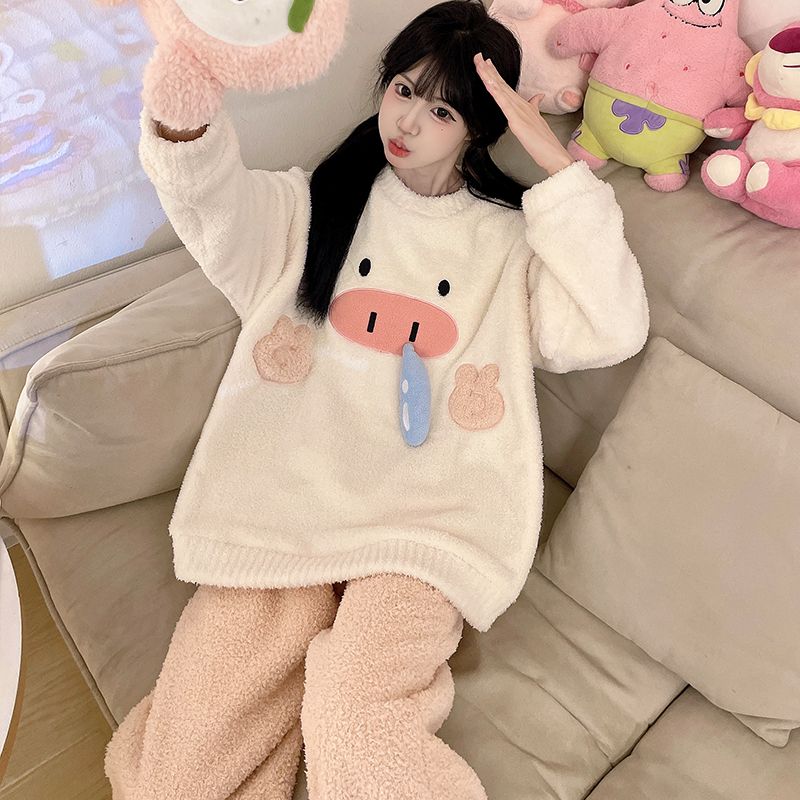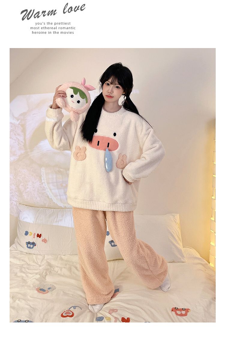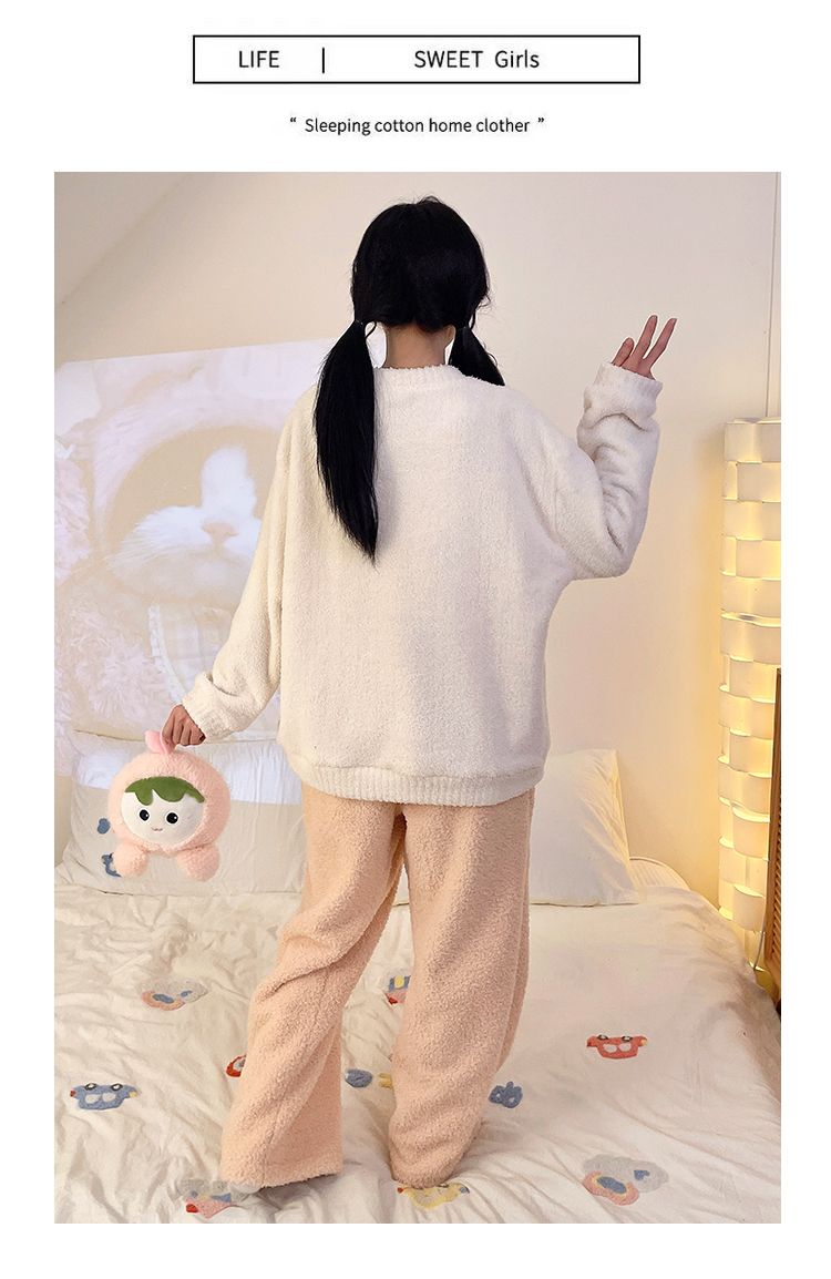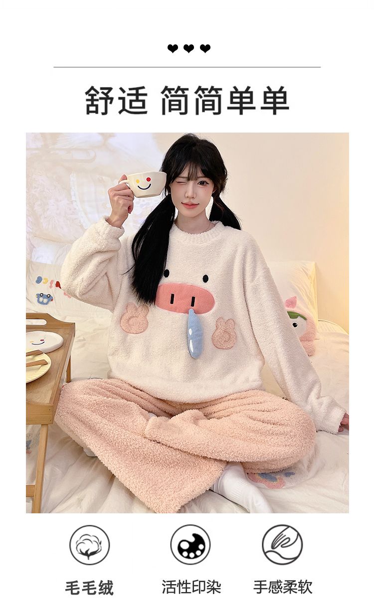 MY15112# 半边绒加厚圆领长袖长裤睡衣女套装家居服女裝貨源服裝批發