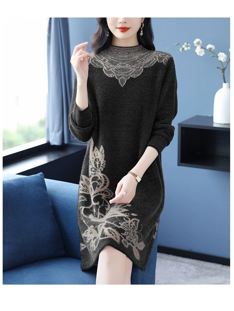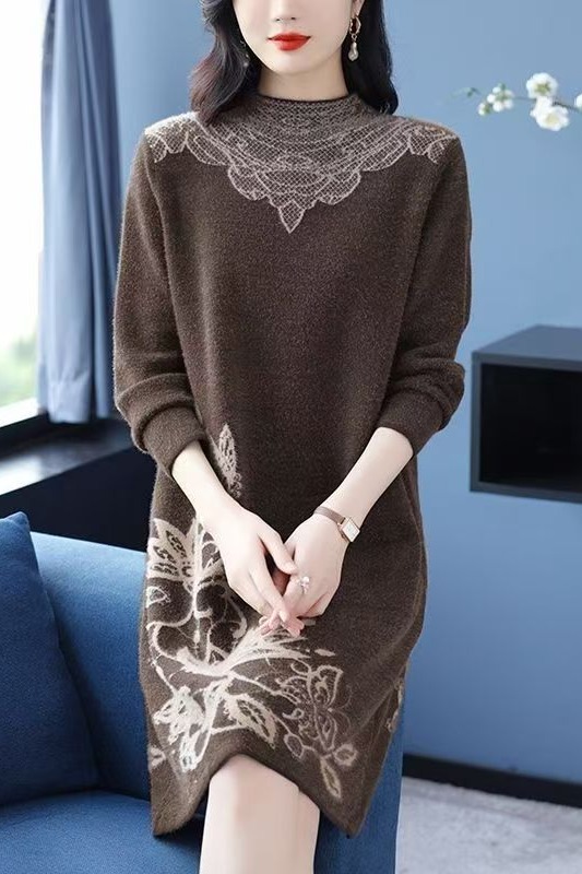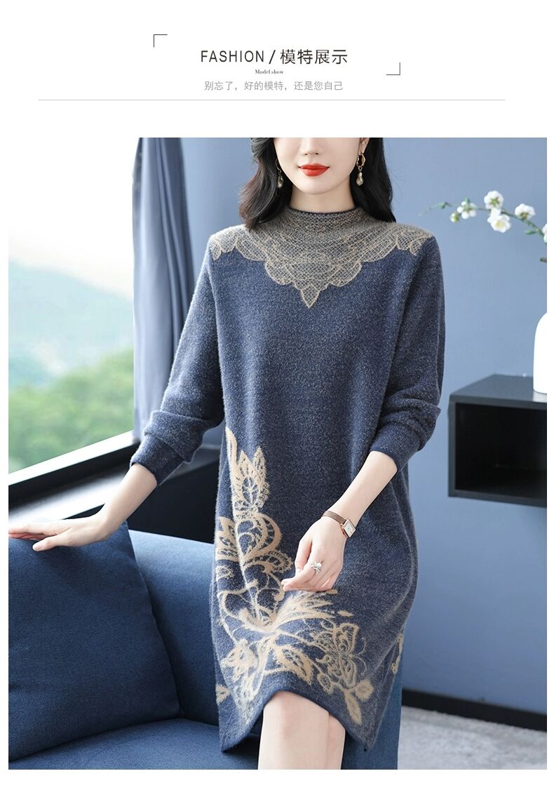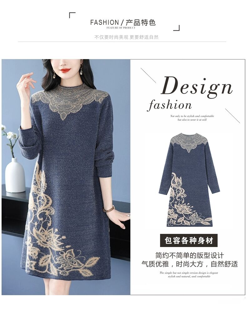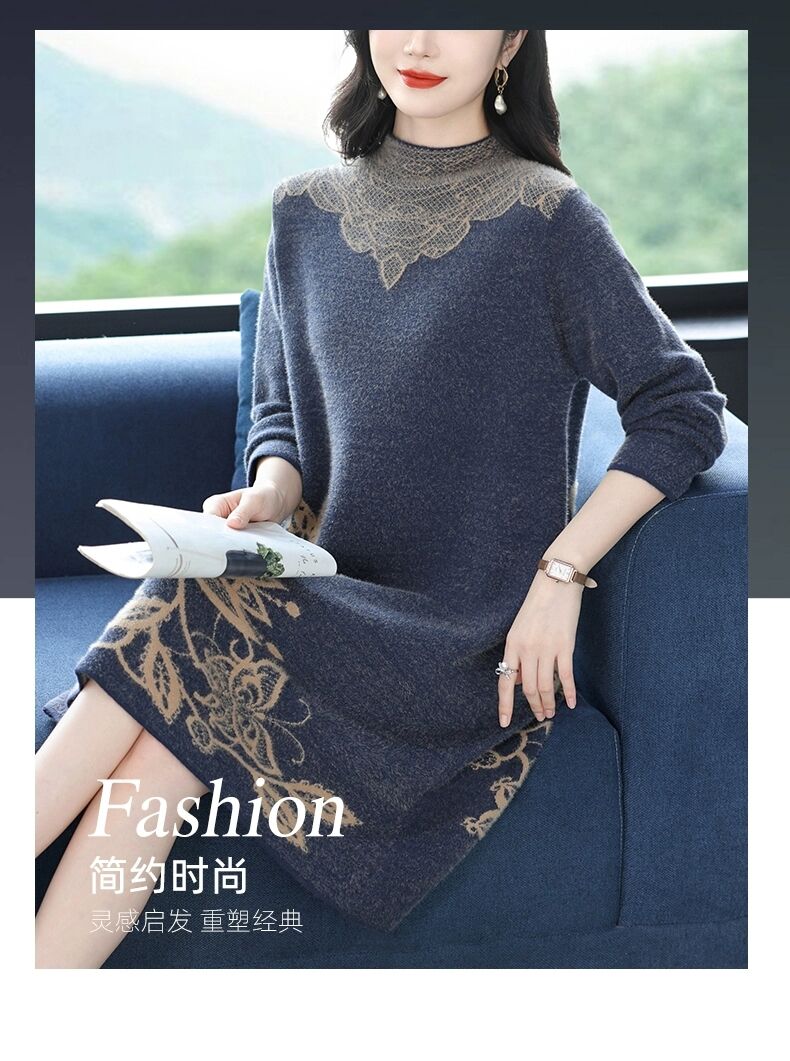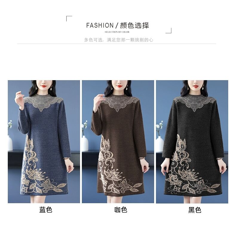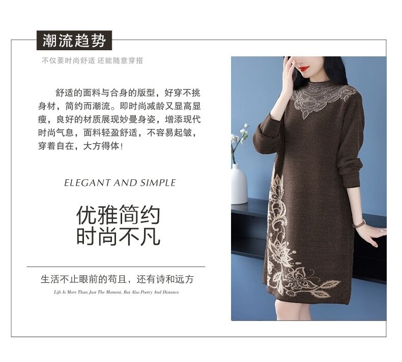 MY15134# 遮肚过膝连衣裙大码中长款毛衣打底衫女裝貨源服裝批發