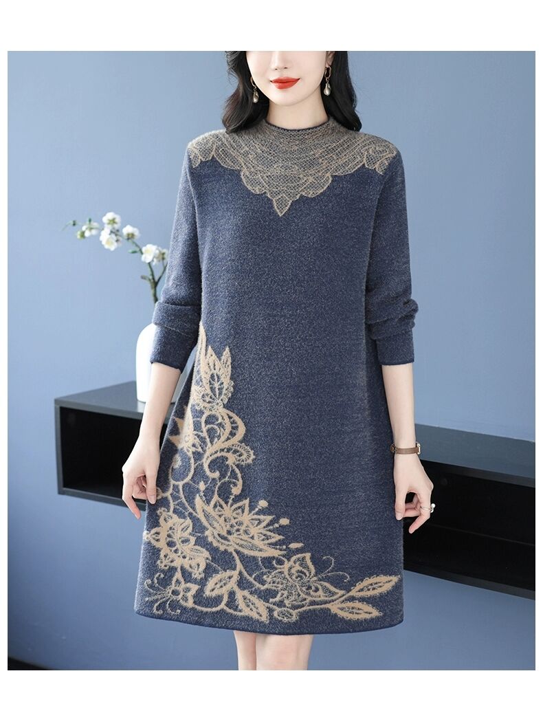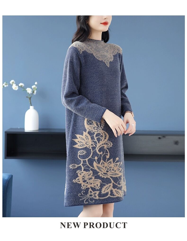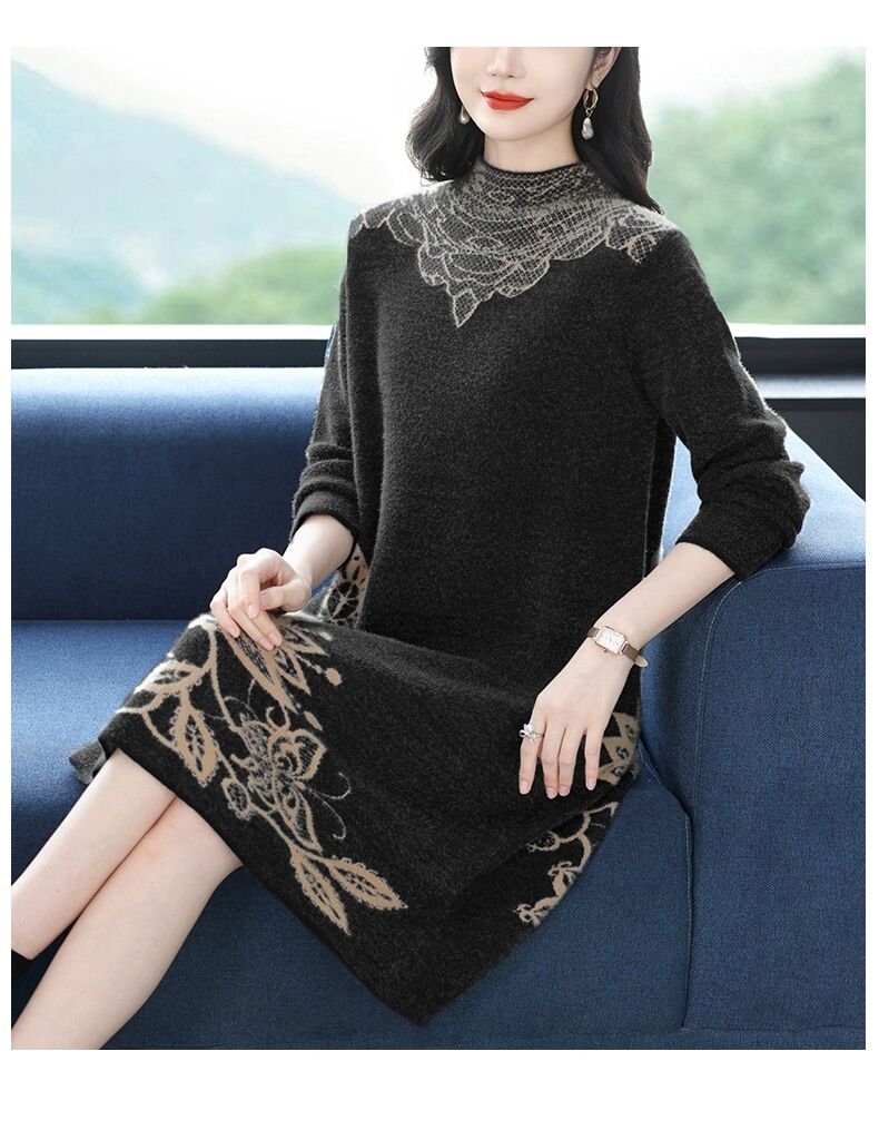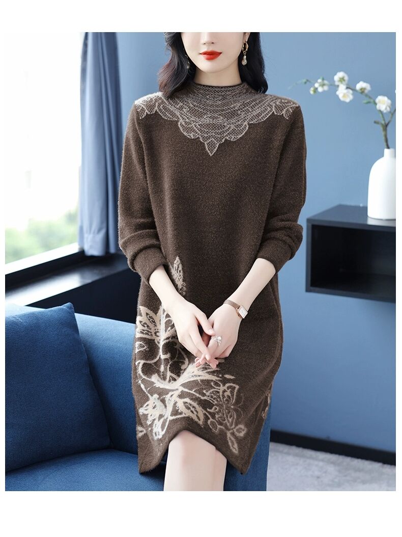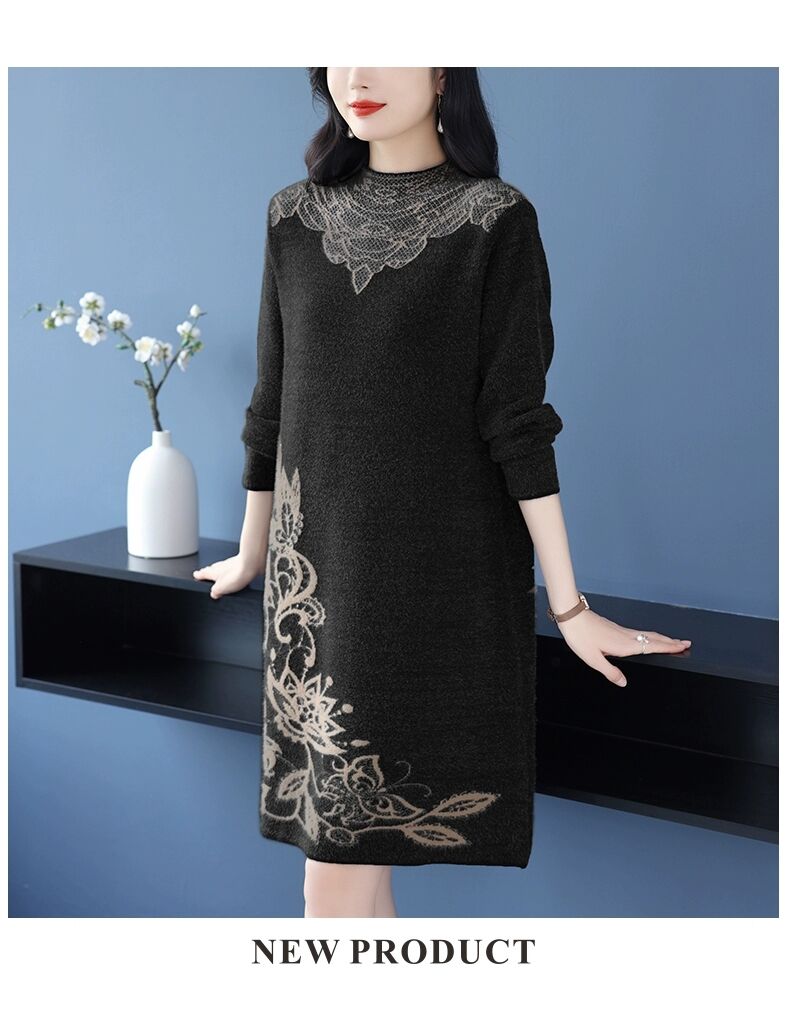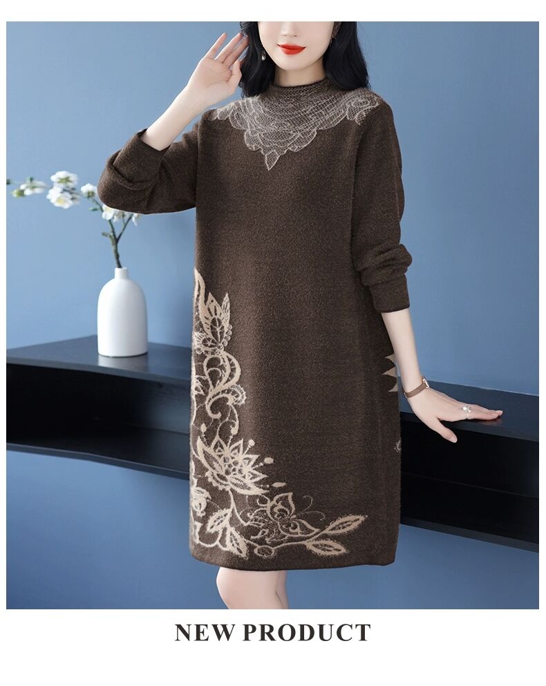 MY15134# 遮肚过膝连衣裙大码中长款毛衣打底衫女裝貨源服裝批發