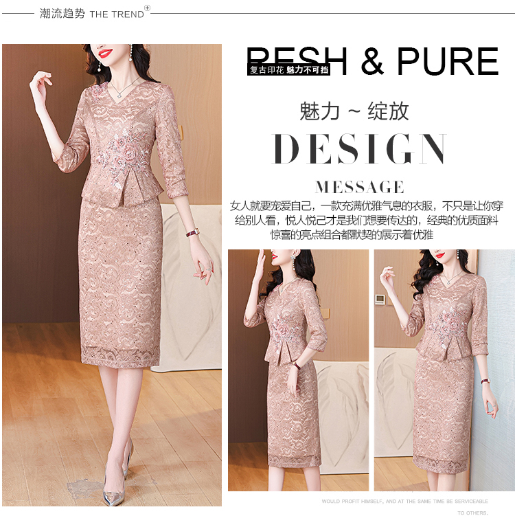 MY15167# 小个子妈妈装婚宴礼服高贵气质喜婆婆洋气连衣裙平时可穿女裝...