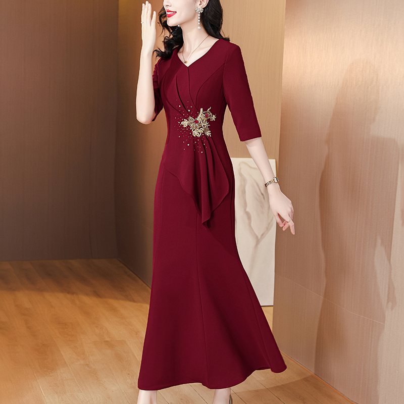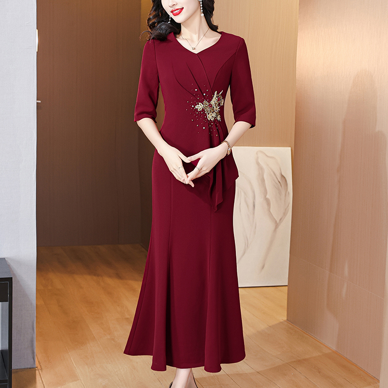 MY15166# 新款喜婆婆高贵优雅宴会连衣裙妈妈婚宴礼服女裝貨源服裝批發