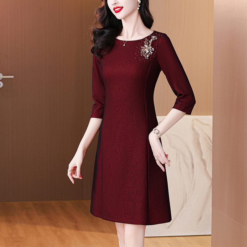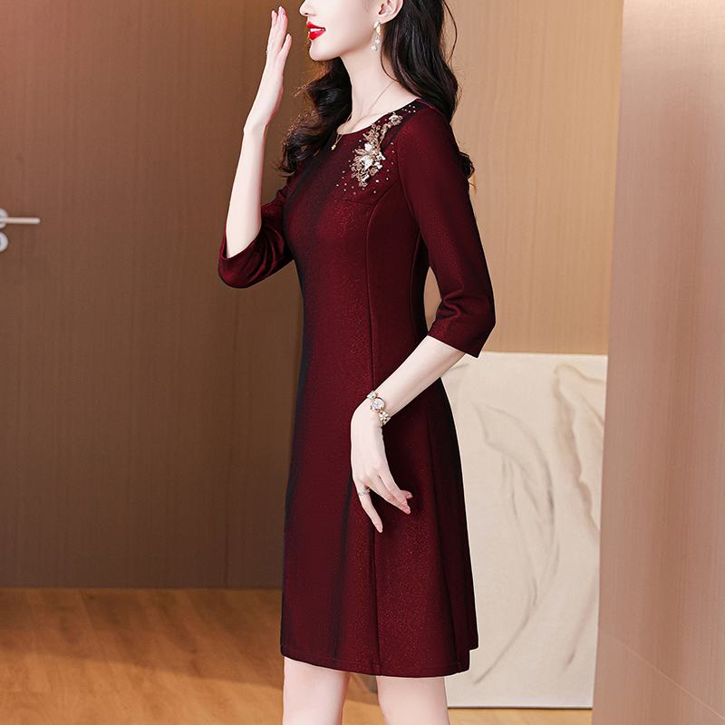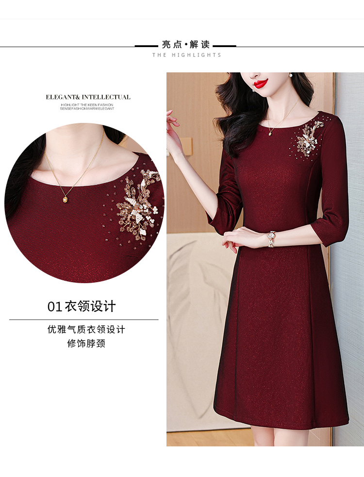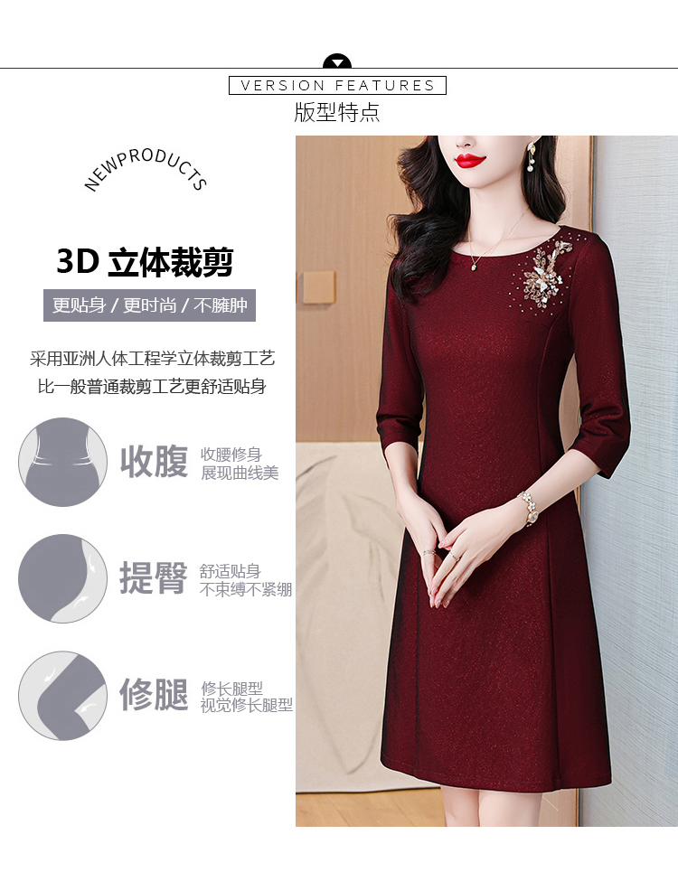 MY15167# 小个子妈妈装婚宴礼服高贵气质喜婆婆洋气连衣裙平时可穿女裝貨源服裝批發