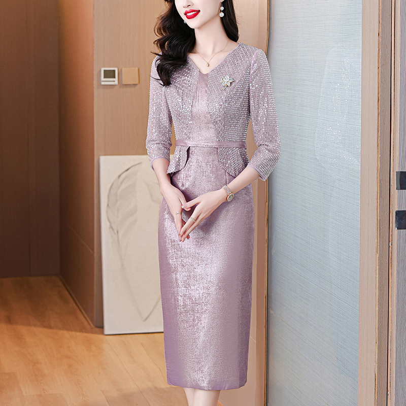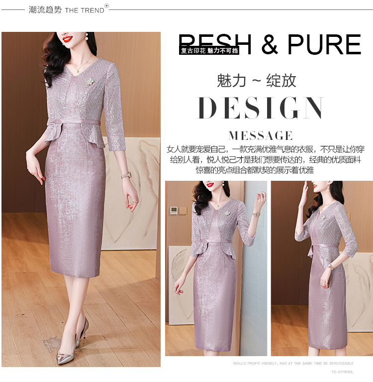 MY15168# 新款喜婆婆装高贵妈妈装婚宴旗袍礼服高端气质女裝貨源服裝批發