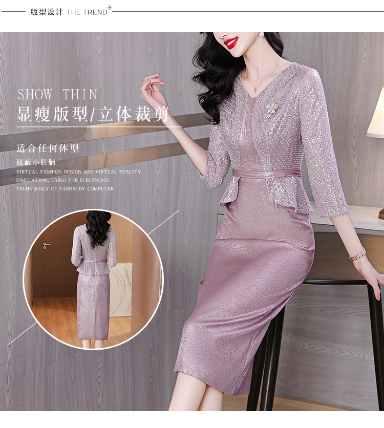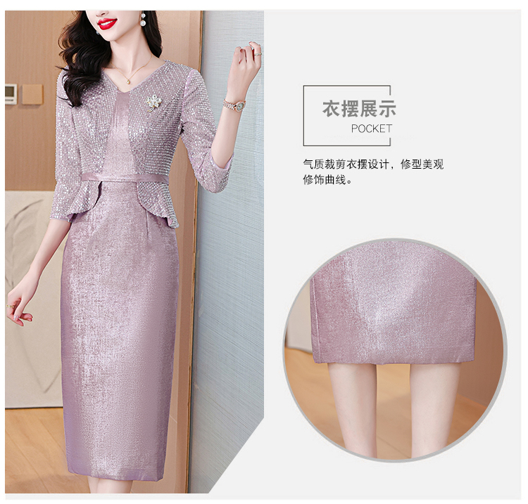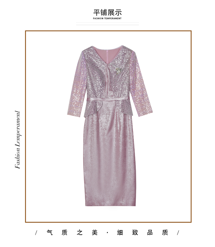 MY15163# 粉色喜婆婆婚宴装新款年轻妈妈结婚礼服平时可穿轻奢套装旗袍...