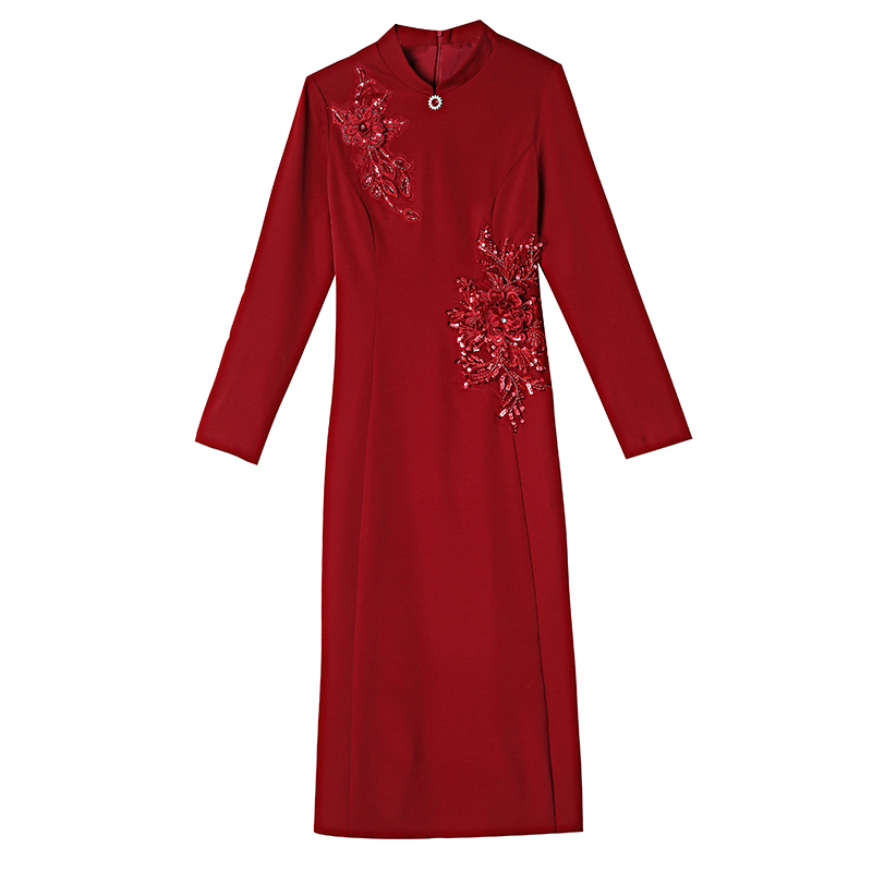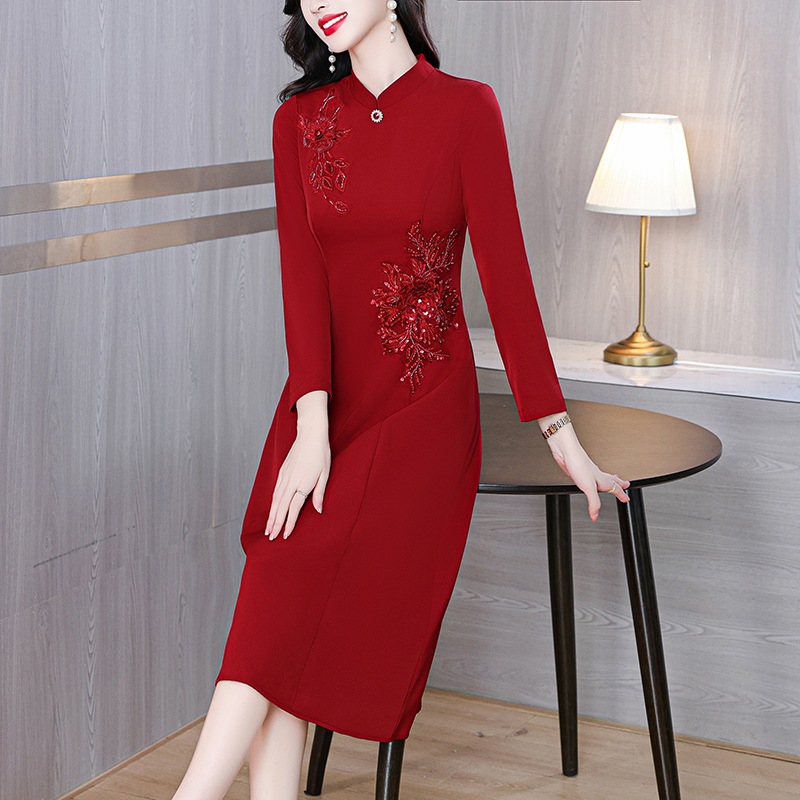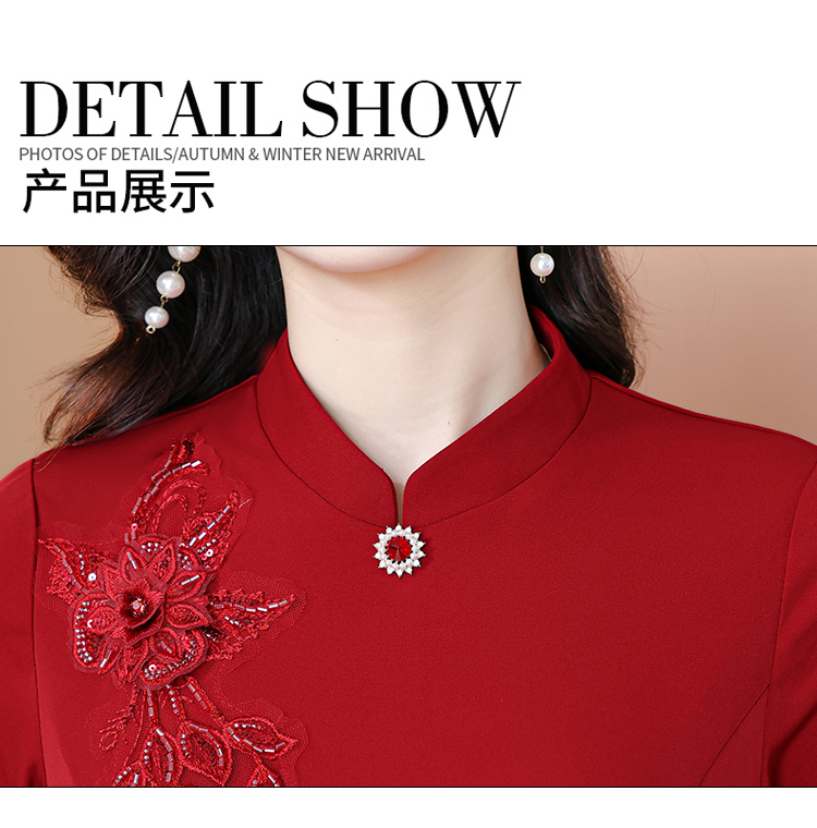 MY15169# 新款喜婆婆婚宴装高贵丈母娘婚礼旗袍妈妈礼服短袖女裝貨源服裝批發