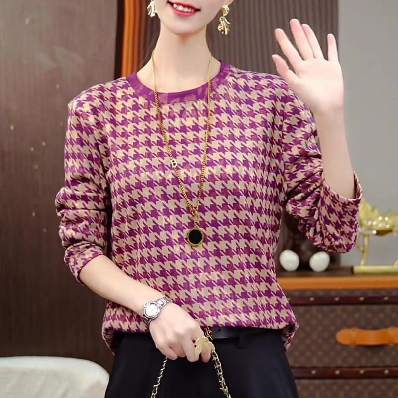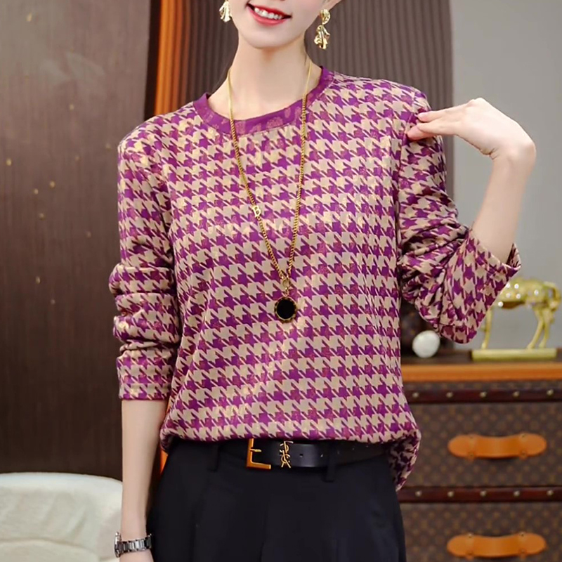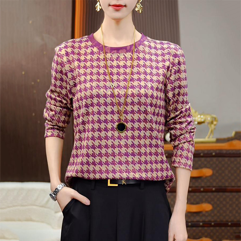 MY15178# 千鸟紫格新款抗起球高端减龄显瘦打底衫女裝貨源服裝批發