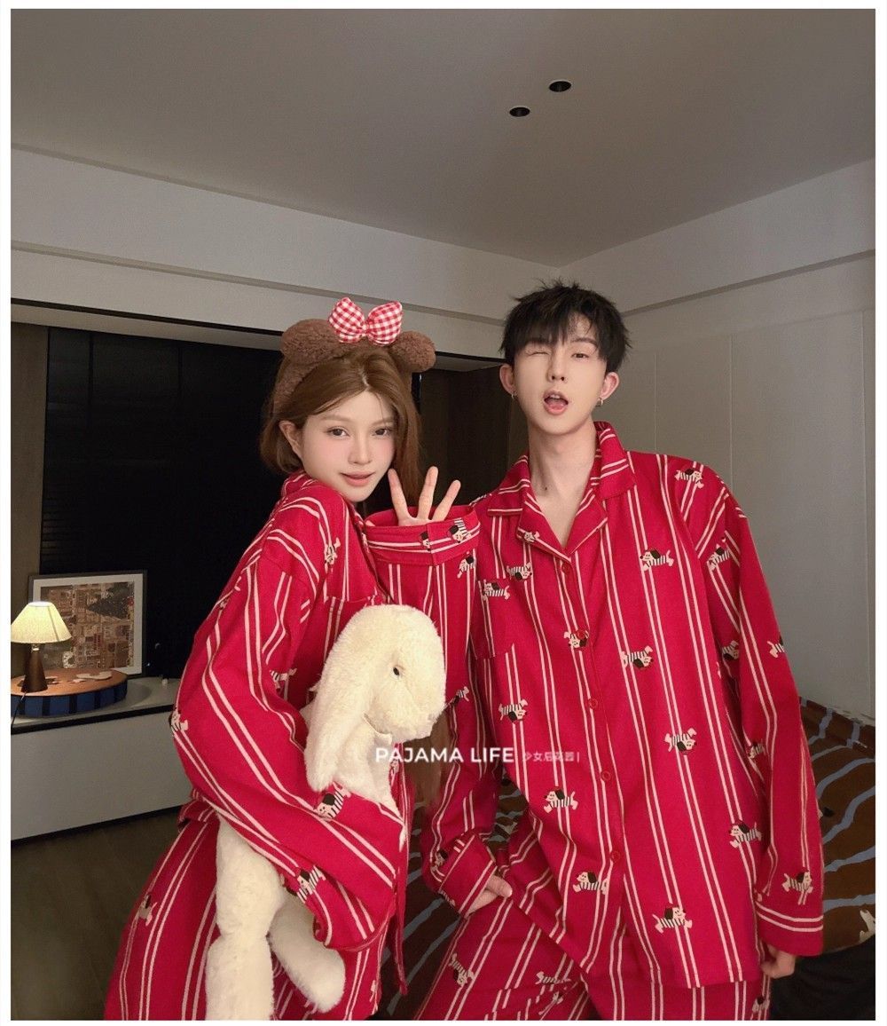 MY15190# 新款云朵棉情侣睡衣女韩版翻领开衫宽松休闲家居服套装女裝貨源服裝批發