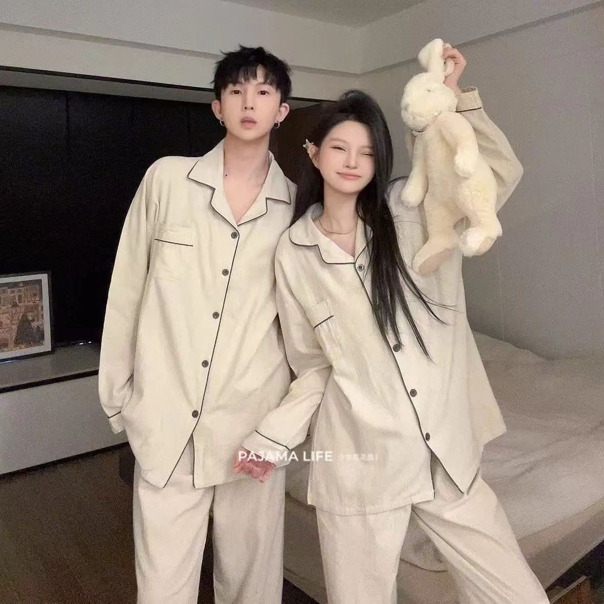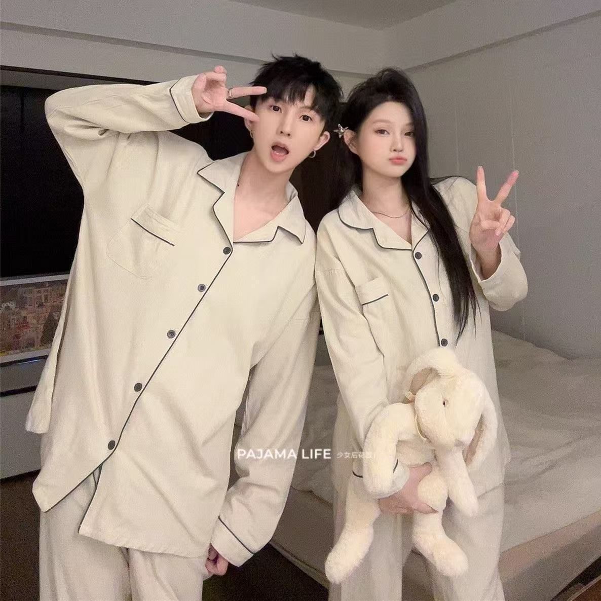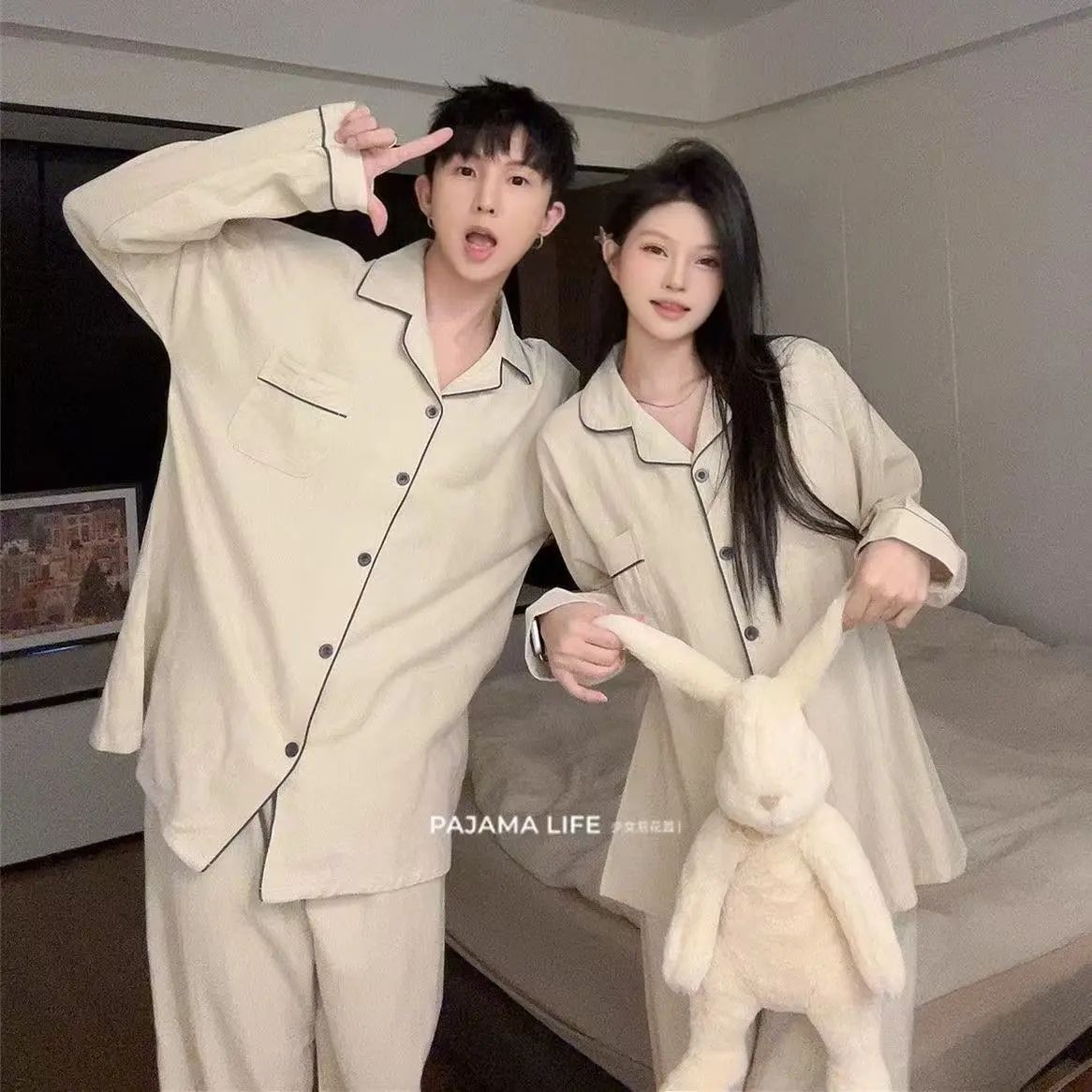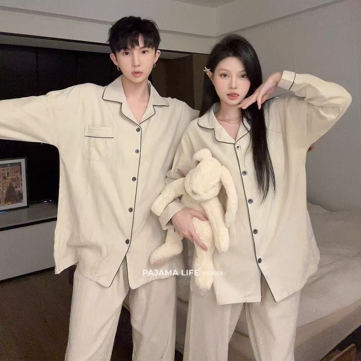 MY15191# 新款云朵棉情侣睡衣女韩版翻领开衫宽松休闲家居服套装女裝貨源服裝批發