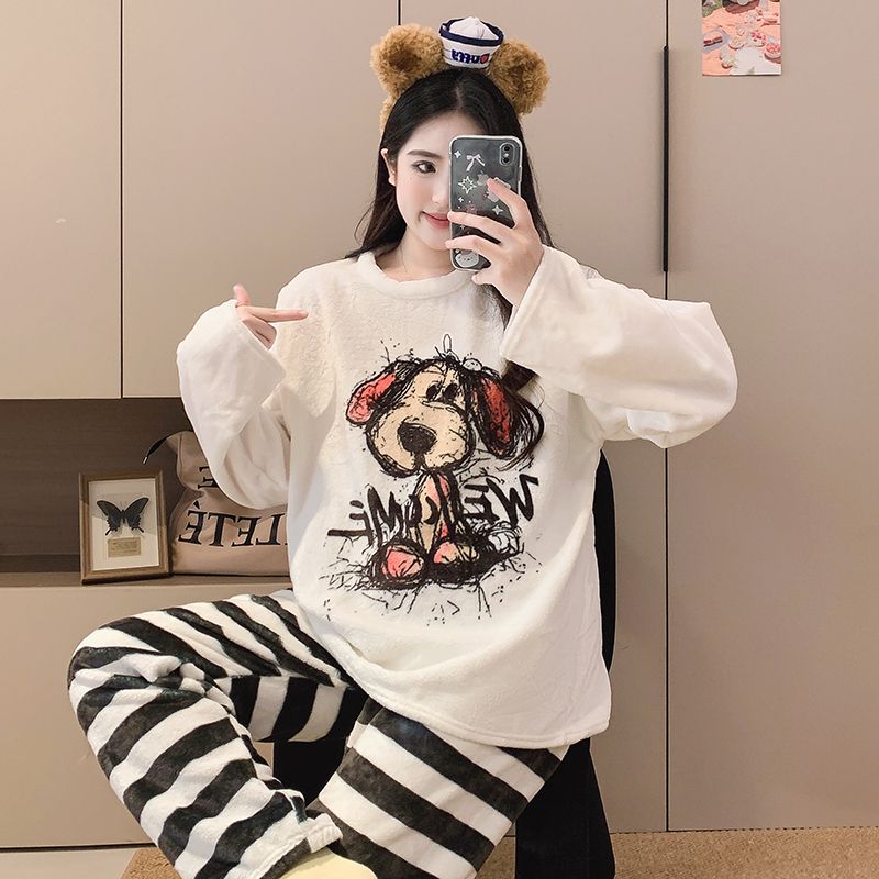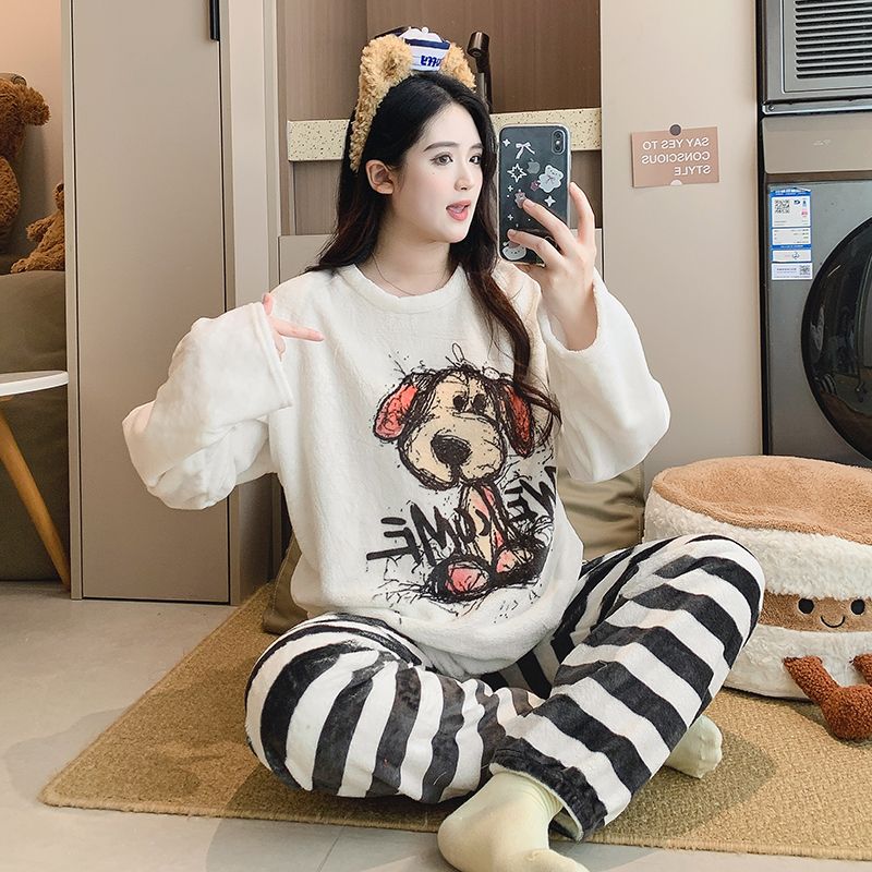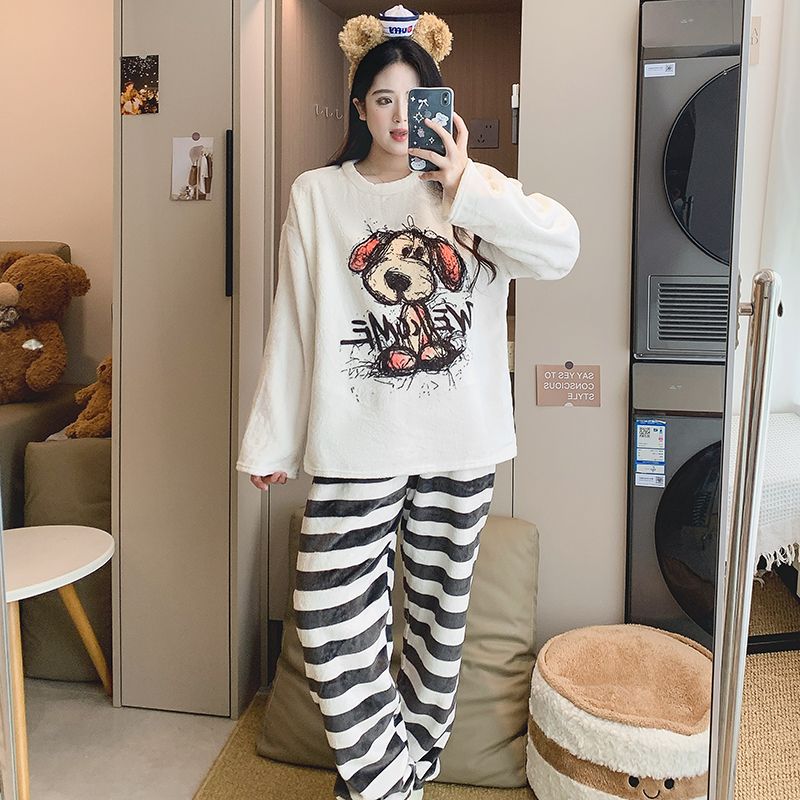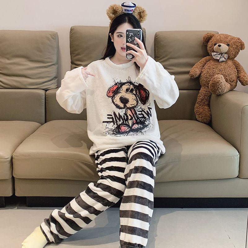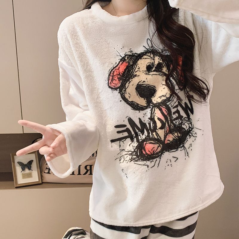 MY15197# 新款法兰绒圆领卡通甜美睡衣女韩系可爱宽松家居服套装女裝貨源服裝批發