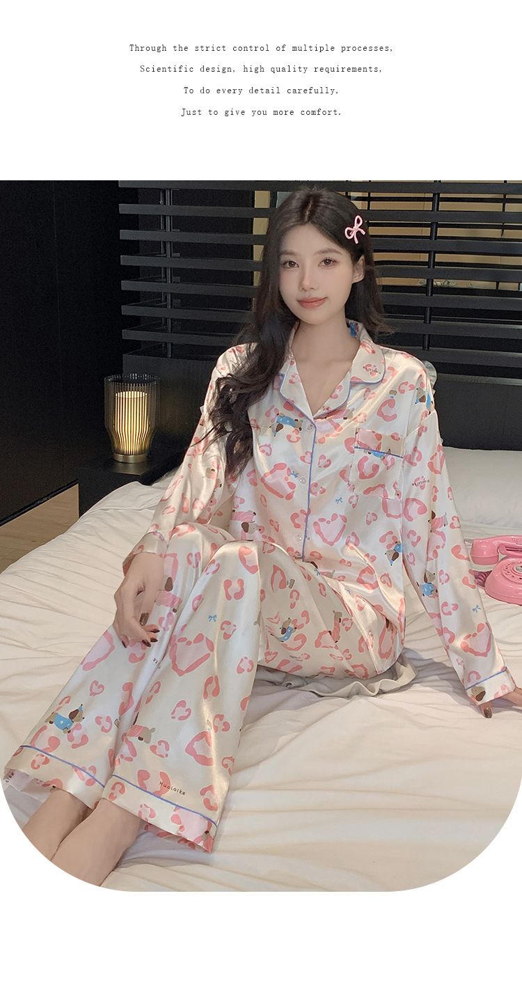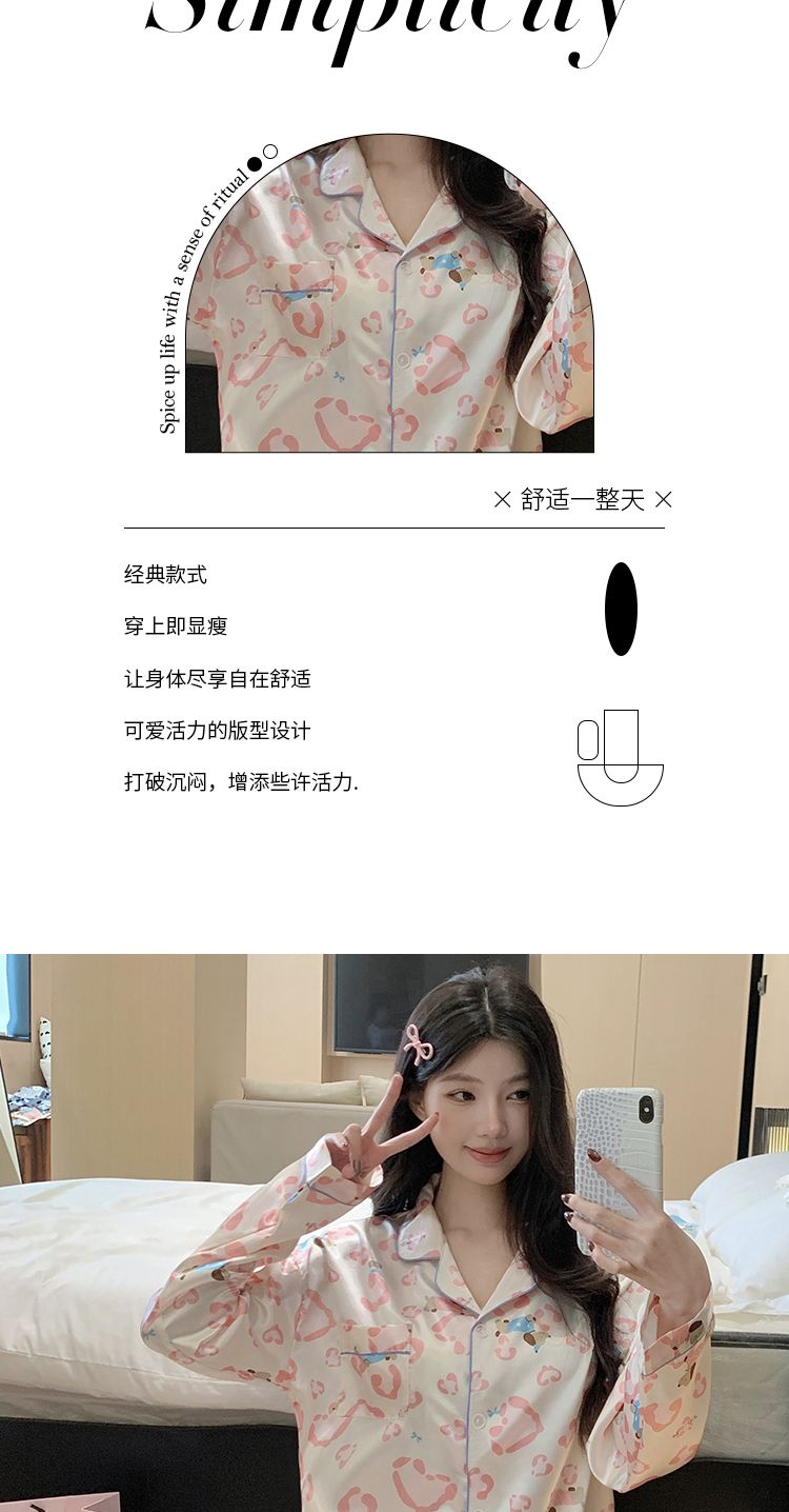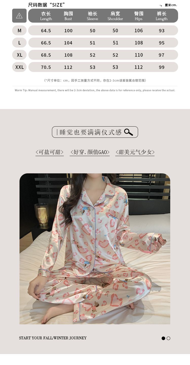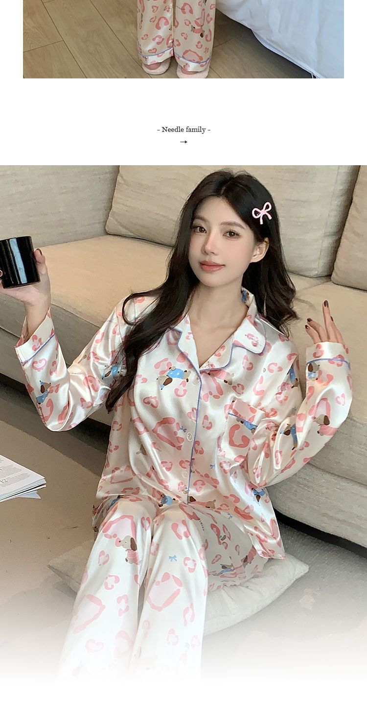 MY15199# 新款韩版ins风豹纹小狗睡衣女仿真丝婚庆家居服套装女裝貨源服裝批發