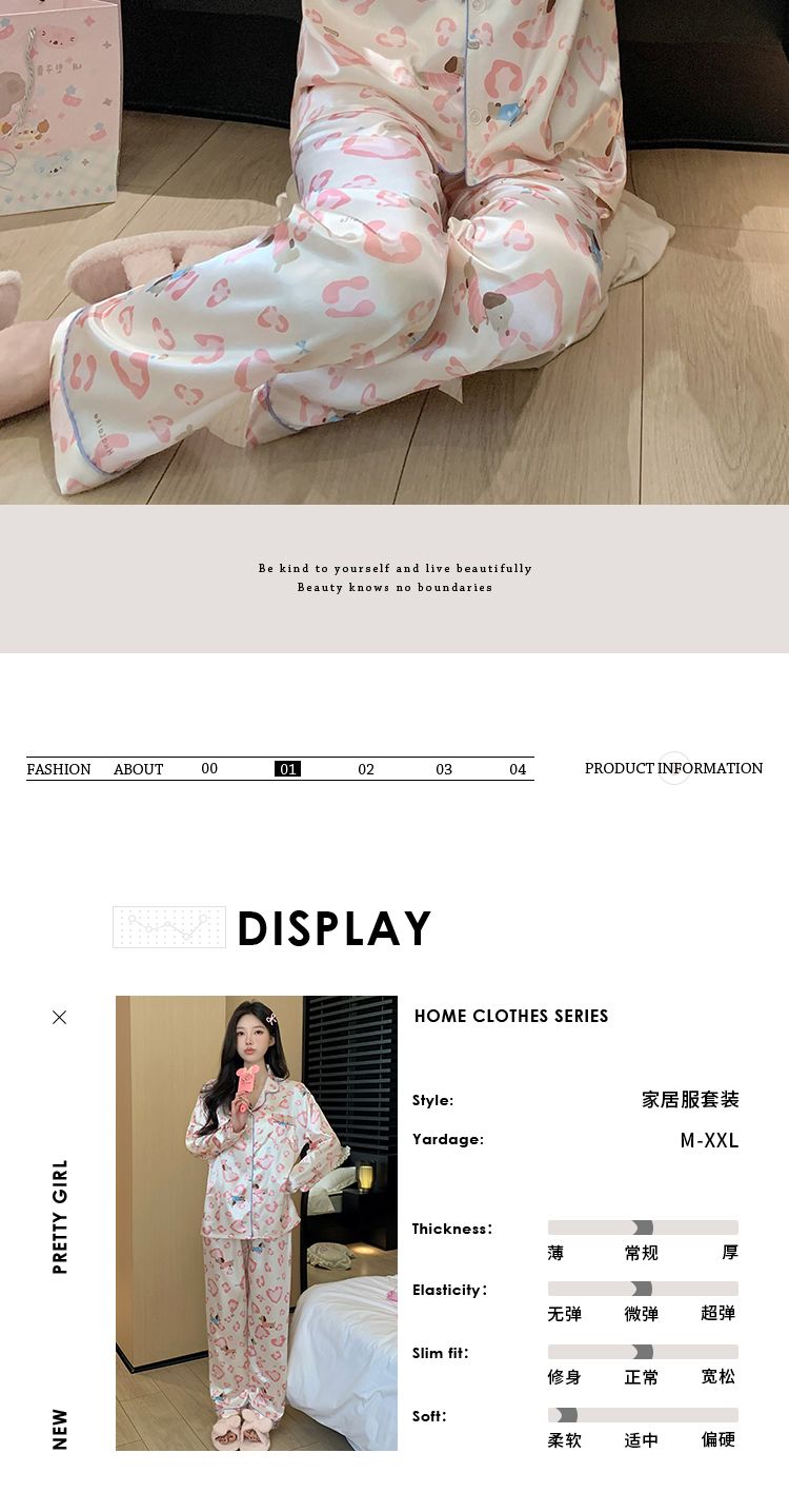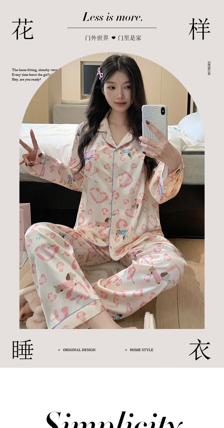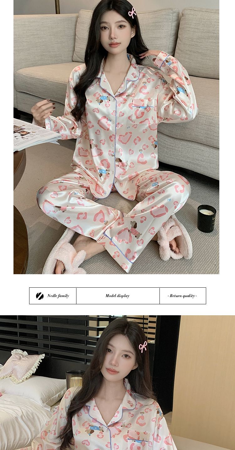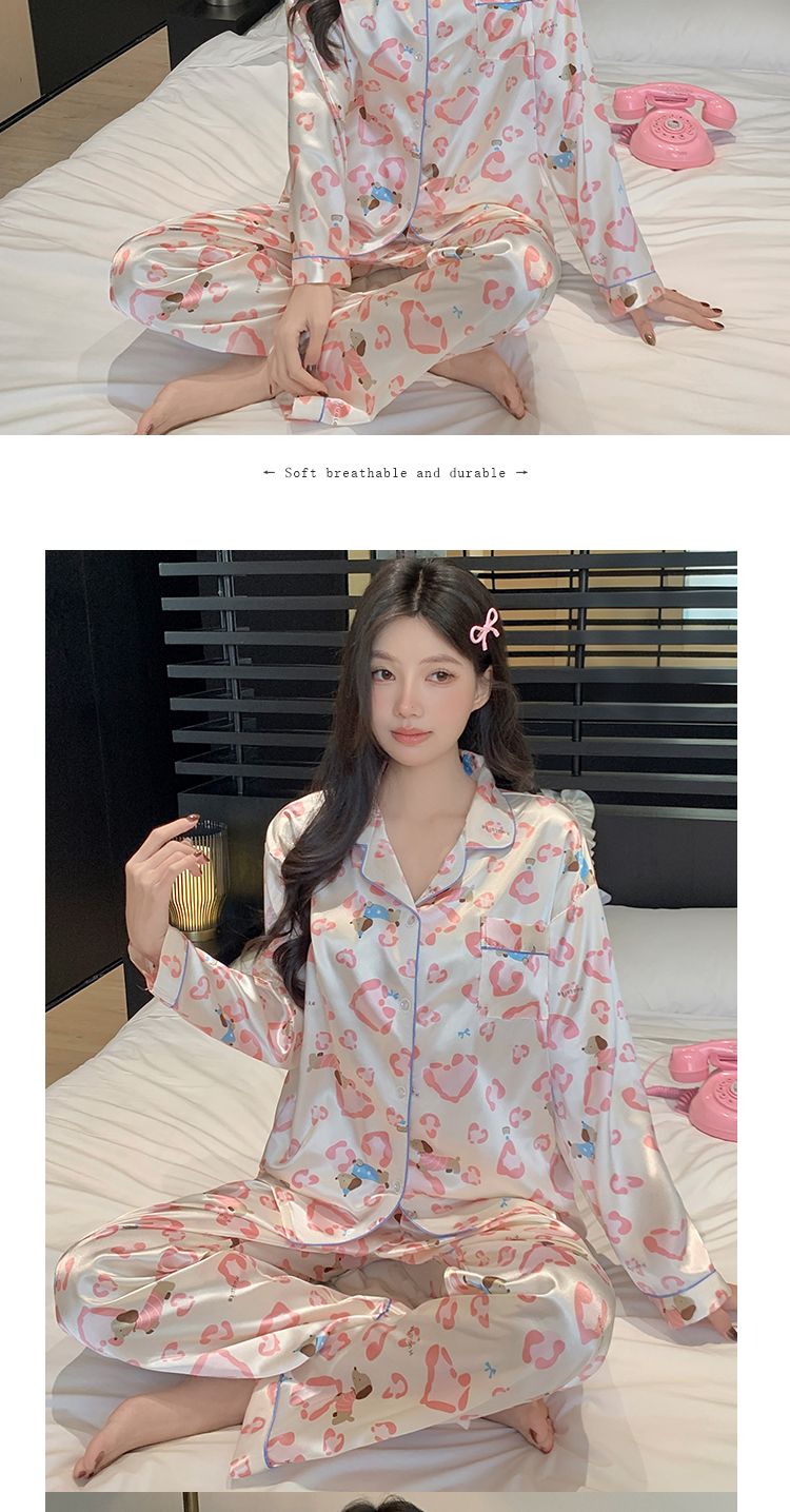 MY15199# 新款韩版ins风豹纹小狗睡衣女仿真丝婚庆家居服套装女裝貨源服裝批發