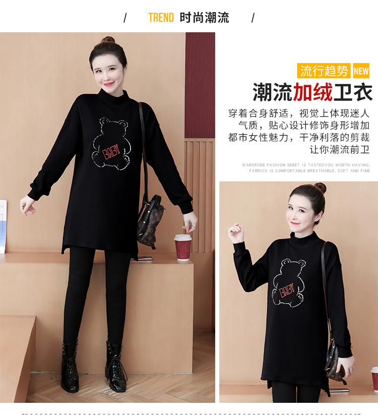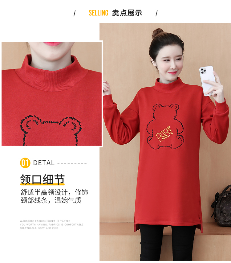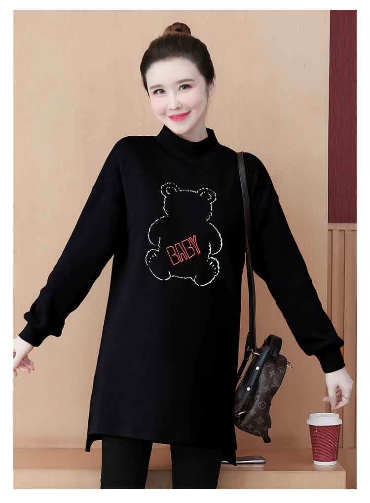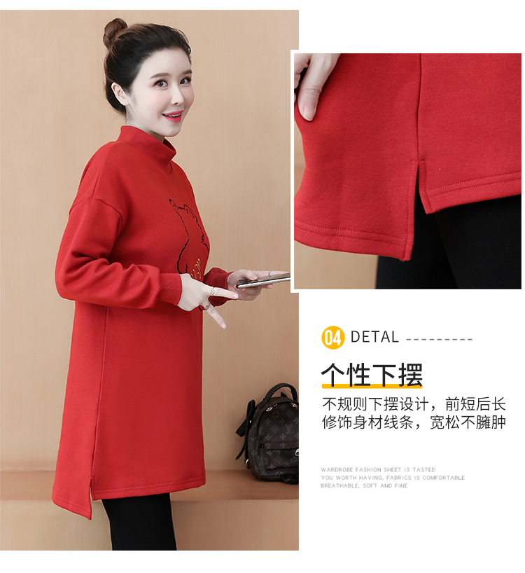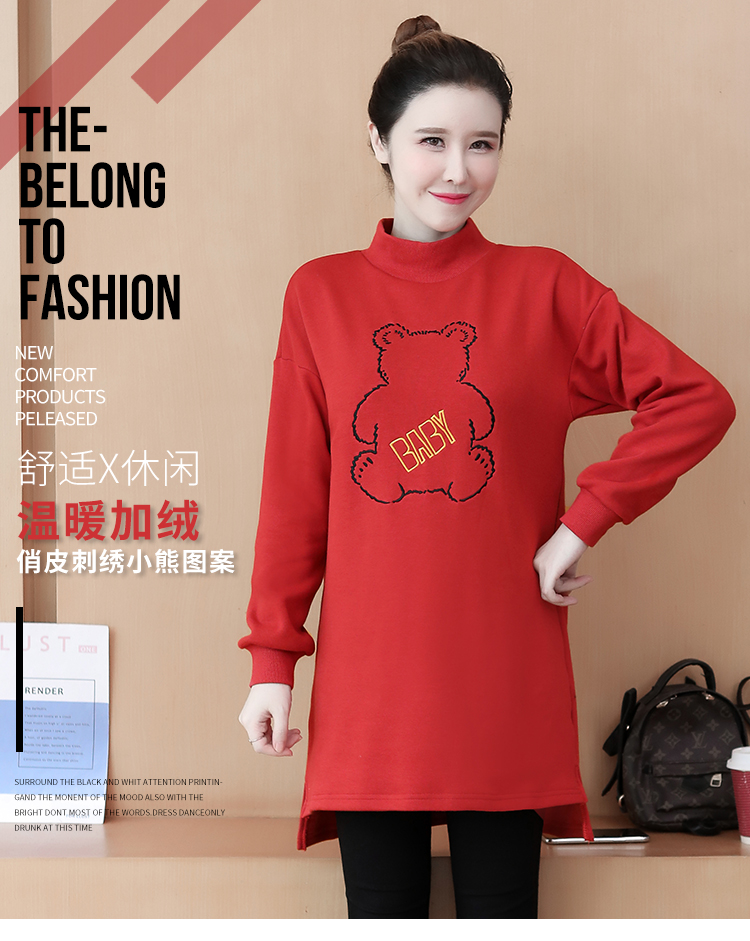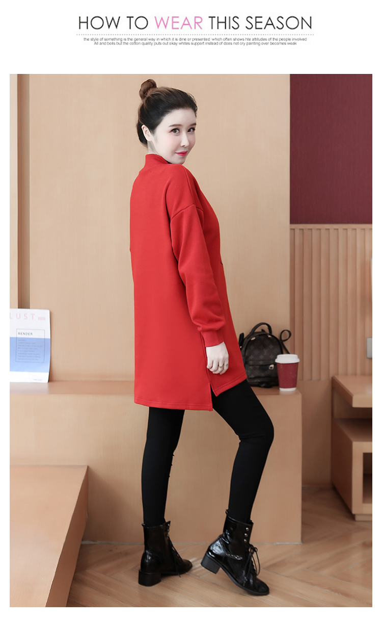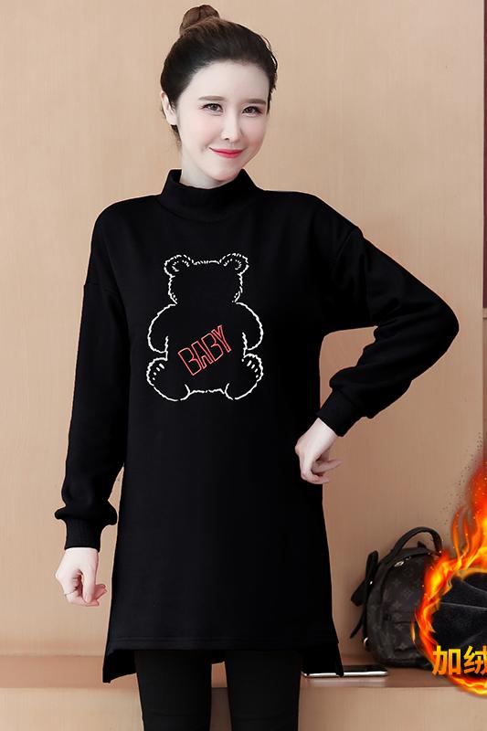 MY15205# 加绒卫衣女加厚宽松刺绣中长款半高领打底衫韩版外套百搭女裝貨源服裝批發