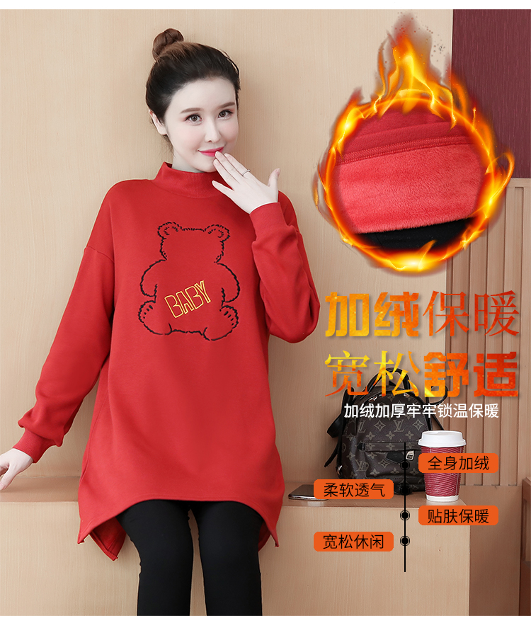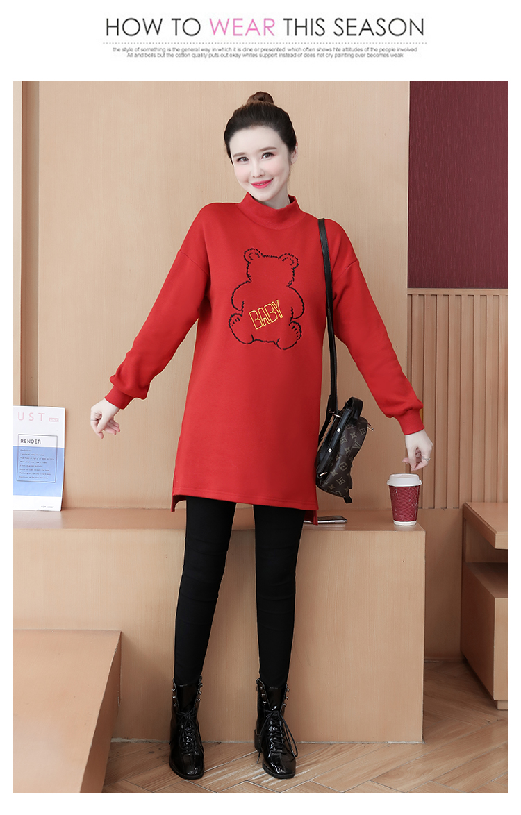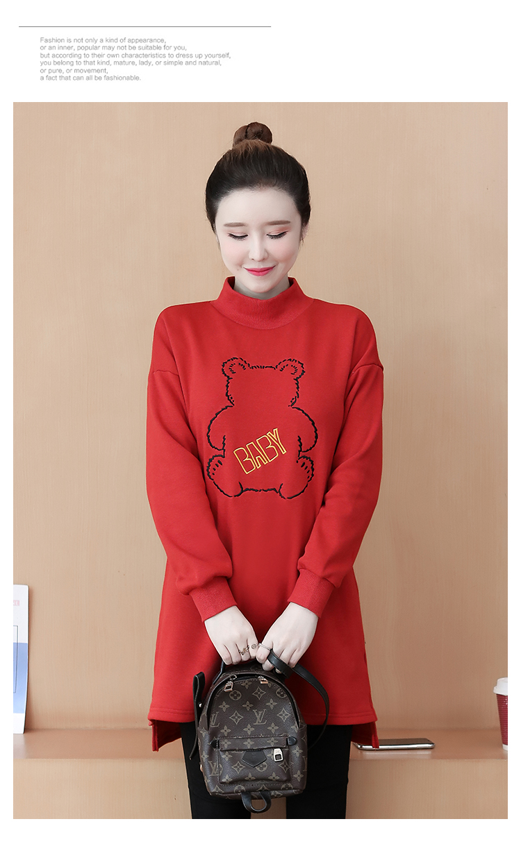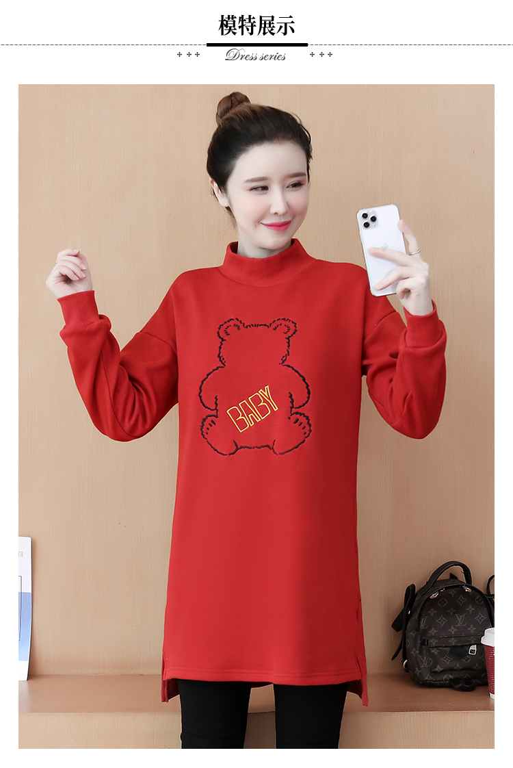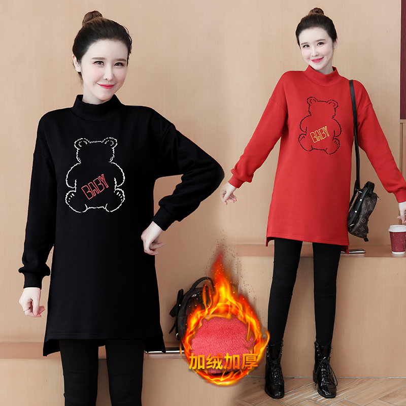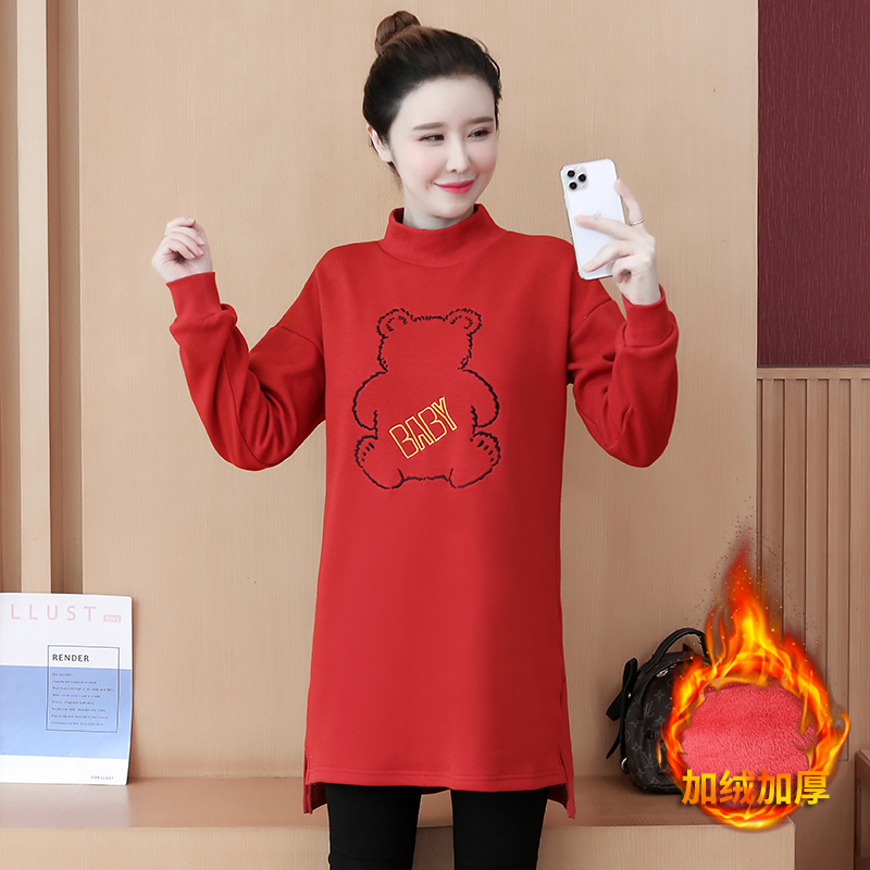 MY15205# 加绒卫衣女加厚宽松刺绣中长款半高领打底衫韩版外套百搭女裝貨源服裝批發