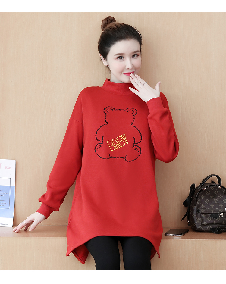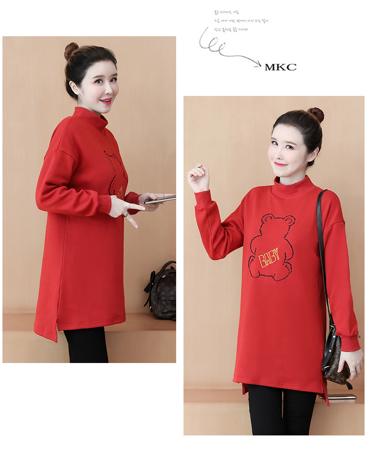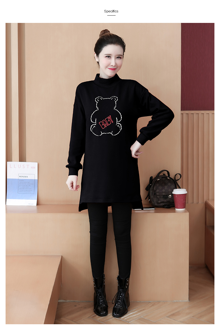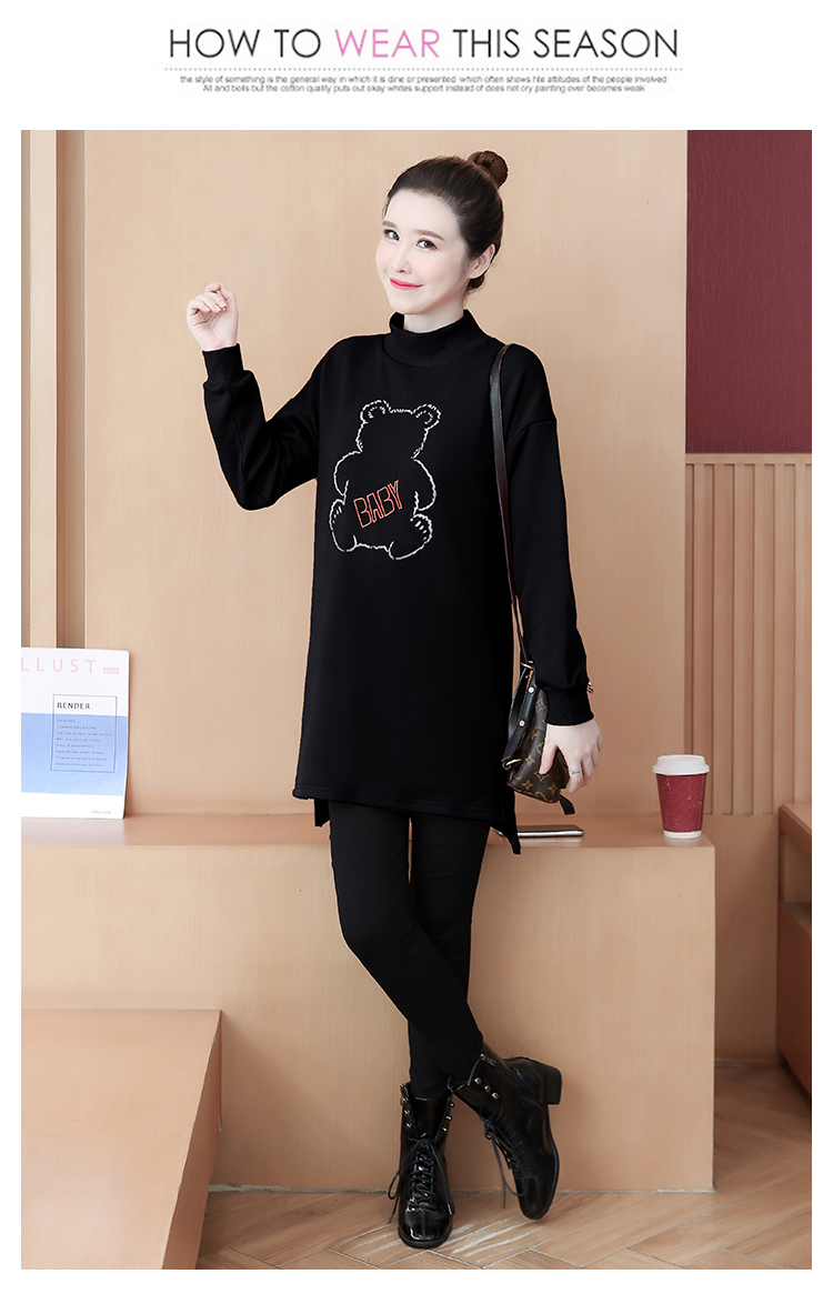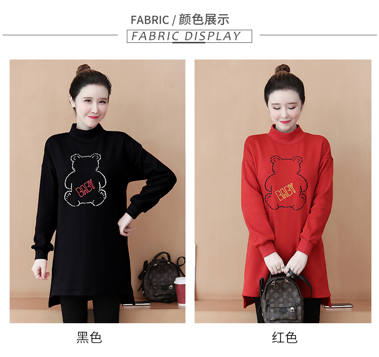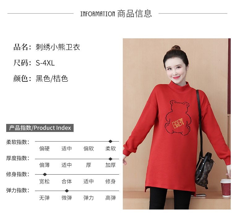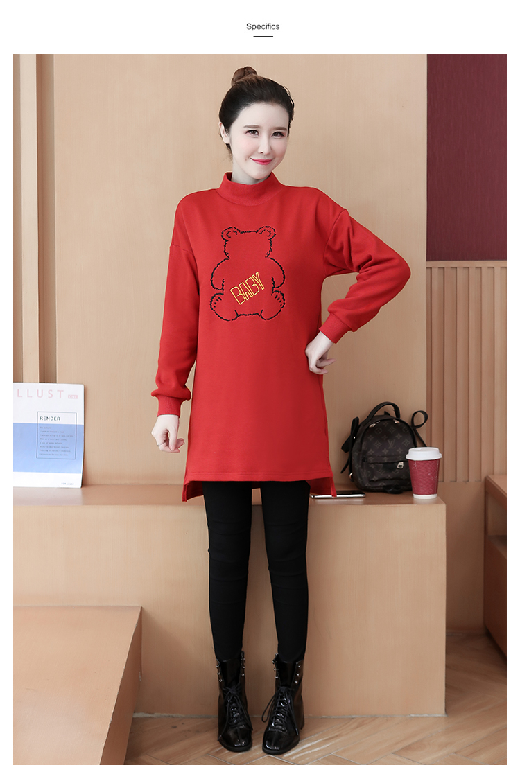 MY15205# 加绒卫衣女加厚宽松刺绣中长款半高领打底衫韩版外套百搭女裝貨源服裝批發
