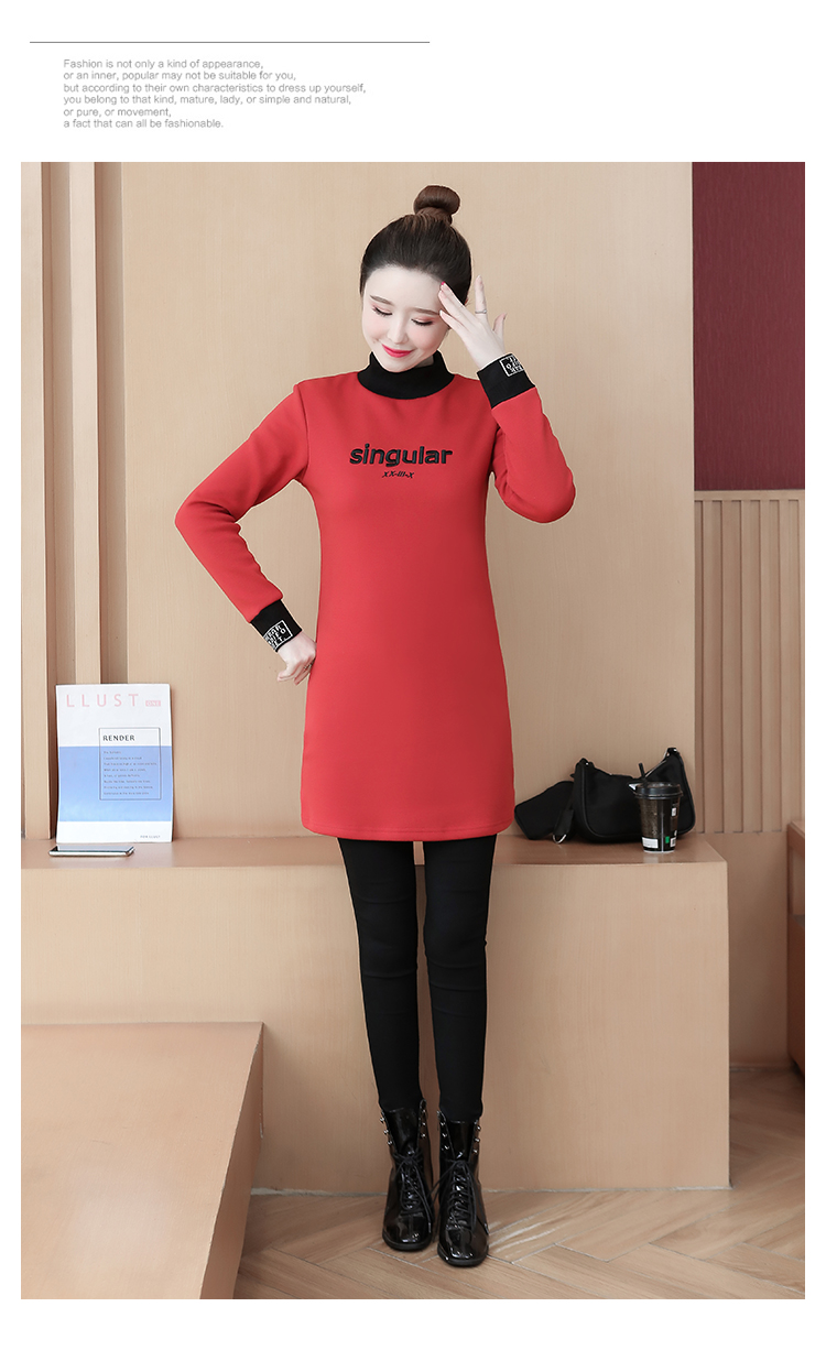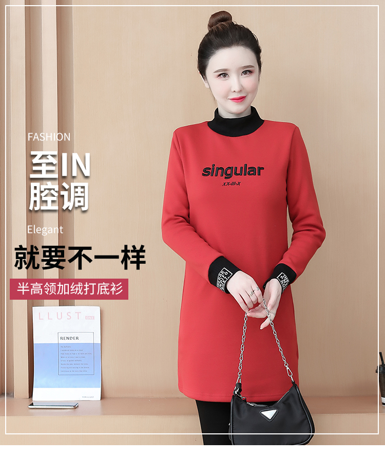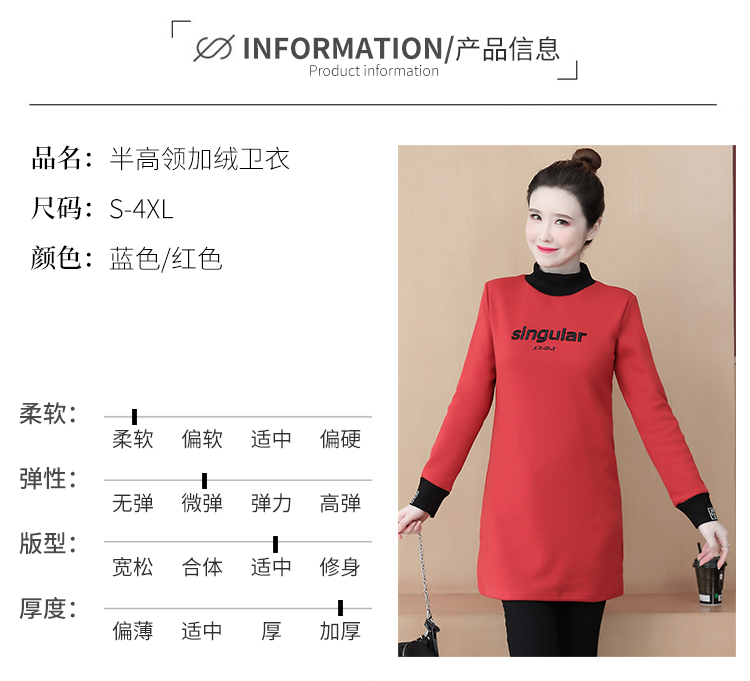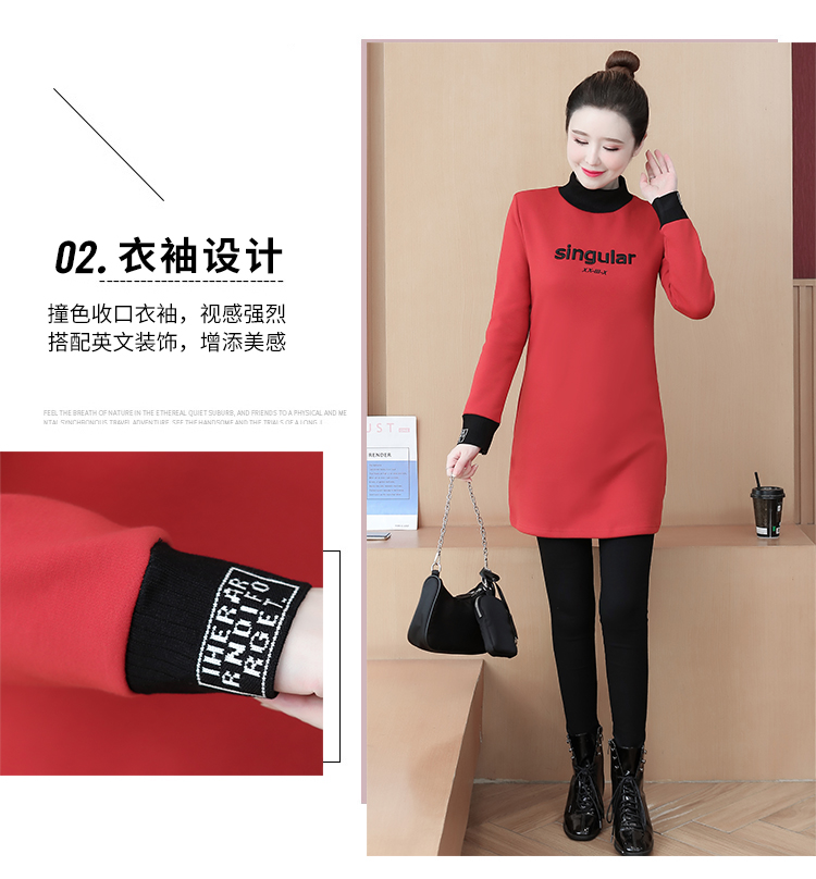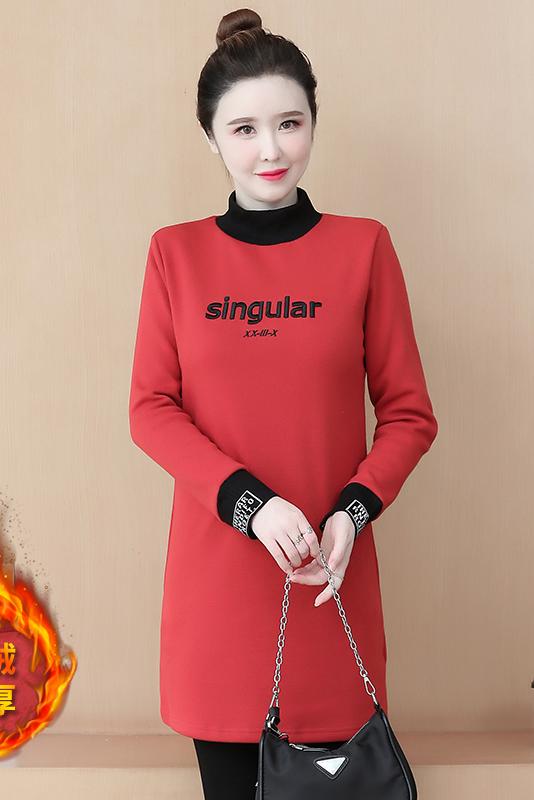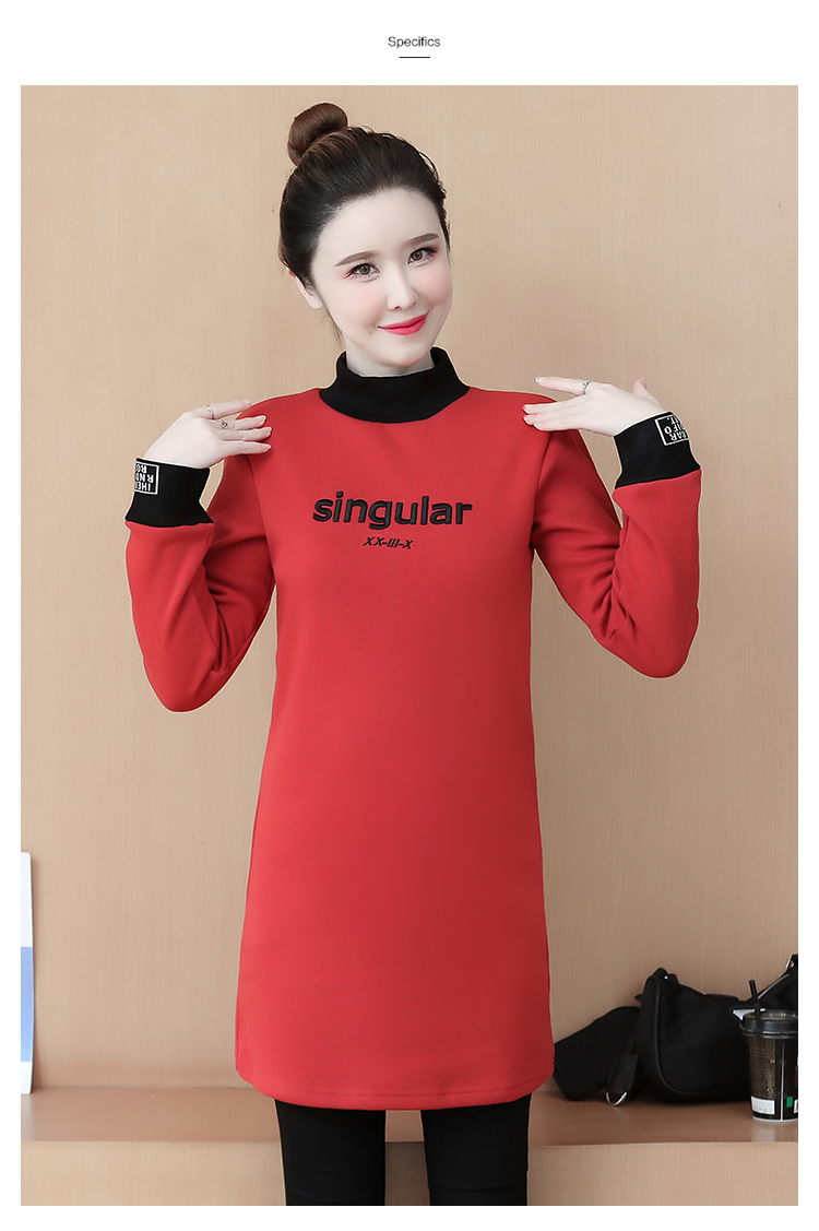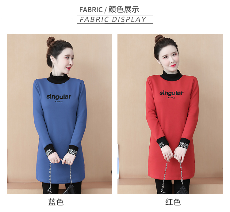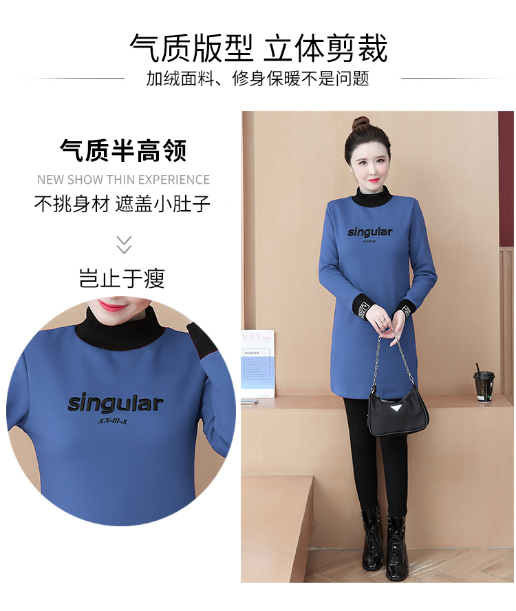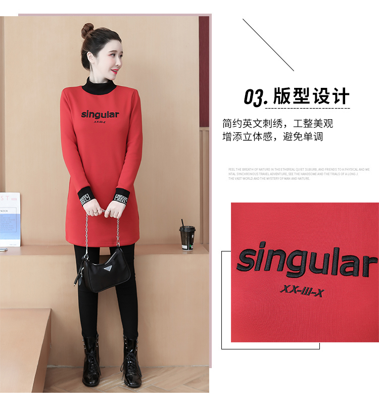 MY15208# 加绒卫衣女加厚刺绣中长款半高领打底衫上衣韩版外套女裝貨源服裝批發