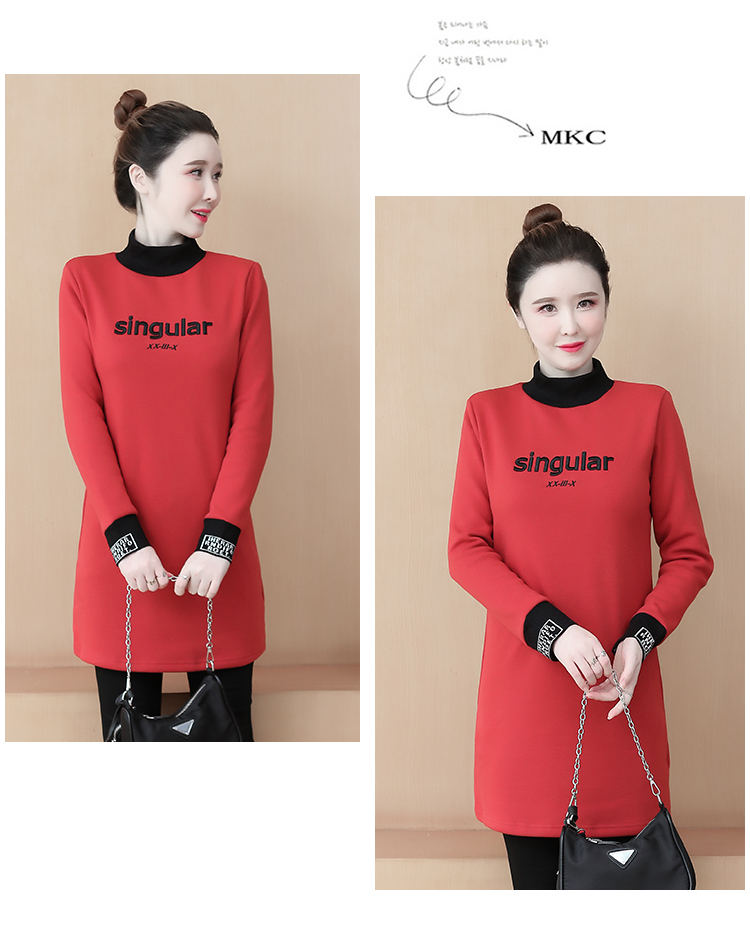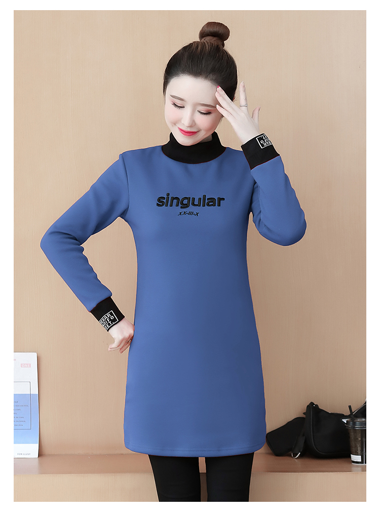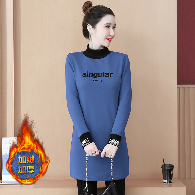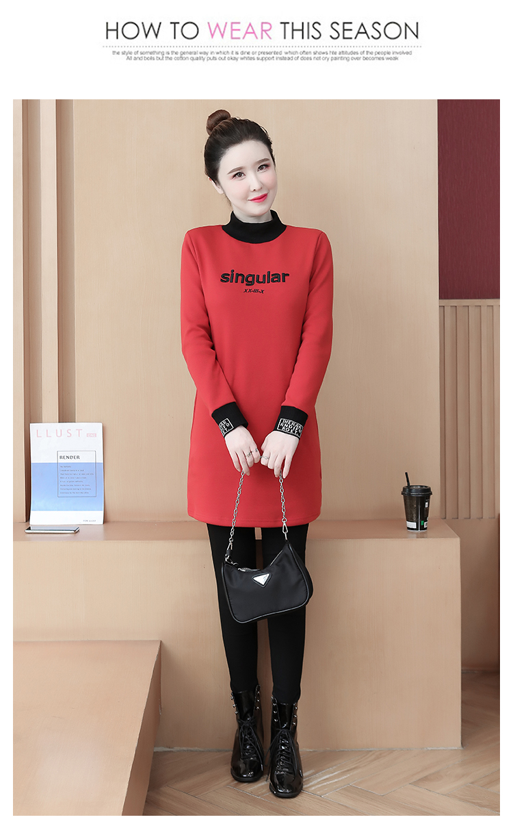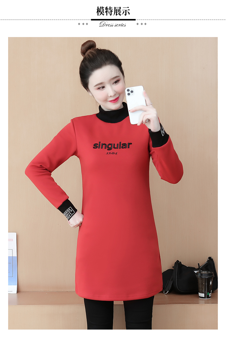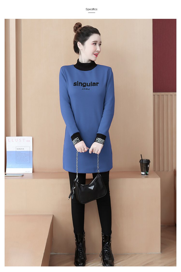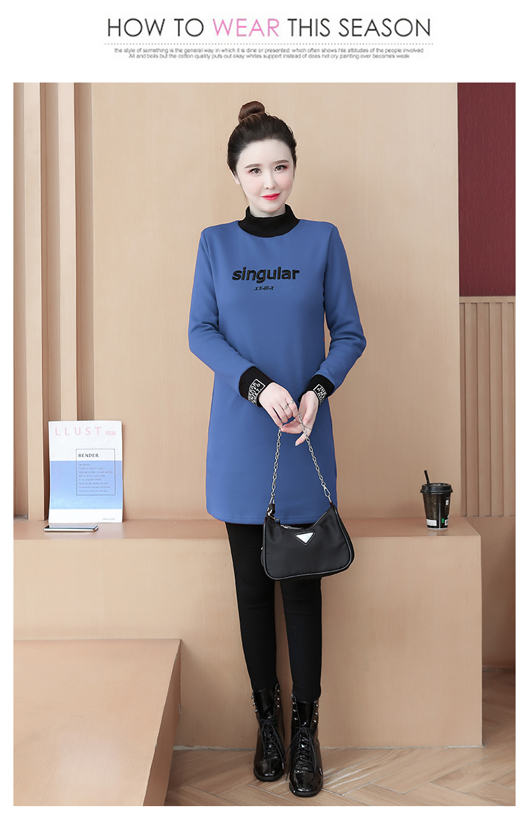 MY15208# 加绒卫衣女加厚刺绣中长款半高领打底衫上衣韩版外套女裝貨源服裝批發