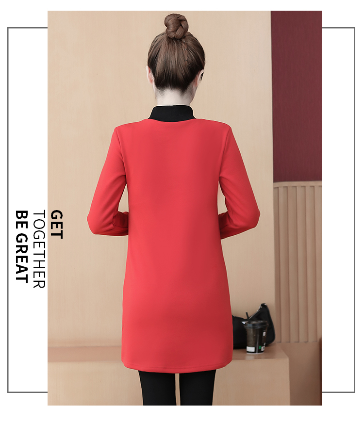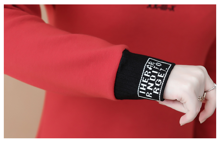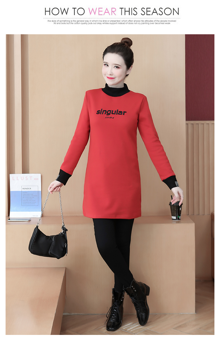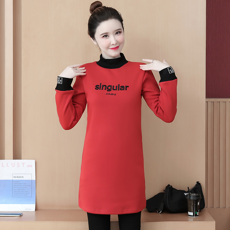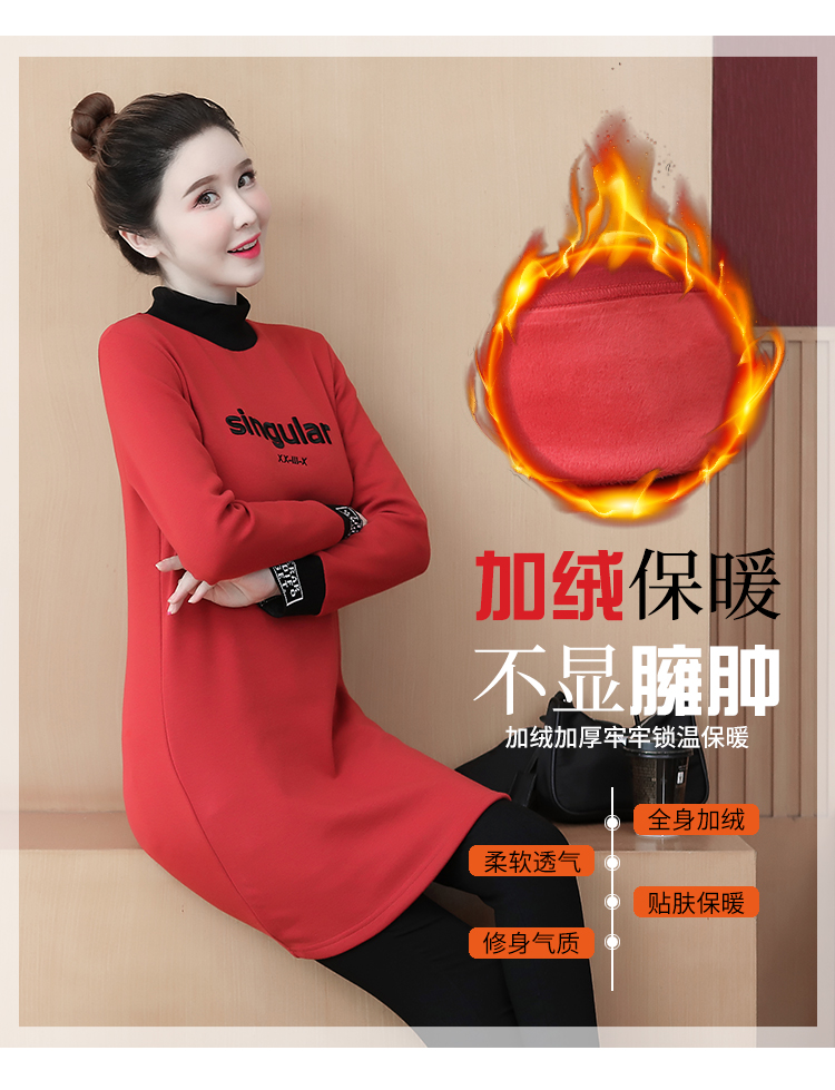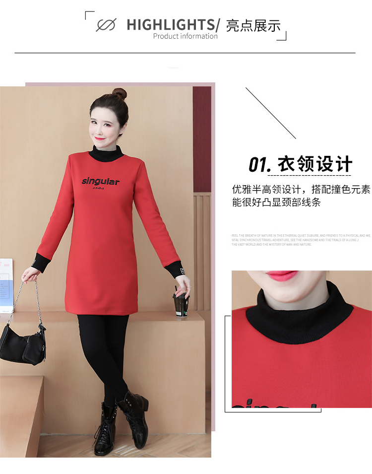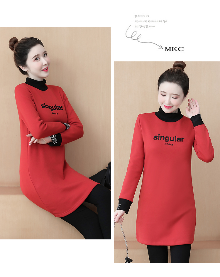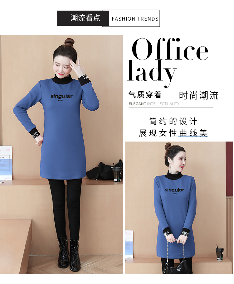 MY15208# 加绒卫衣女加厚刺绣中长款半高领打底衫上衣韩版外套女裝貨源服裝批發