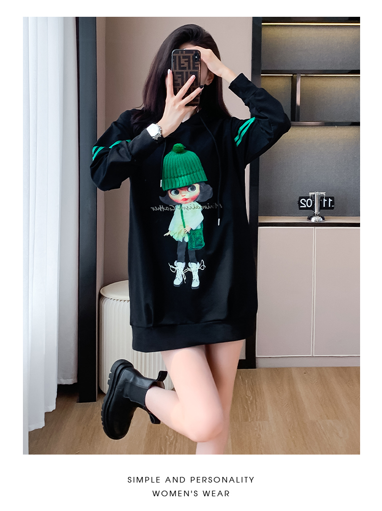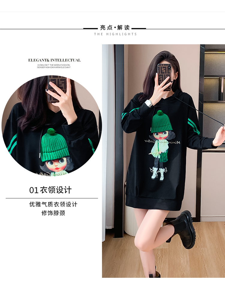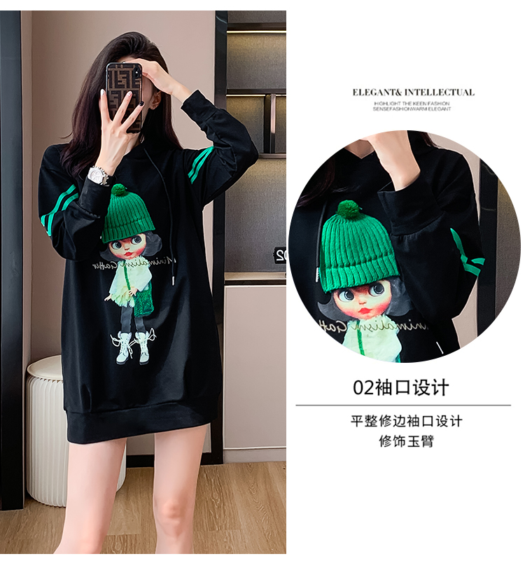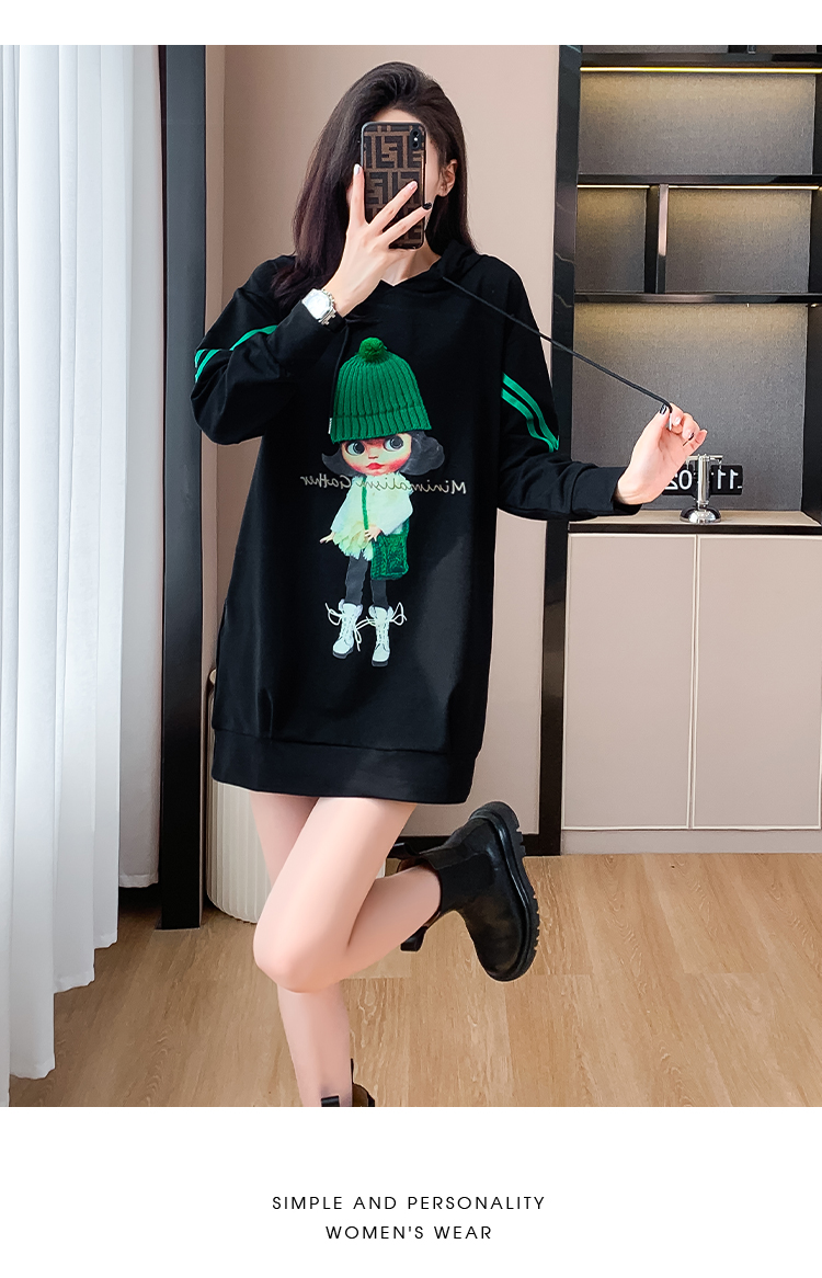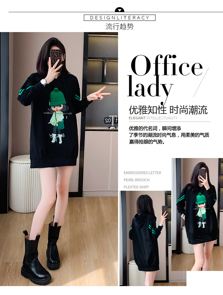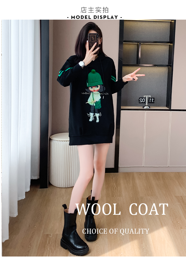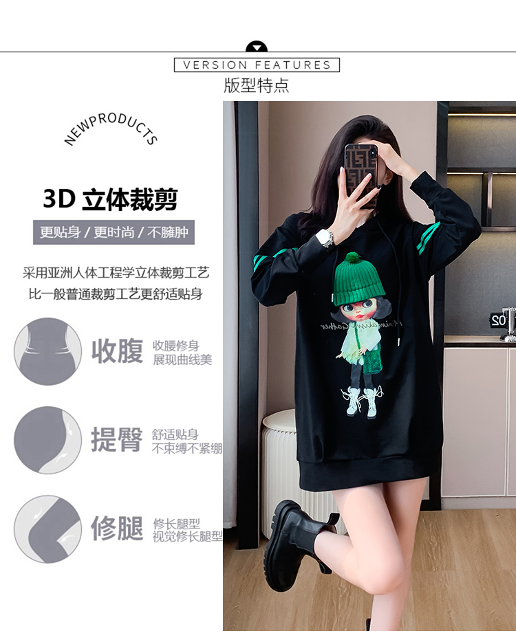 MY15209# 设计感洋气减龄显瘦加绒时尚休闲连帽中长款卫衣大码百搭韩版外套女裝貨源服裝批發