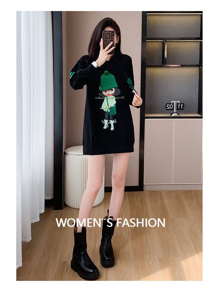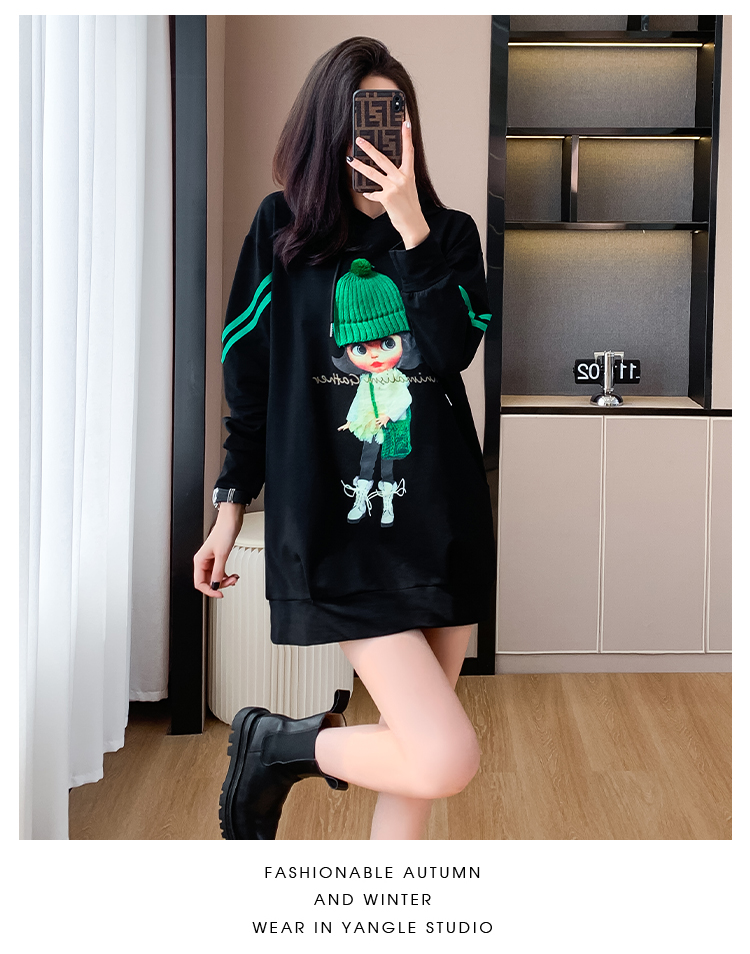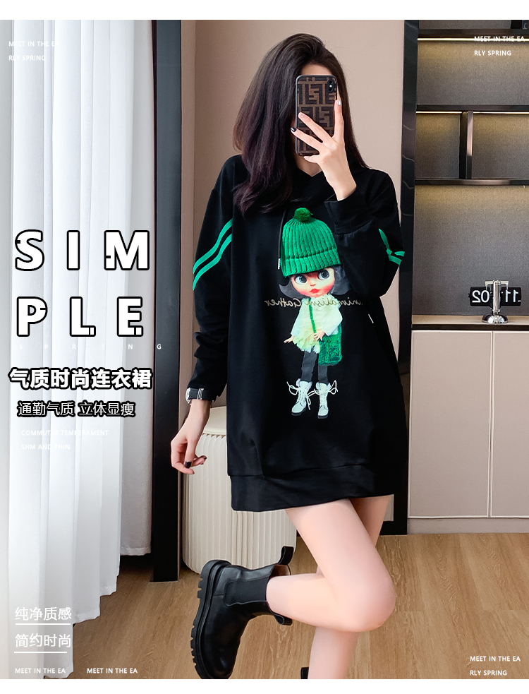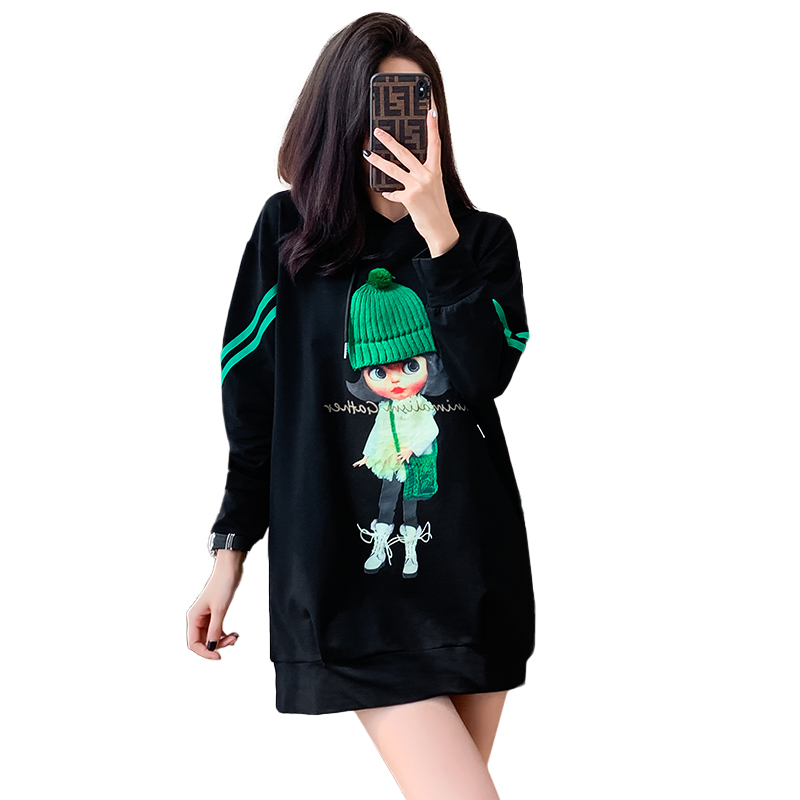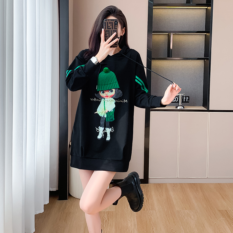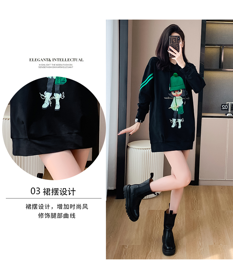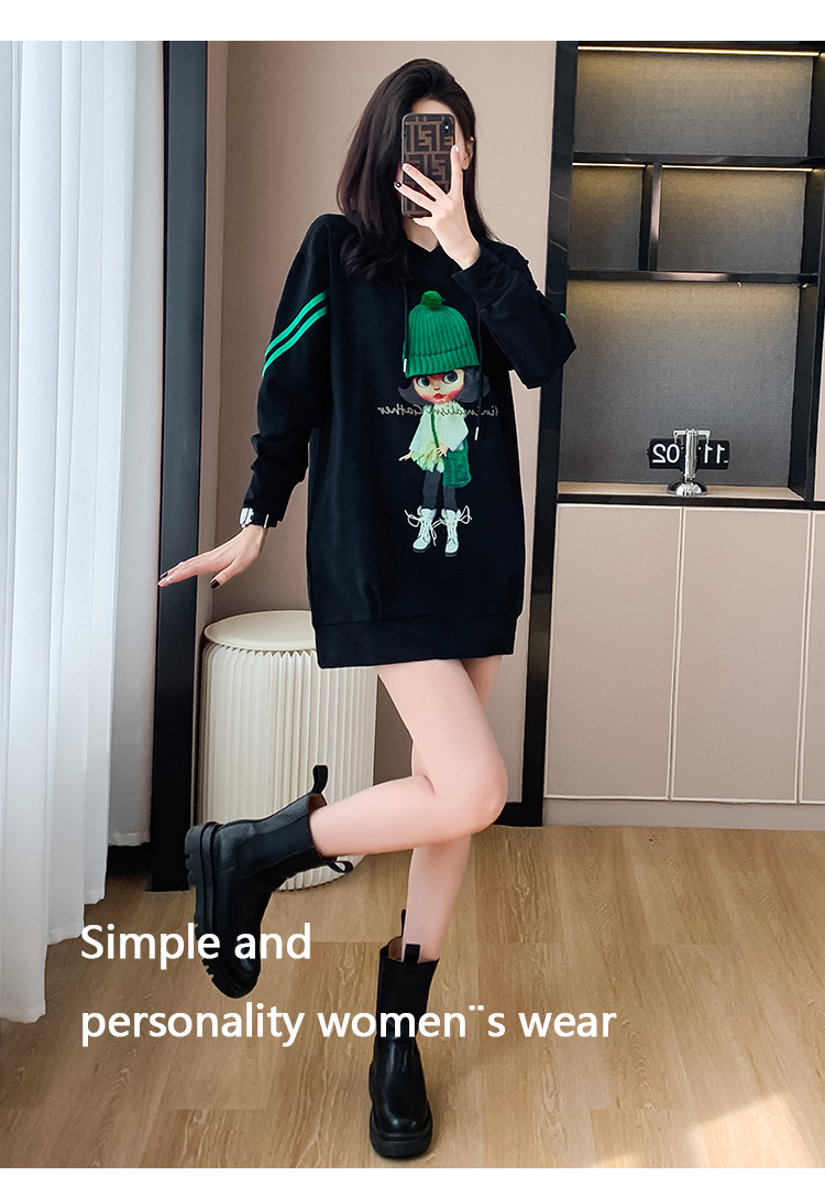 MY15209# 设计感洋气减龄显瘦加绒时尚休闲连帽中长款卫衣大码百搭韩版外套女裝貨源服裝批發