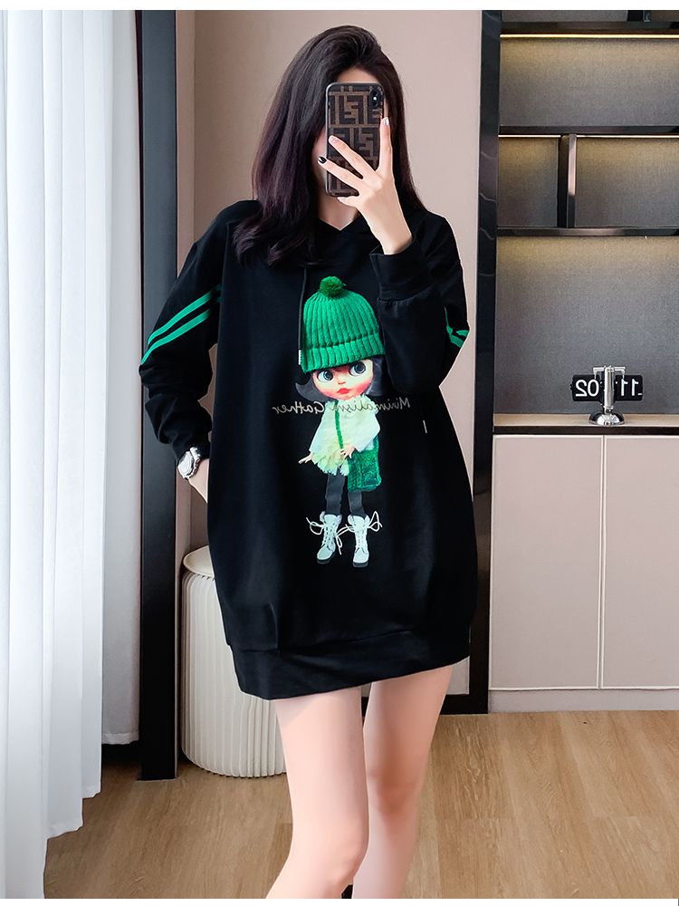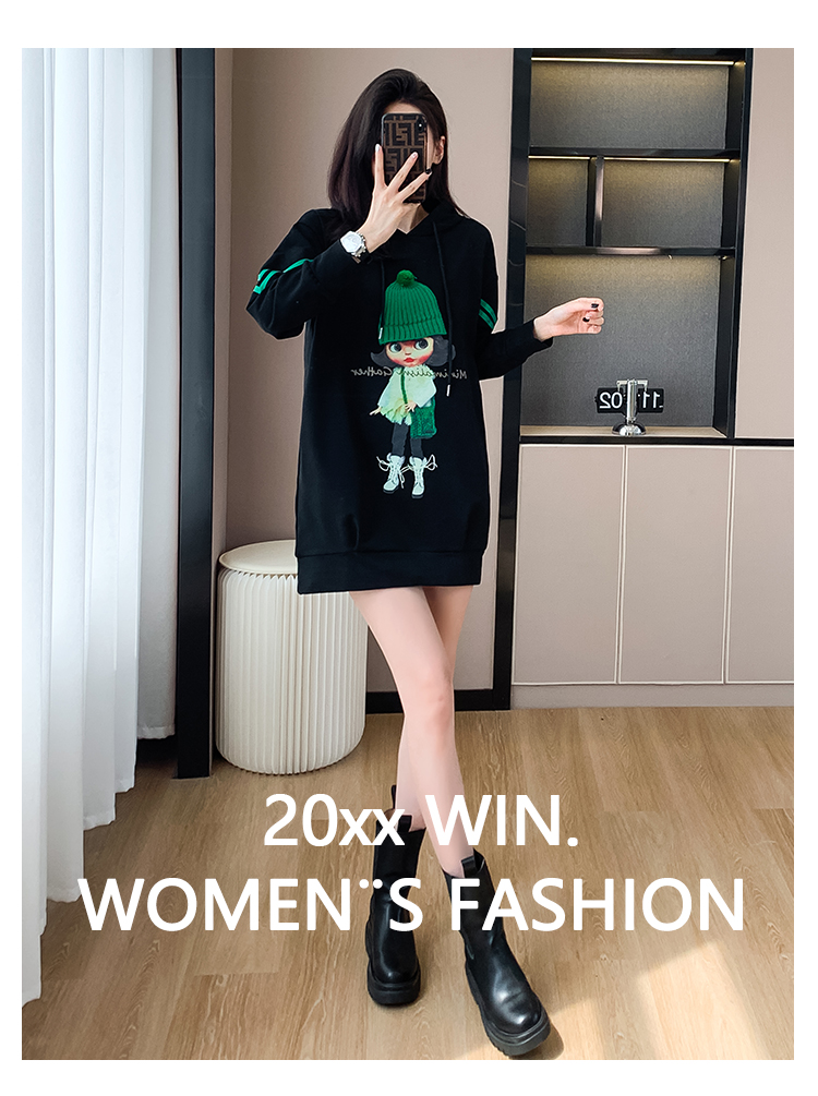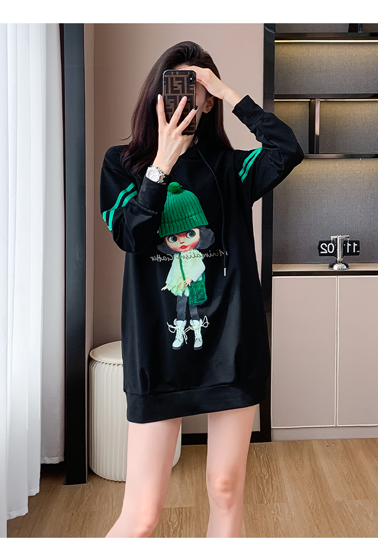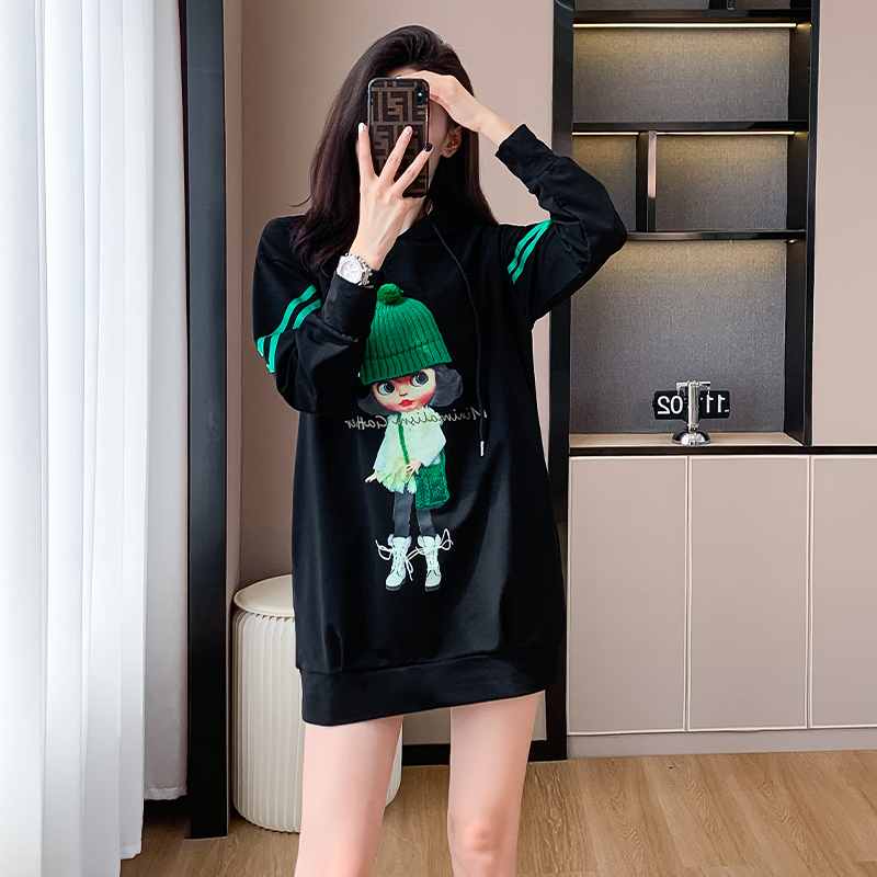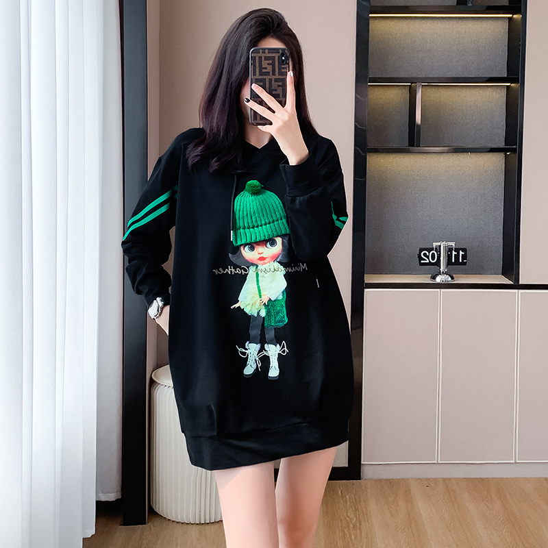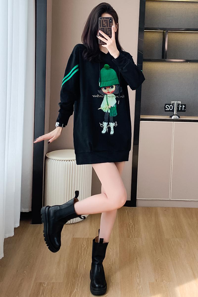 MY15209# 设计感洋气减龄显瘦加绒时尚休闲连帽中长款卫衣大码百搭韩版外套女裝貨源服裝批發