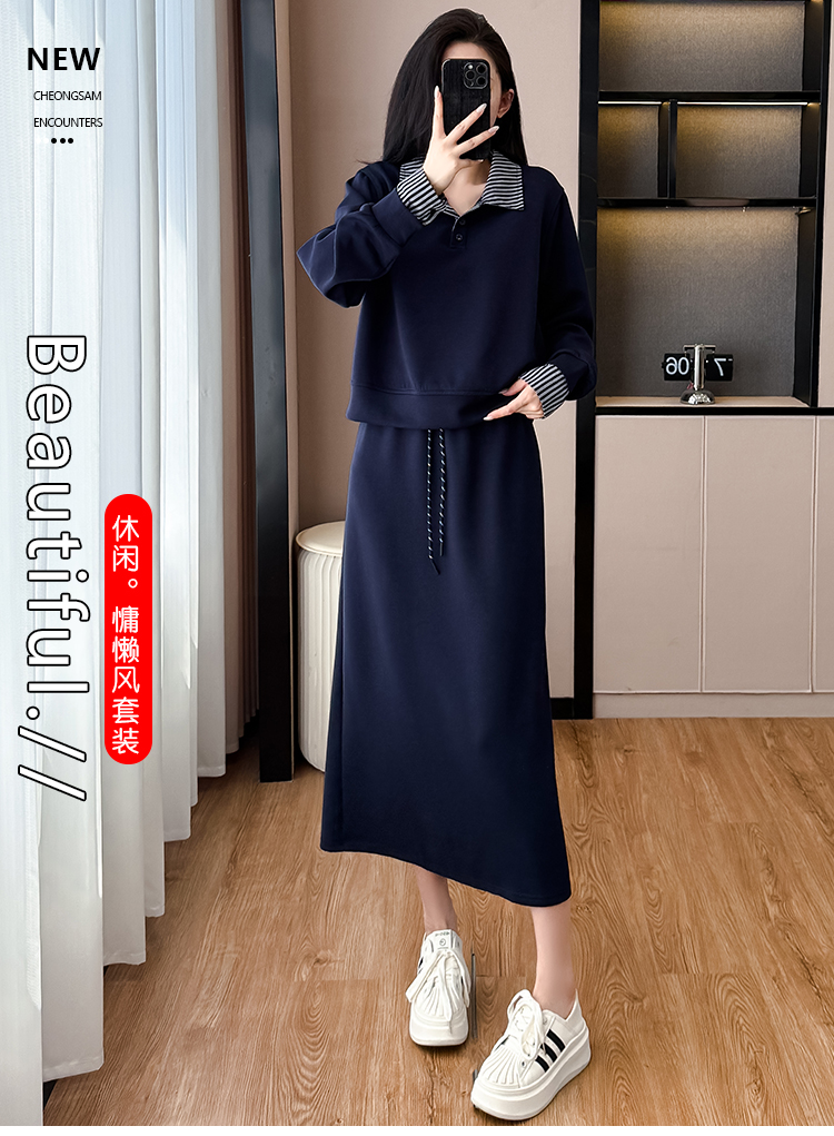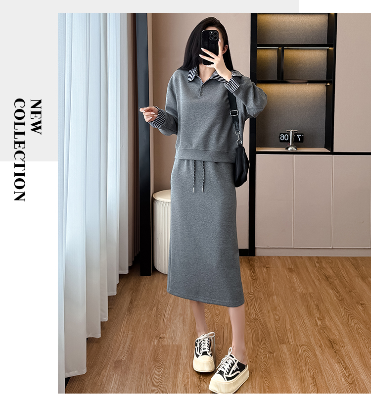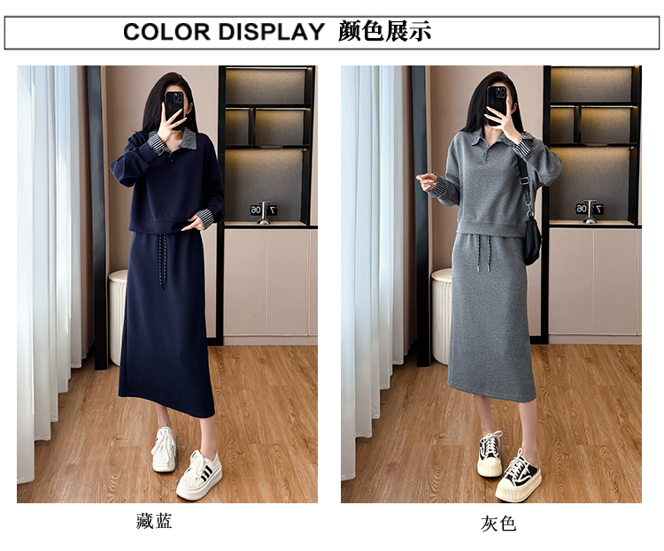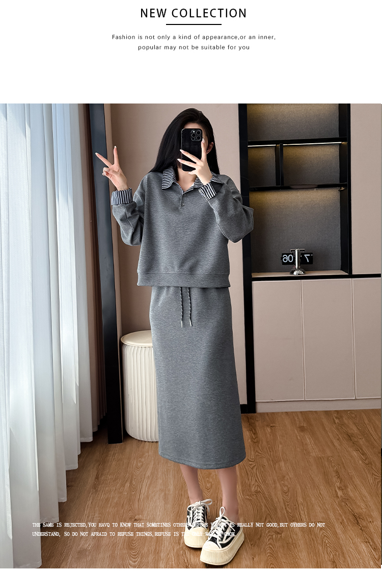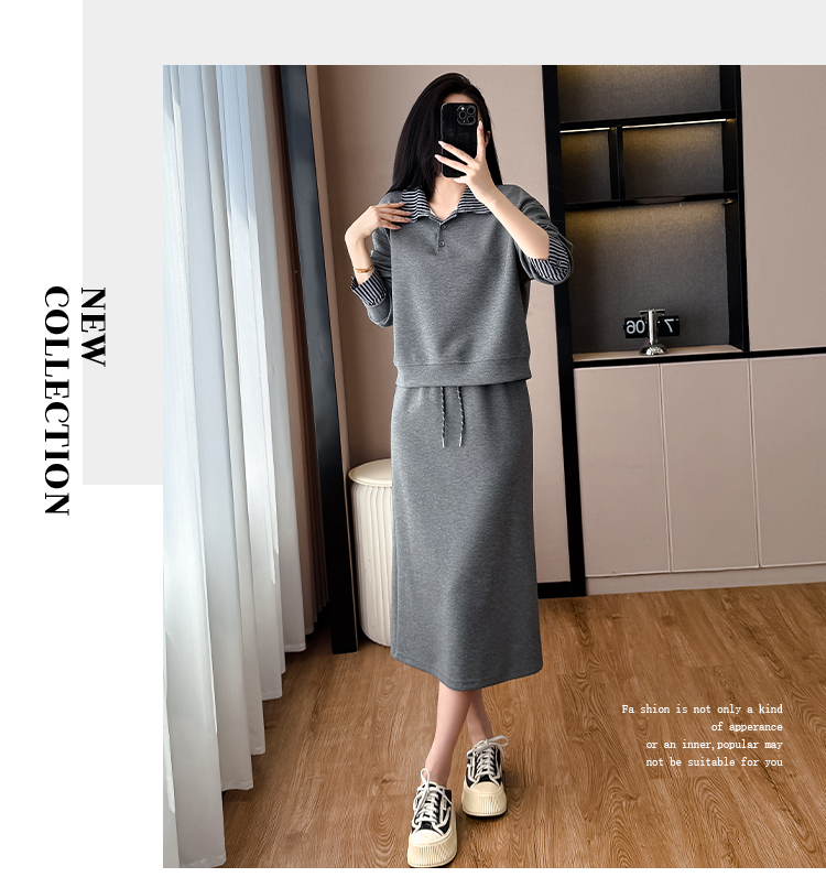 MY15211# 韩系大码减龄休闲显瘦运动套装裙宽松卫衣百搭两件套裙女裝貨源服裝批發