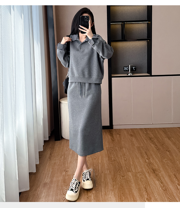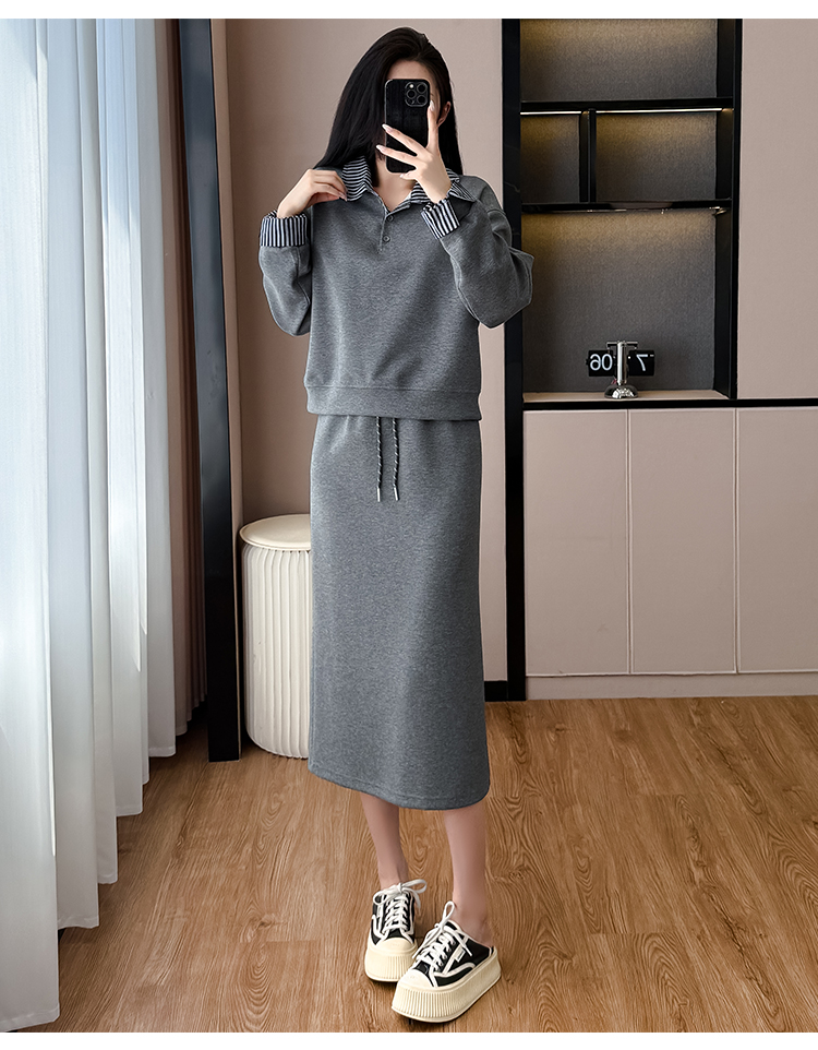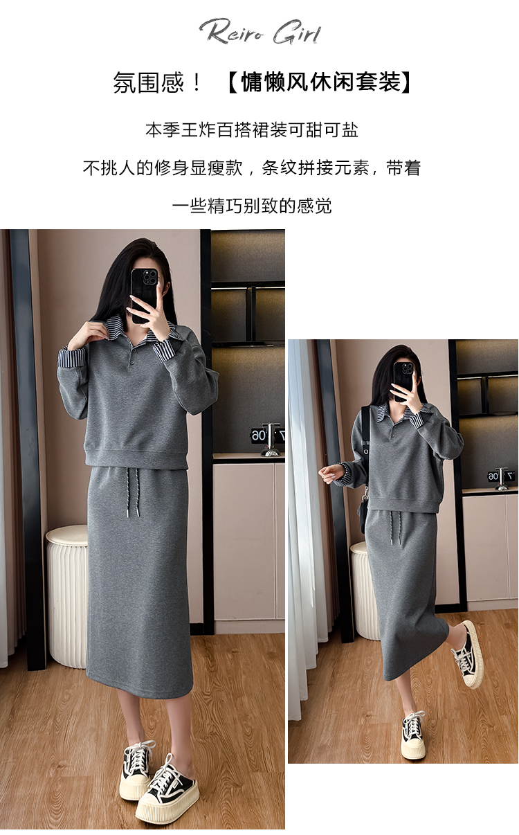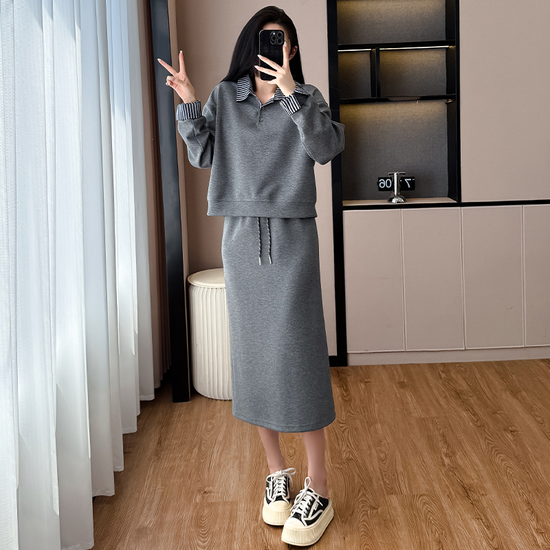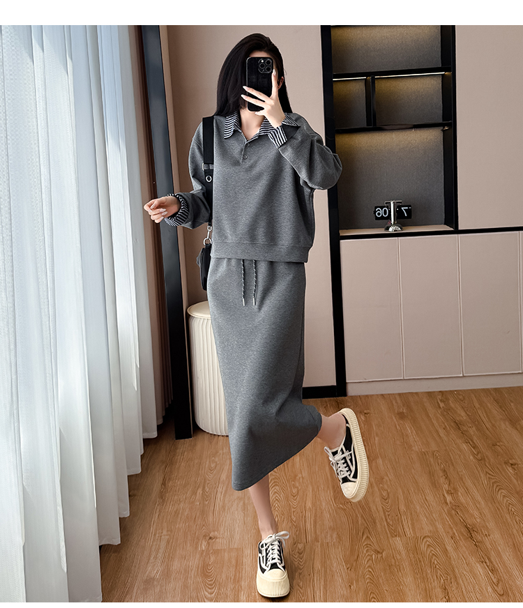 MY15211# 韩系大码减龄休闲显瘦运动套装裙宽松卫衣百搭两件套裙女裝貨源服裝批發