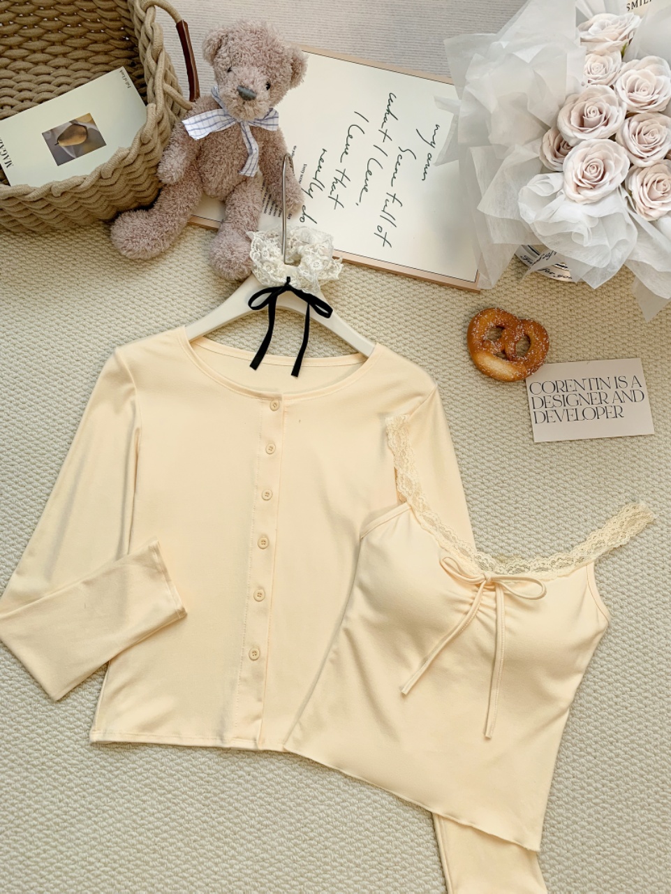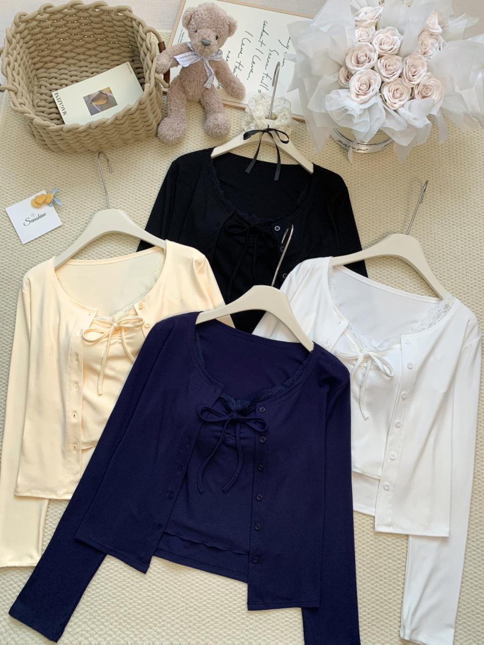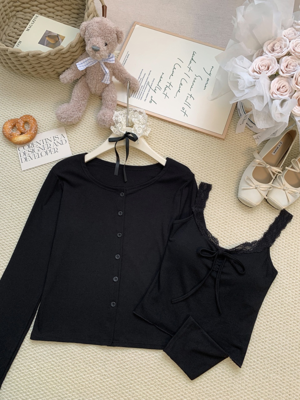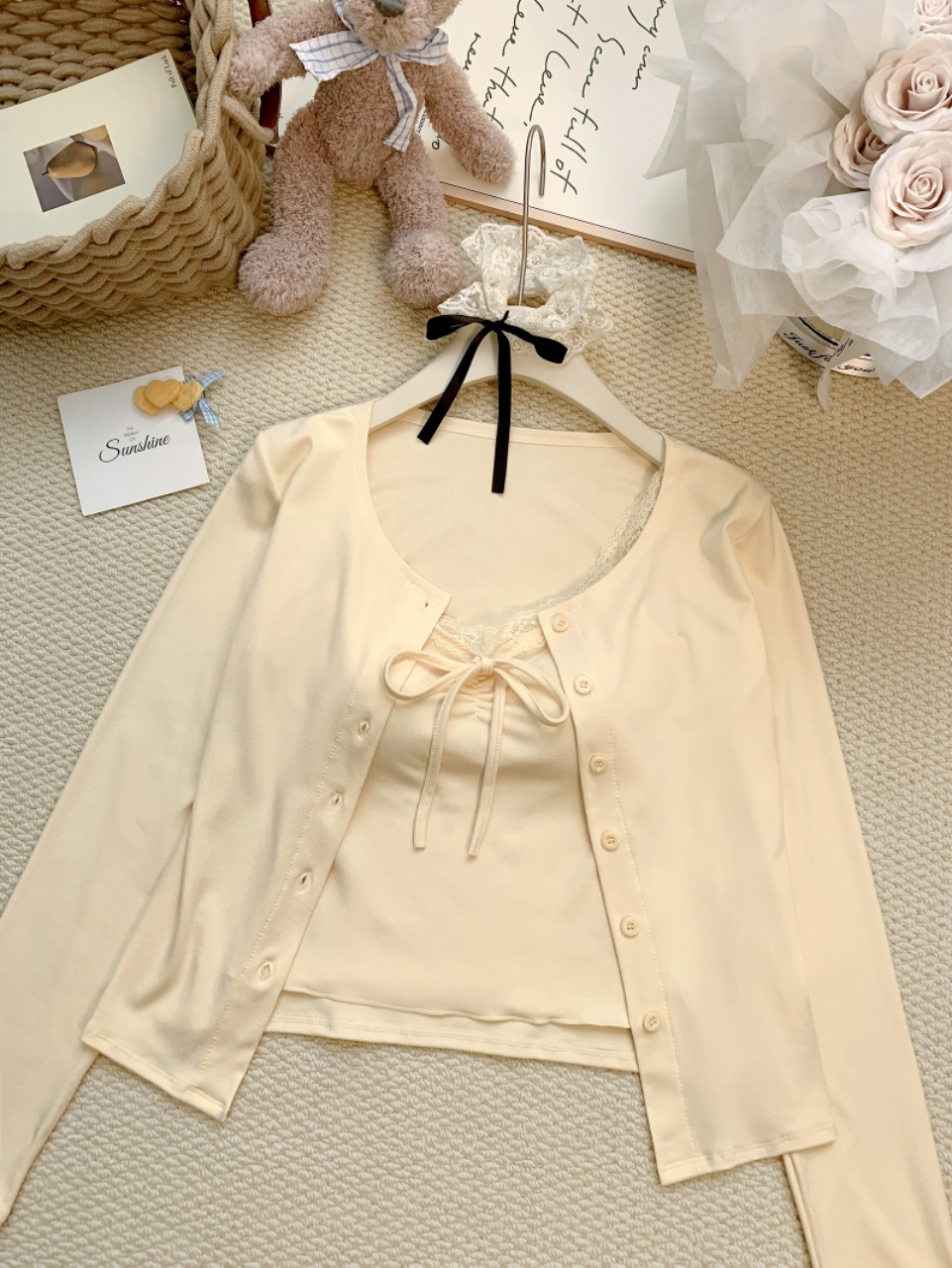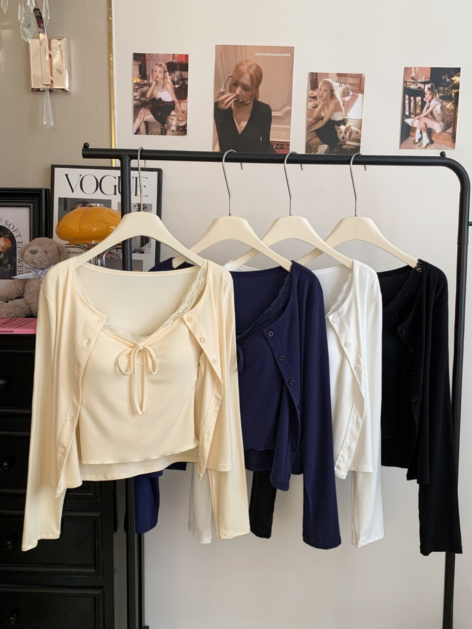 MY15225# 纯欲风蕾丝边系带吊带背心带胸垫长袖修身外套两件套女裝貨源服裝批發