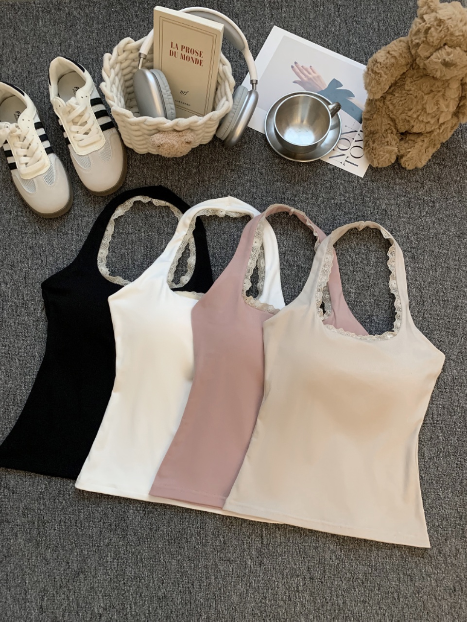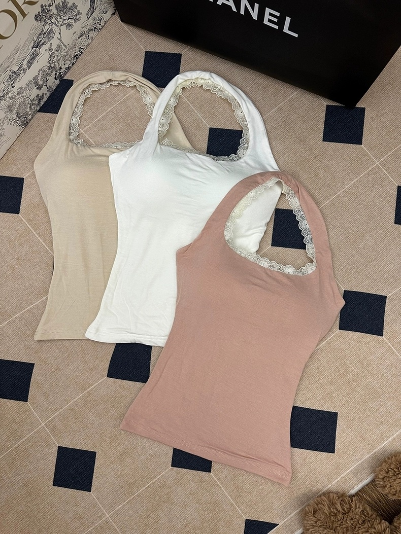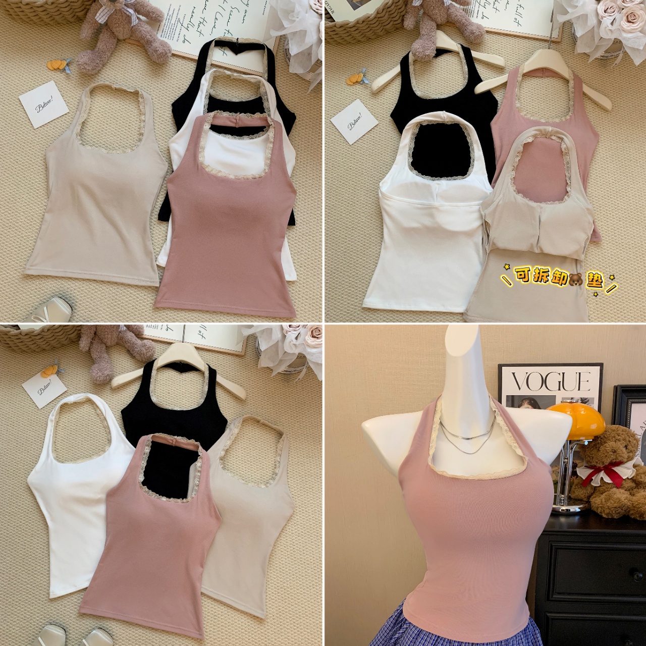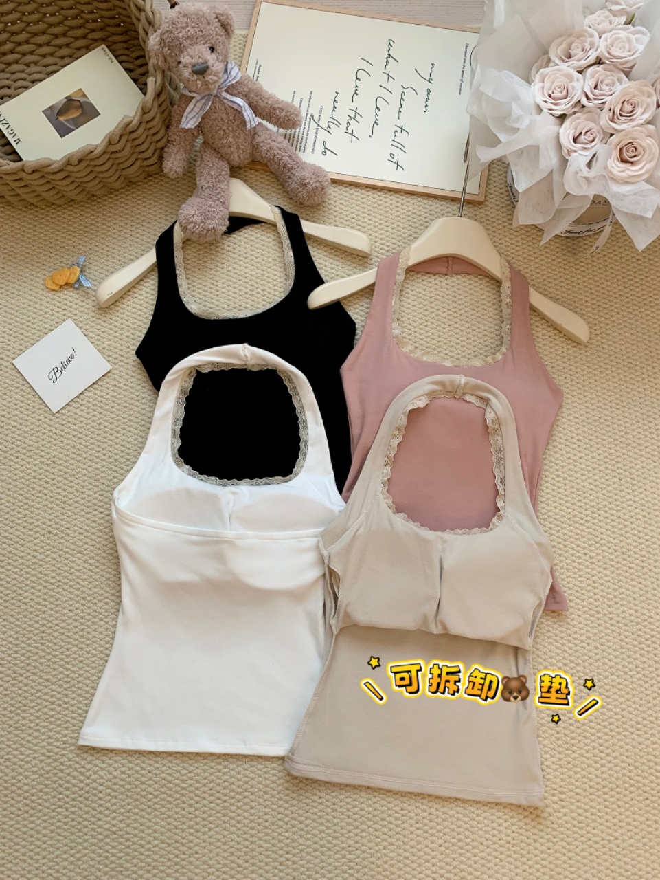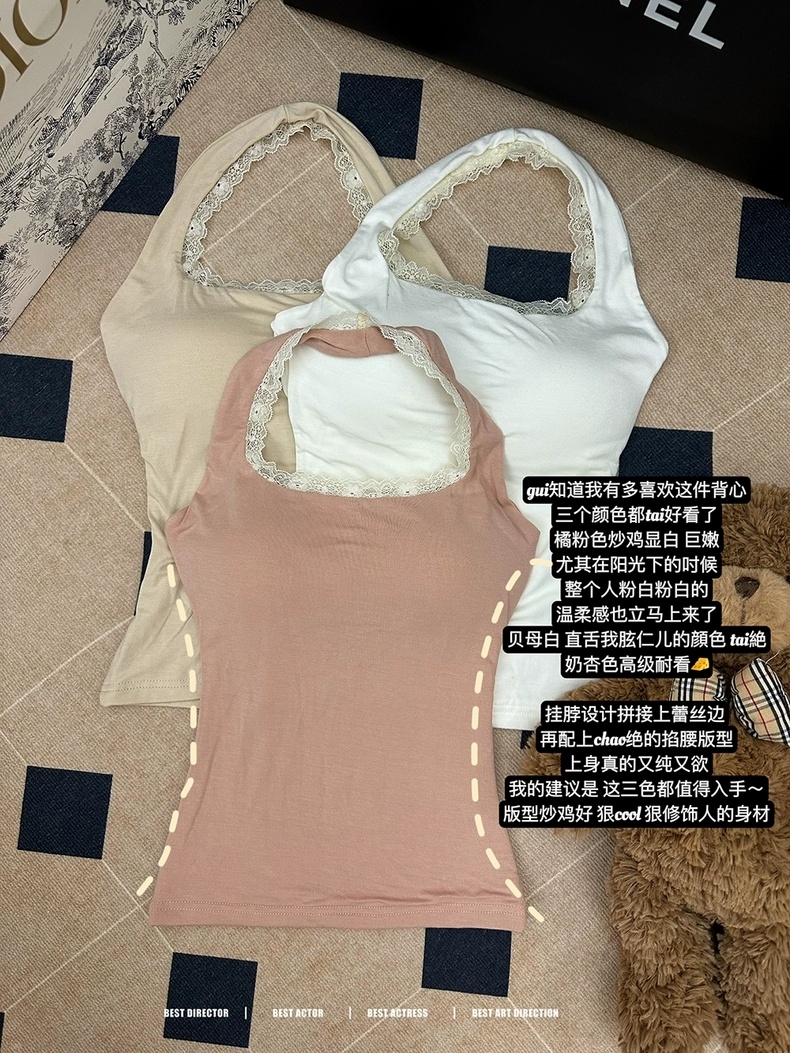 MY15226# 新款掐腰蕾丝花边挂脖吊带背心女纯欲美背上衣带胸垫女裝貨源服裝批發