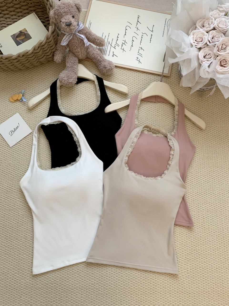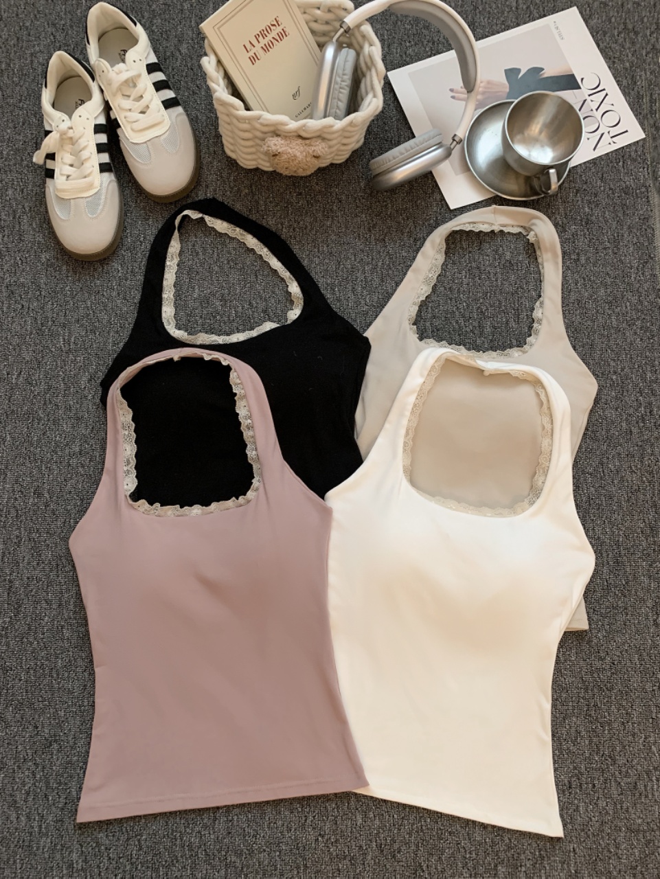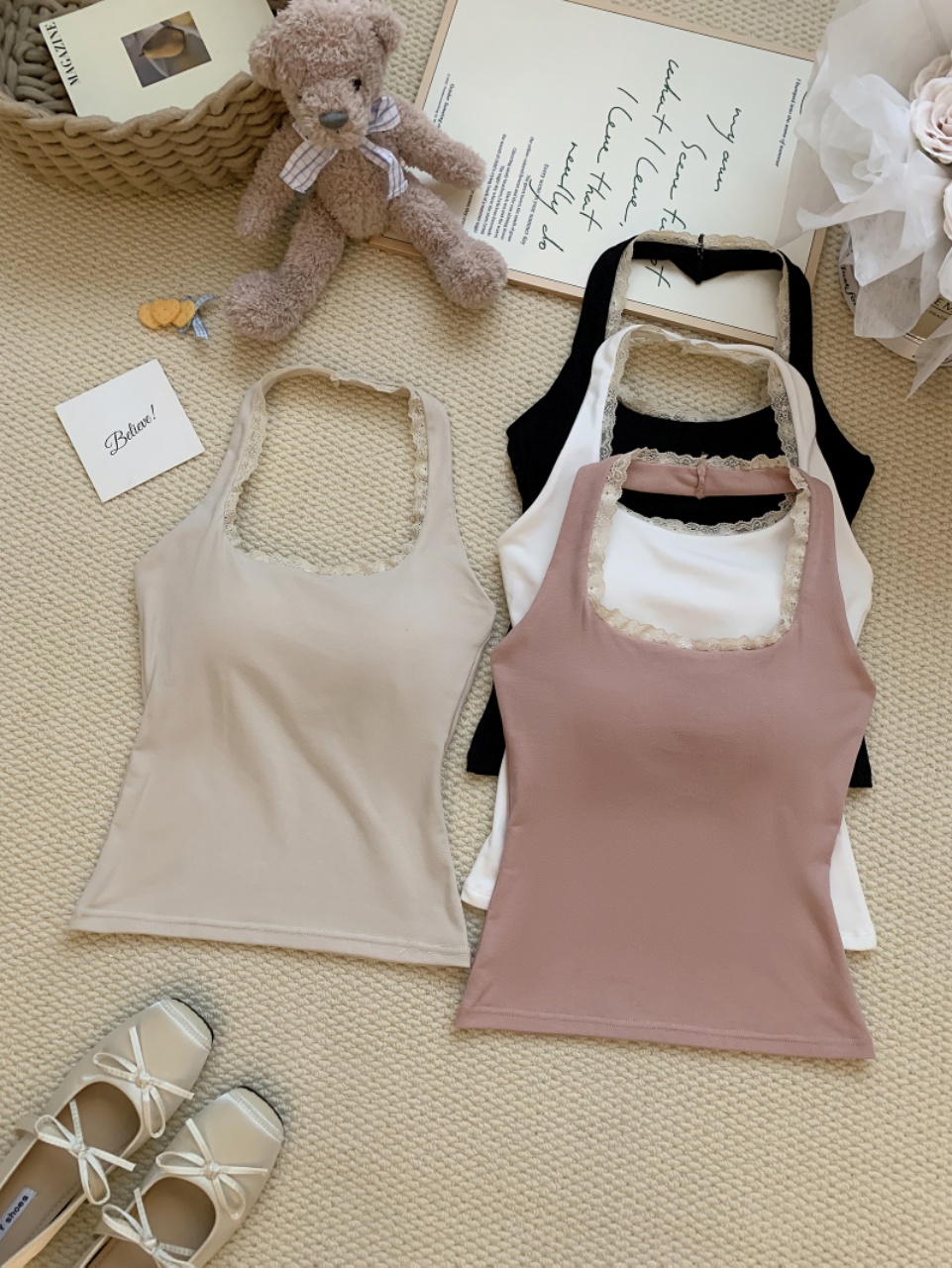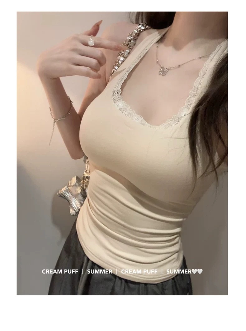 MY15226# 新款掐腰蕾丝花边挂脖吊带背心女纯欲美背上衣带胸垫女裝貨源服裝批發