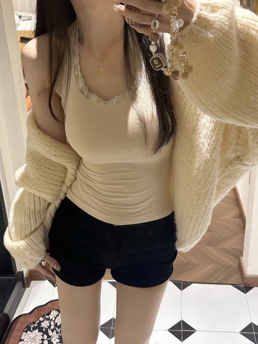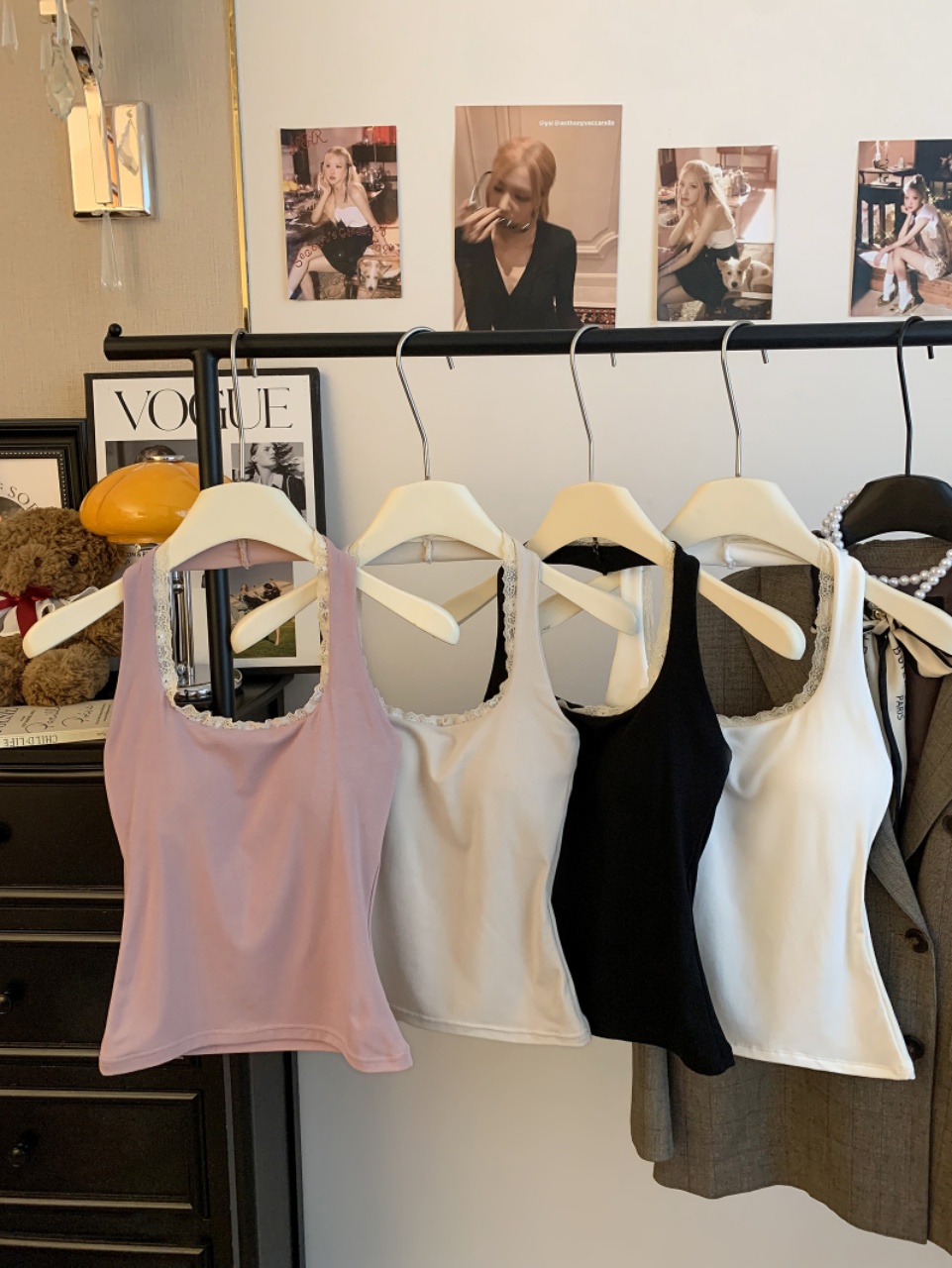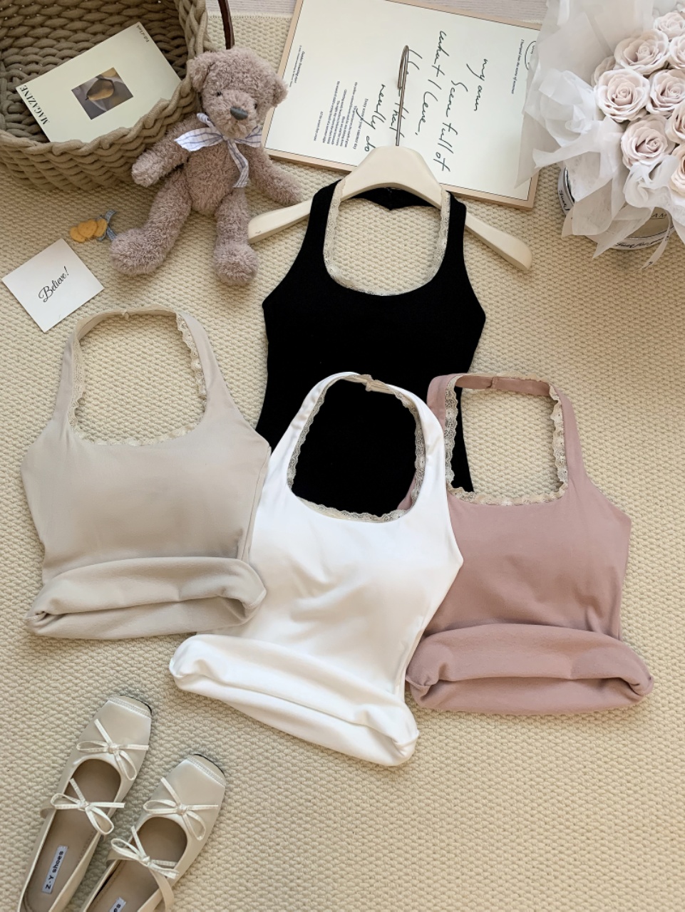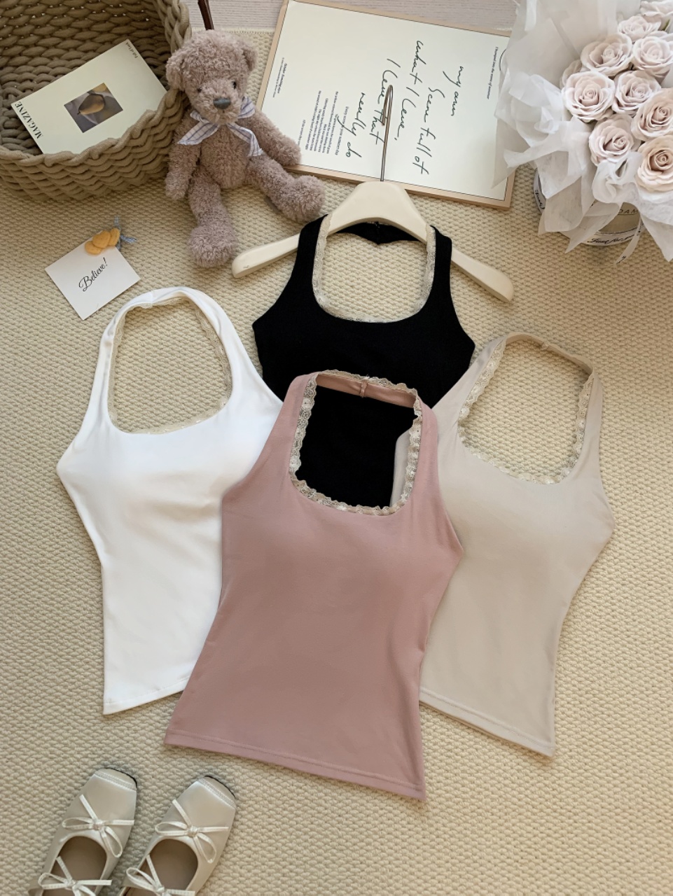 MY15226# 新款掐腰蕾丝花边挂脖吊带背心女纯欲美背上衣带胸垫女裝貨源服裝批發