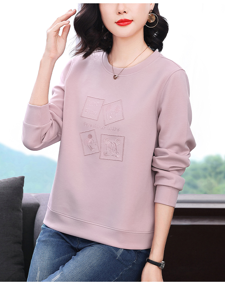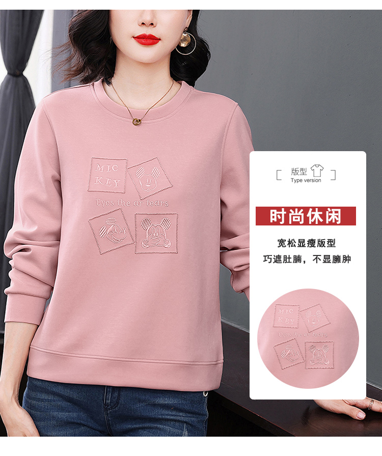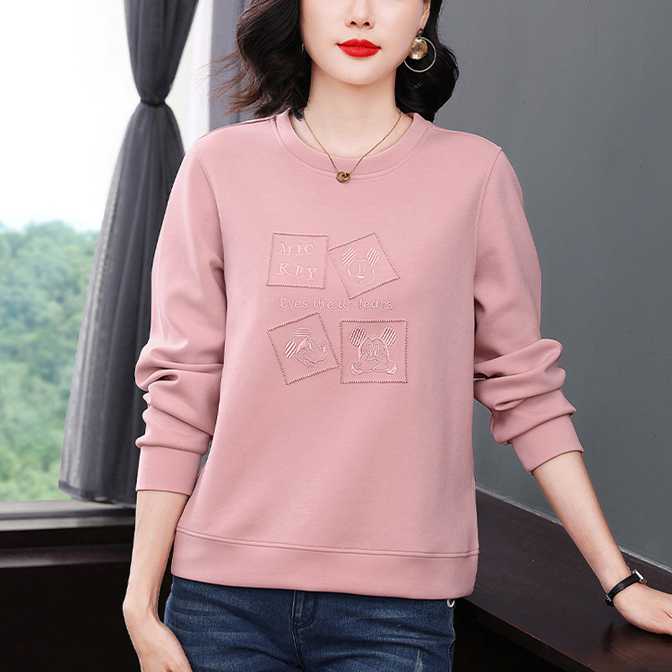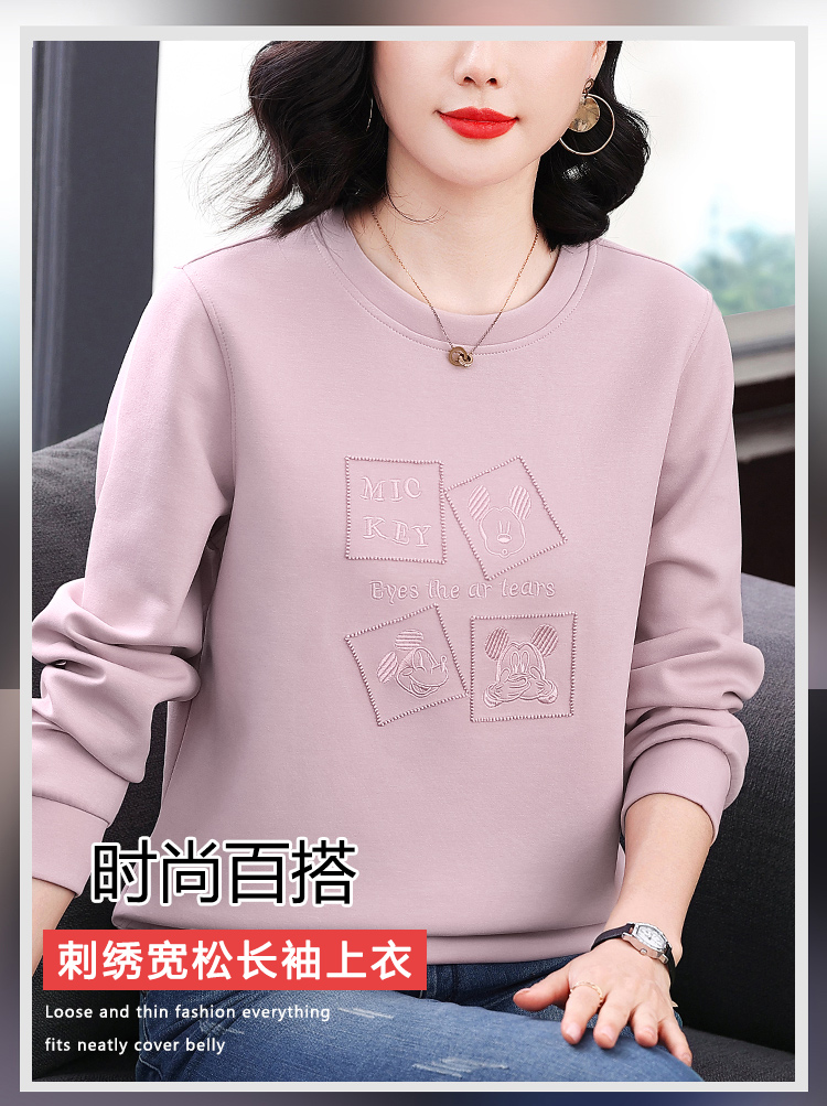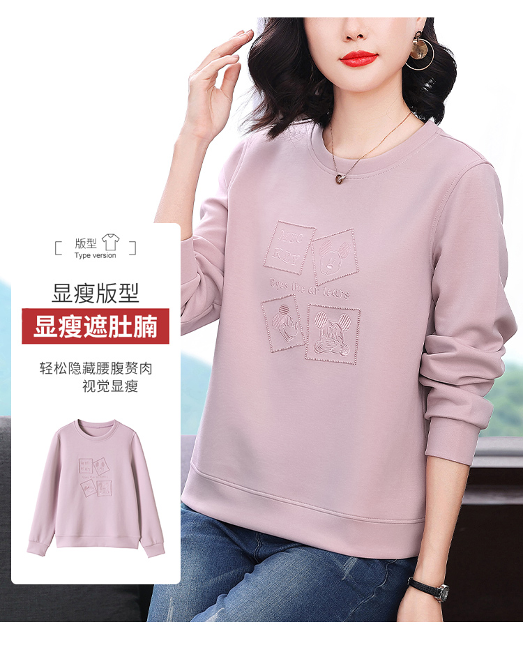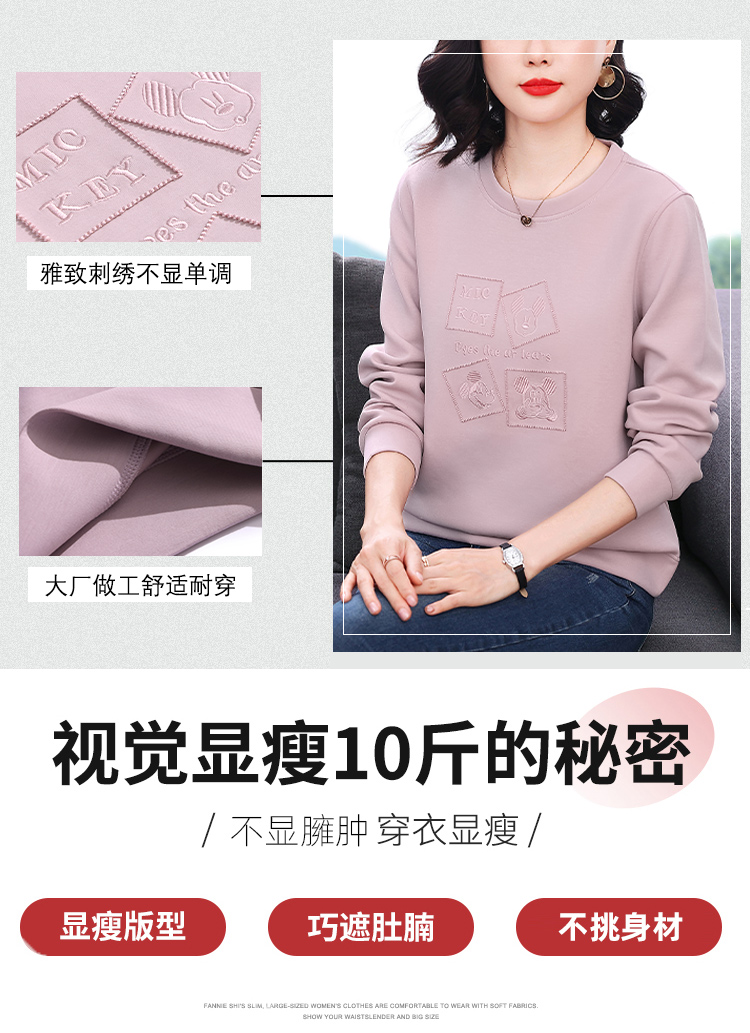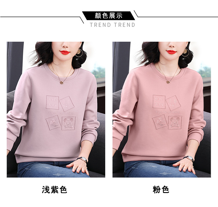 MY15227# 新款圆领纯色卫衣外穿女时尚宽松遮肚休闲卡通刺绣长袖百搭女裝貨源服裝批發