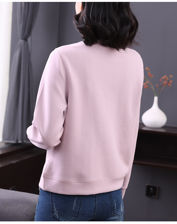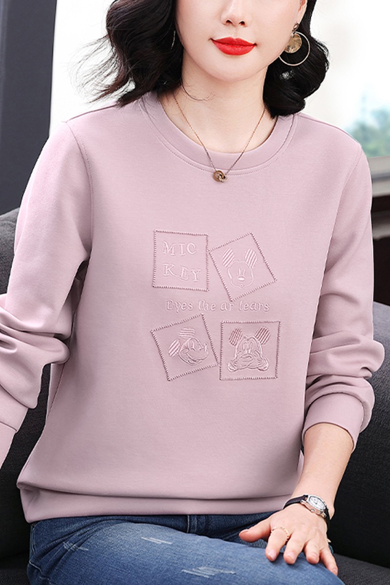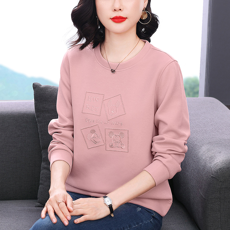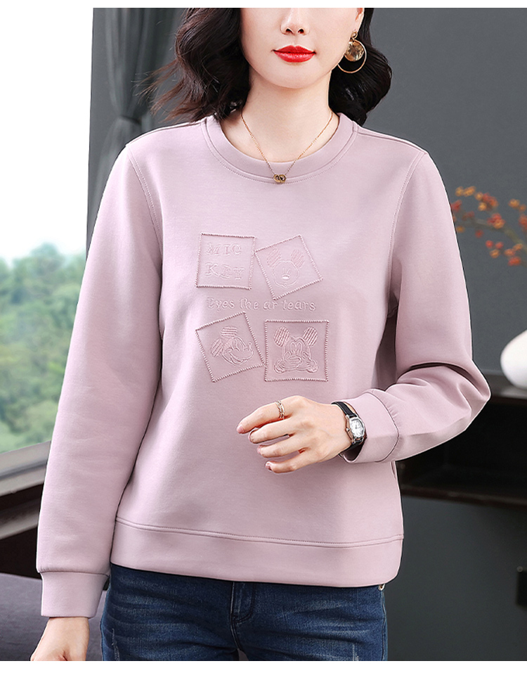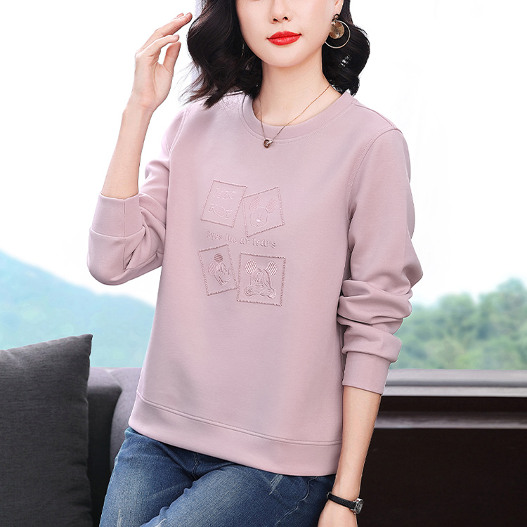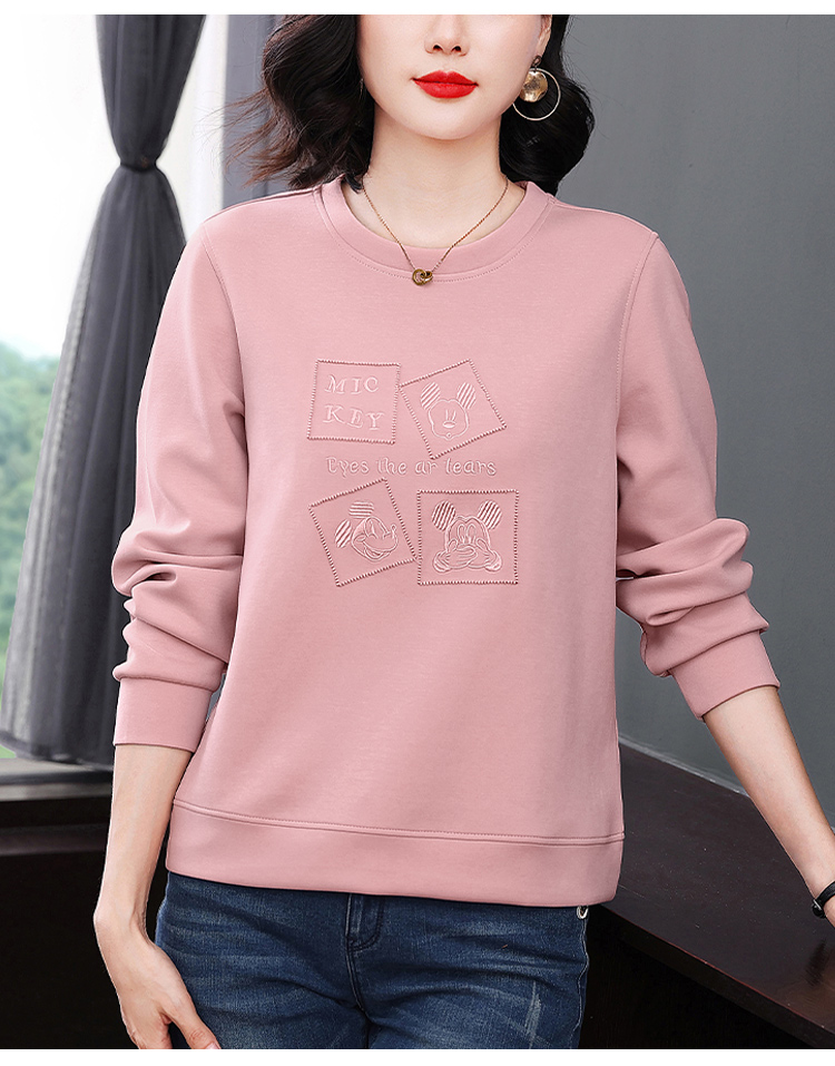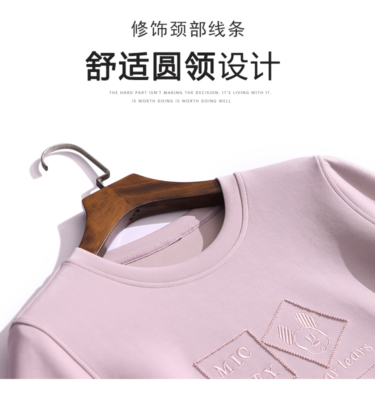 MY15227# 新款圆领纯色卫衣外穿女时尚宽松遮肚休闲卡通刺绣长袖百搭女裝貨源服裝批發