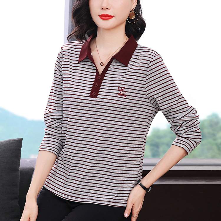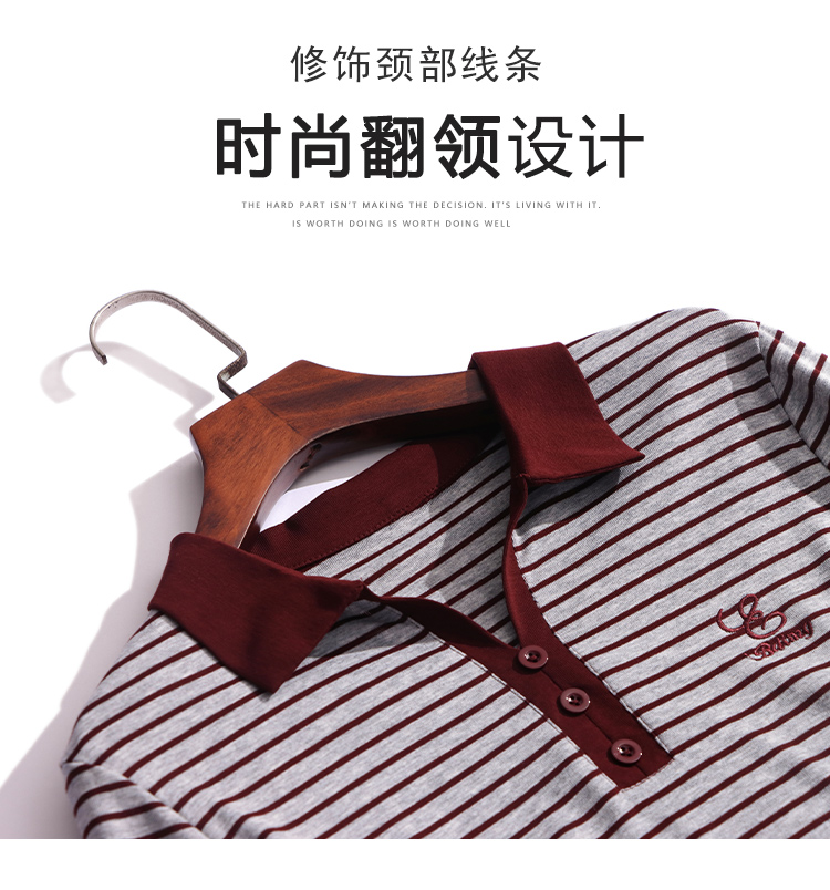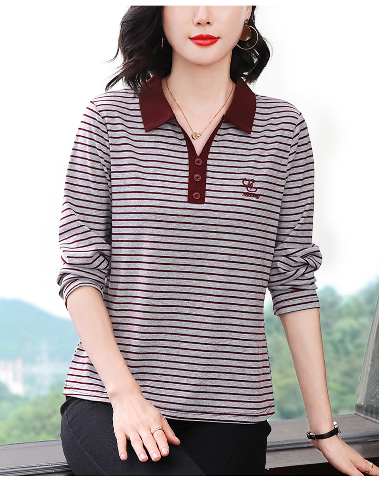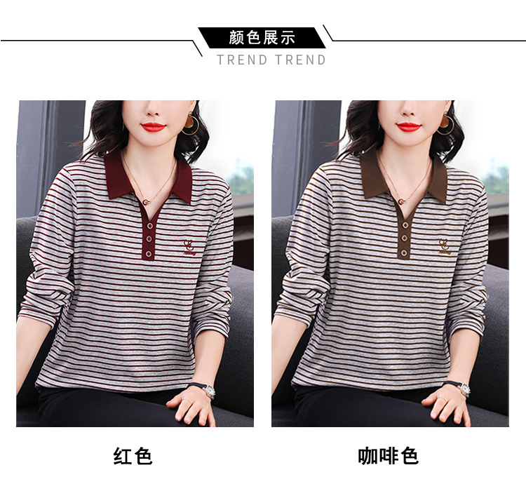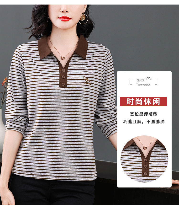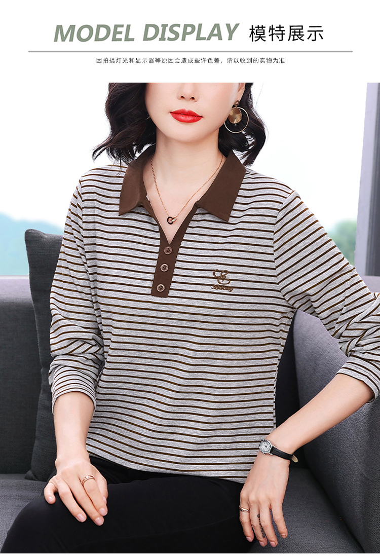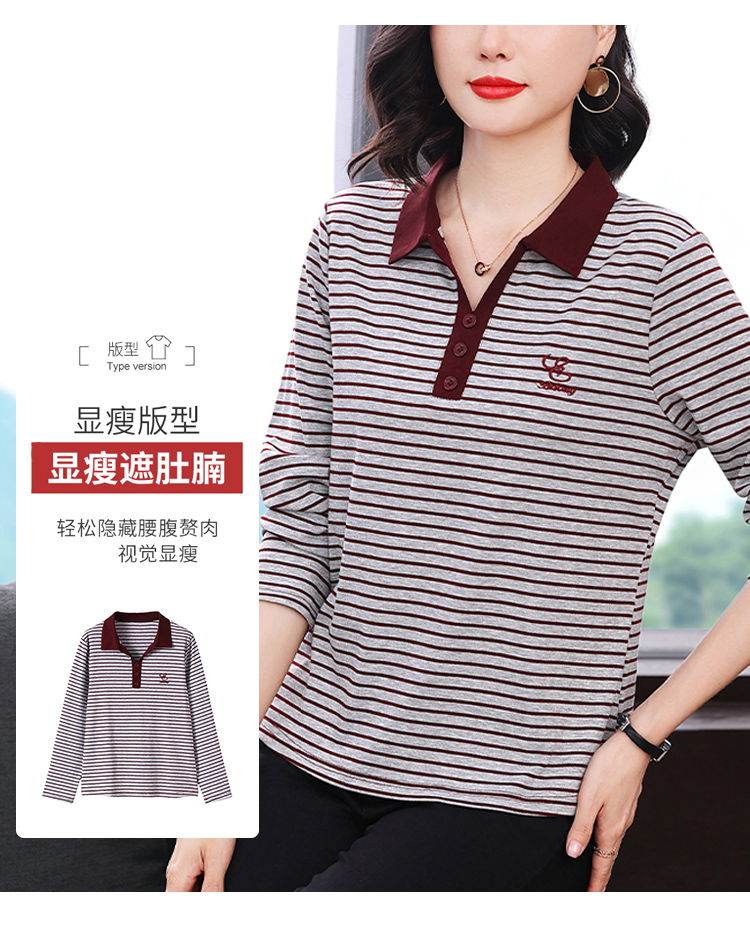 MY15229# 宽松长袖T恤新款字母刺绣大码条纹翻领上衣潮女裝貨源服裝批發