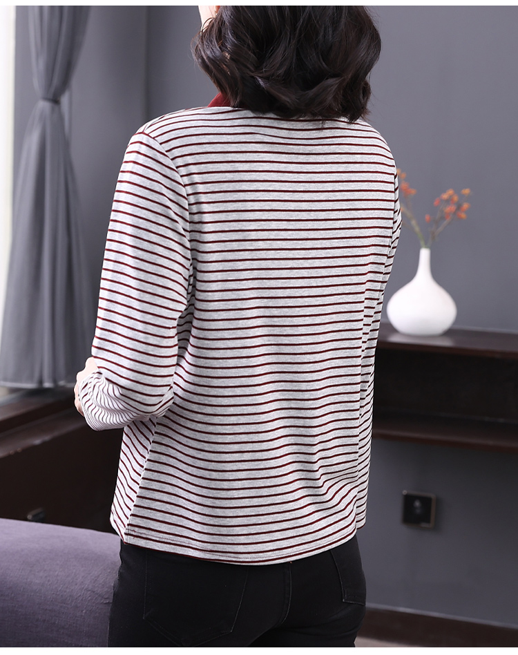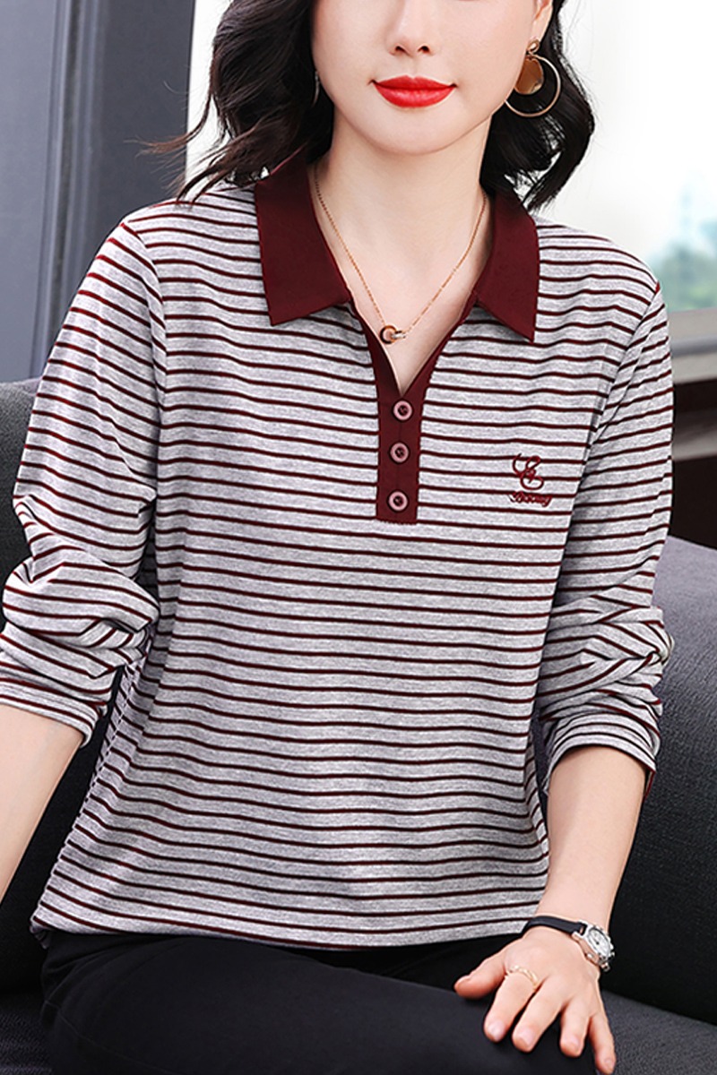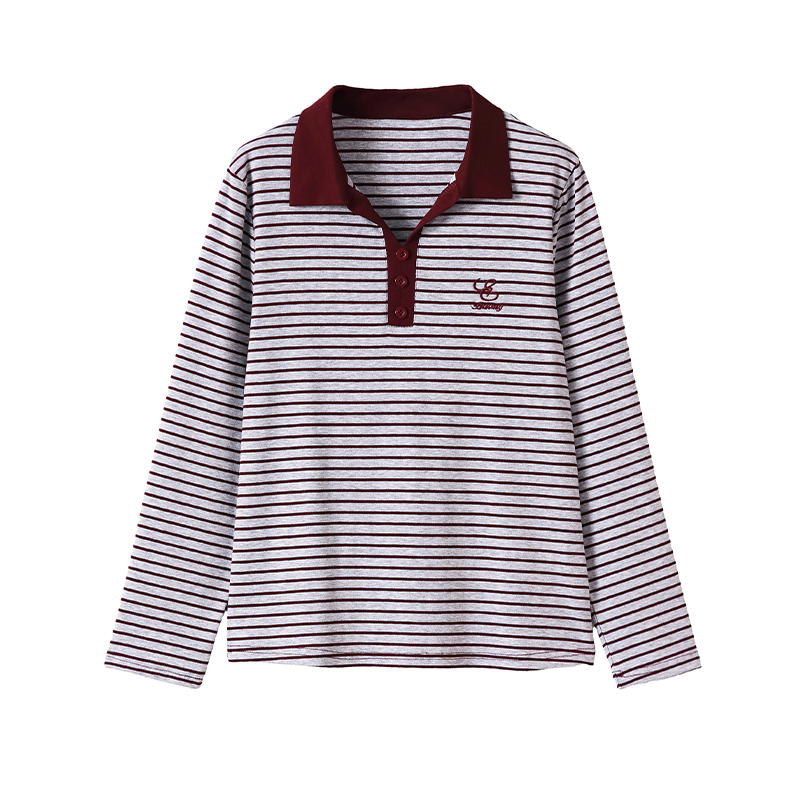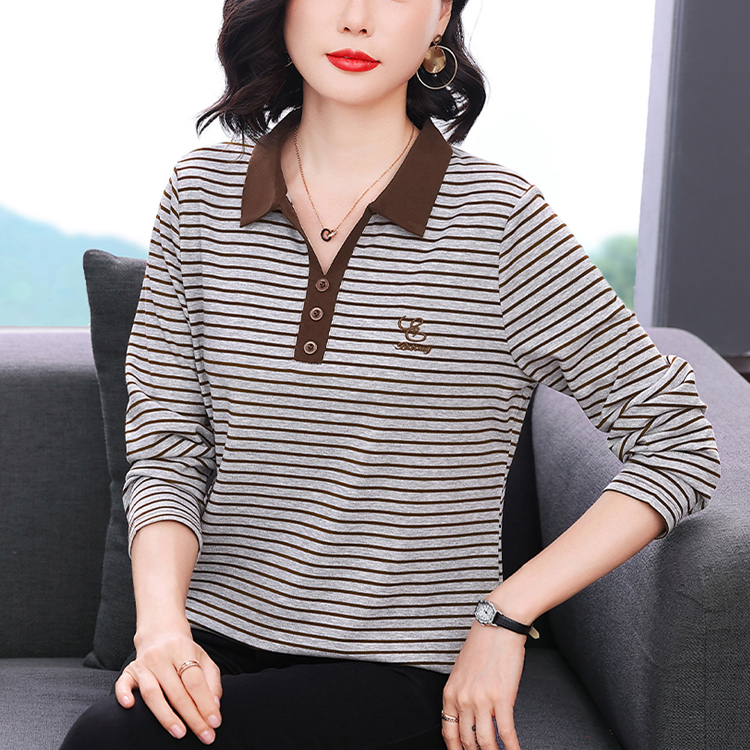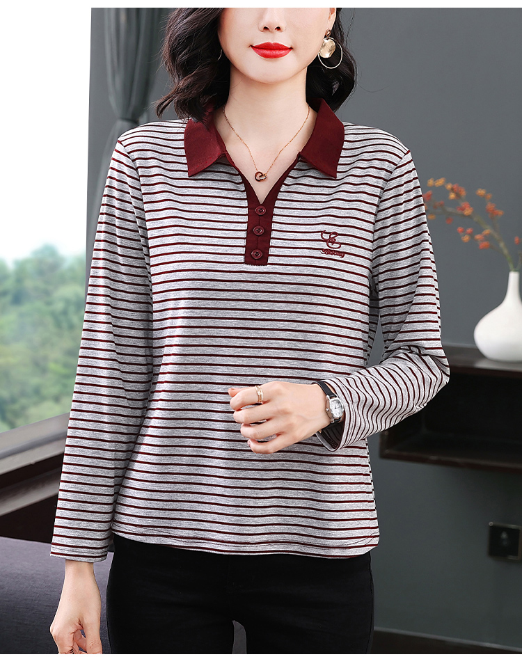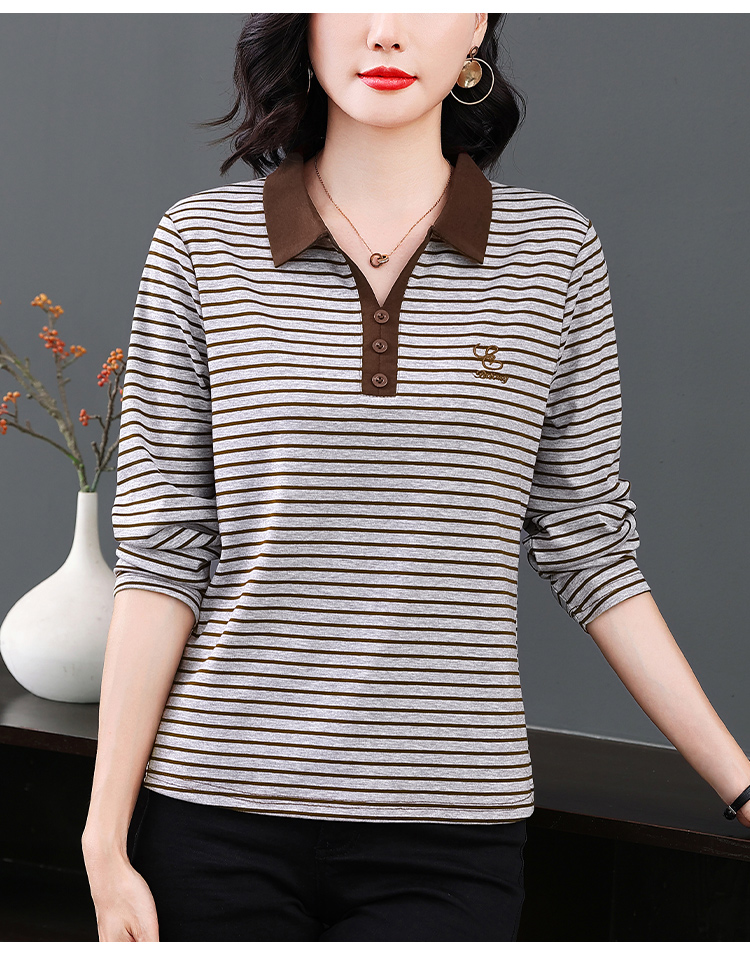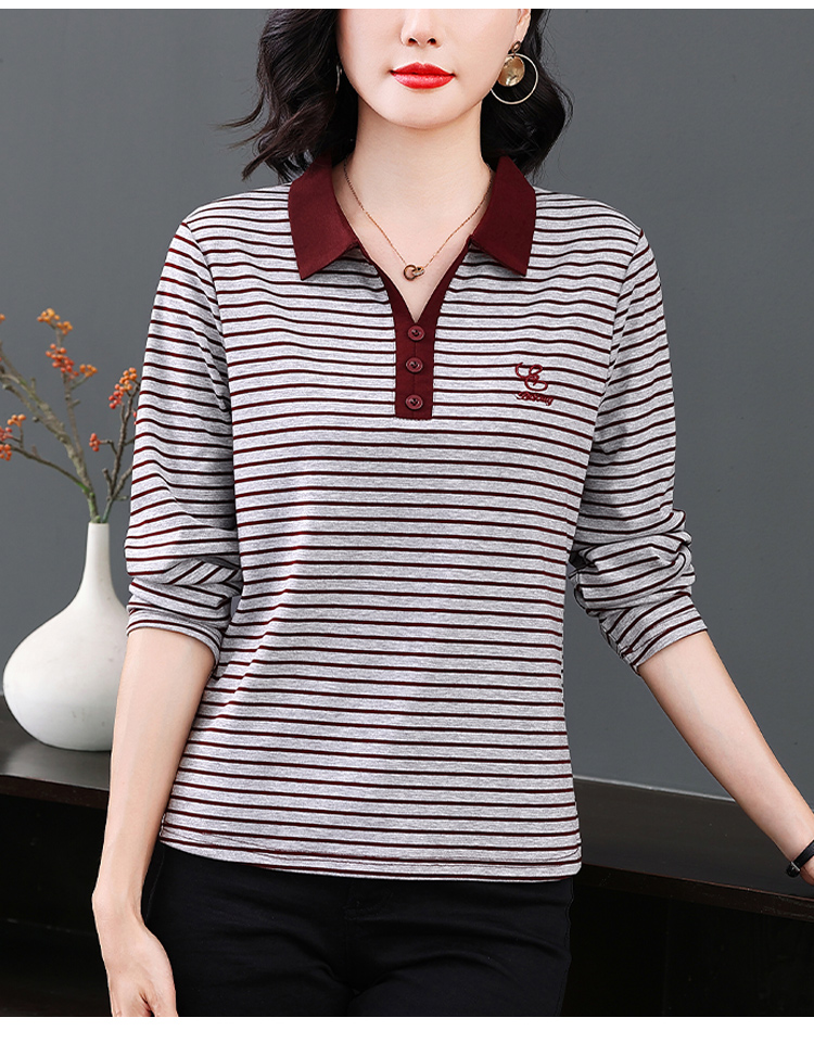 MY15229# 宽松长袖T恤新款字母刺绣大码条纹翻领上衣潮女裝貨源服裝批發