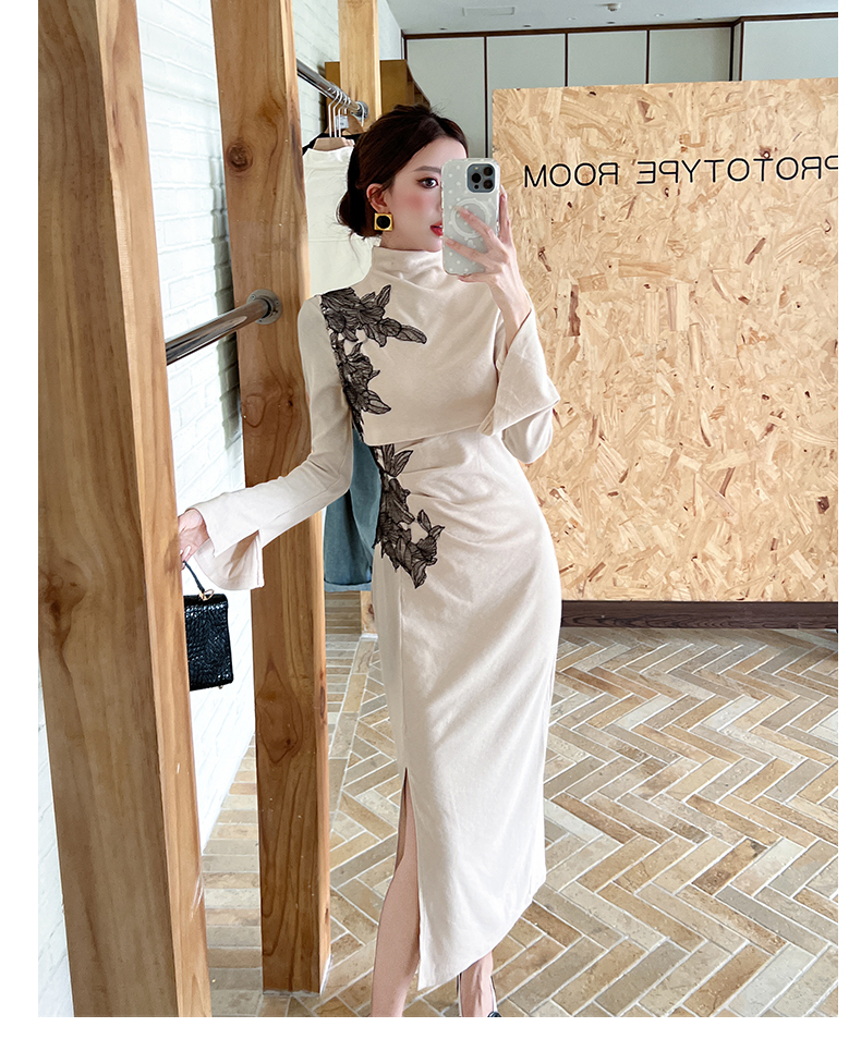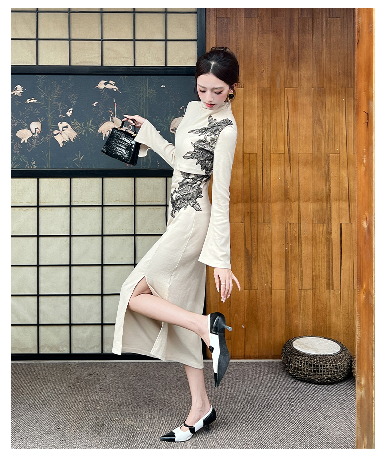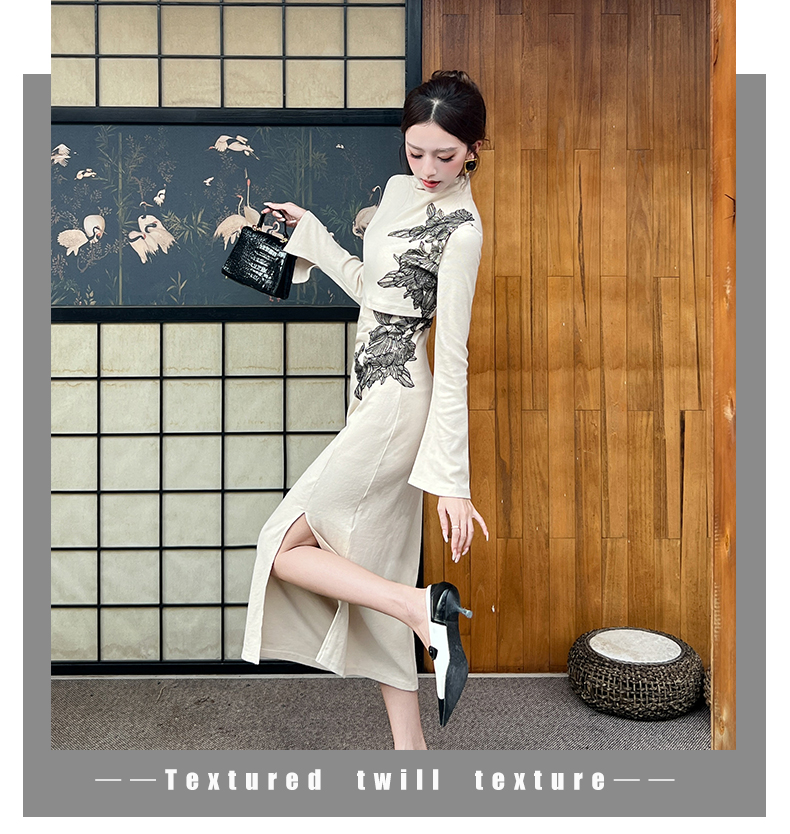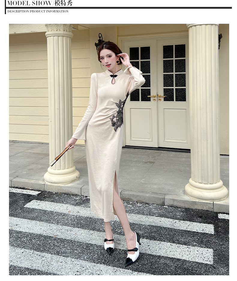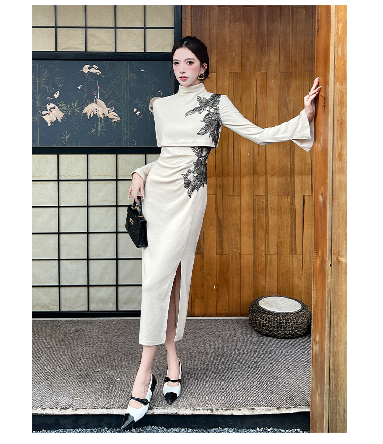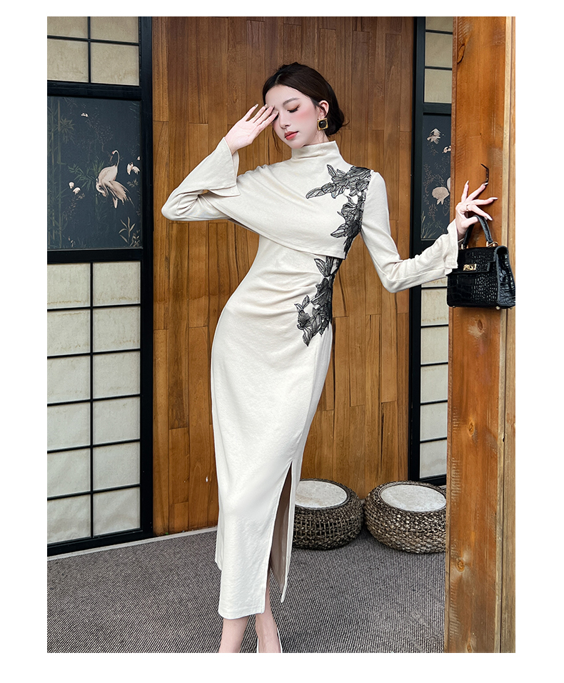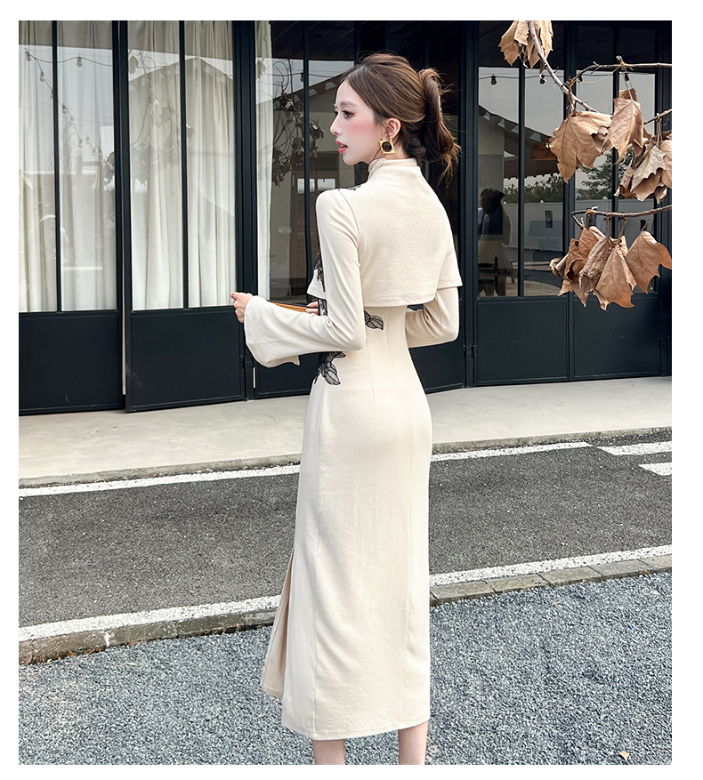 MY15233# 枫叙新中式针织连衣裙女法式斗篷披肩长袖旗袍长裙女裝貨源服裝批發
