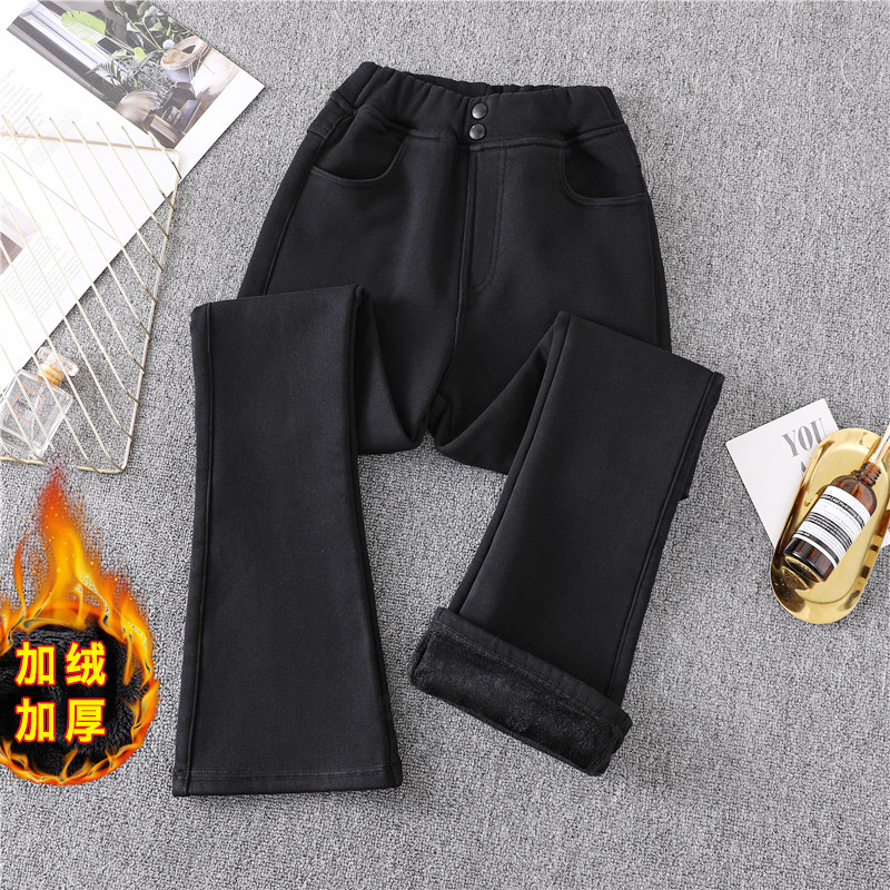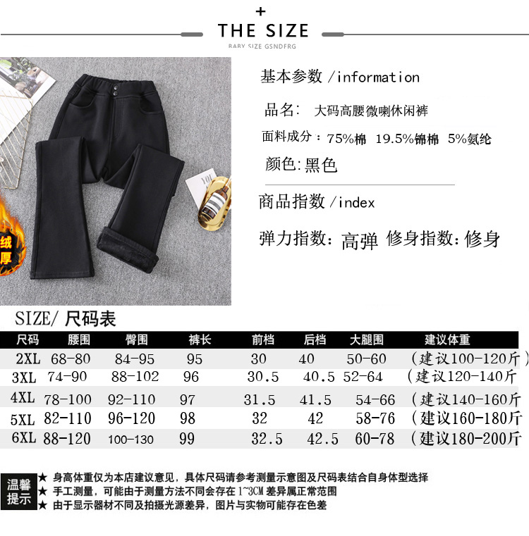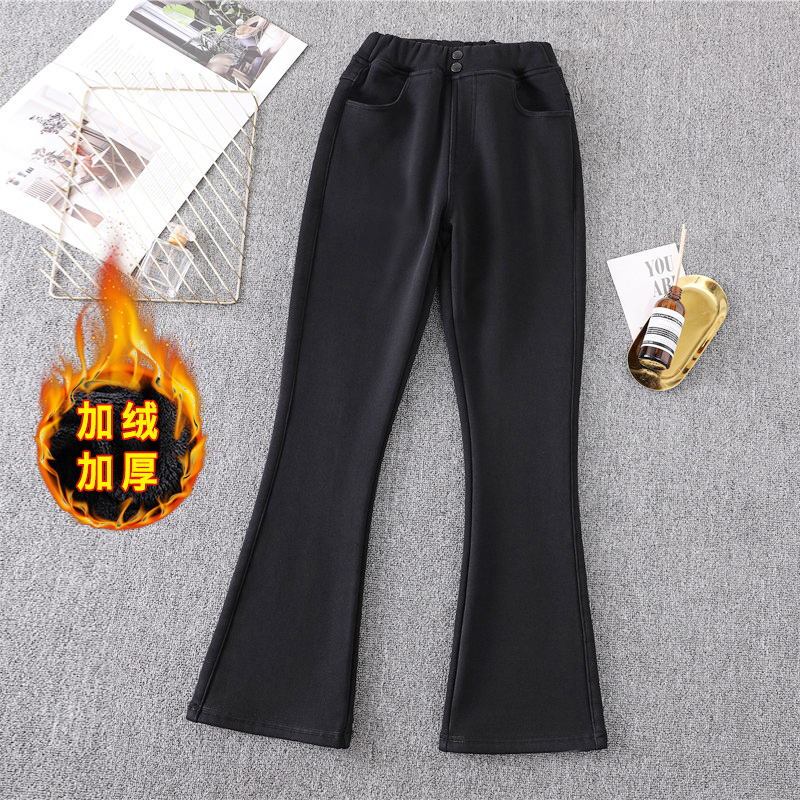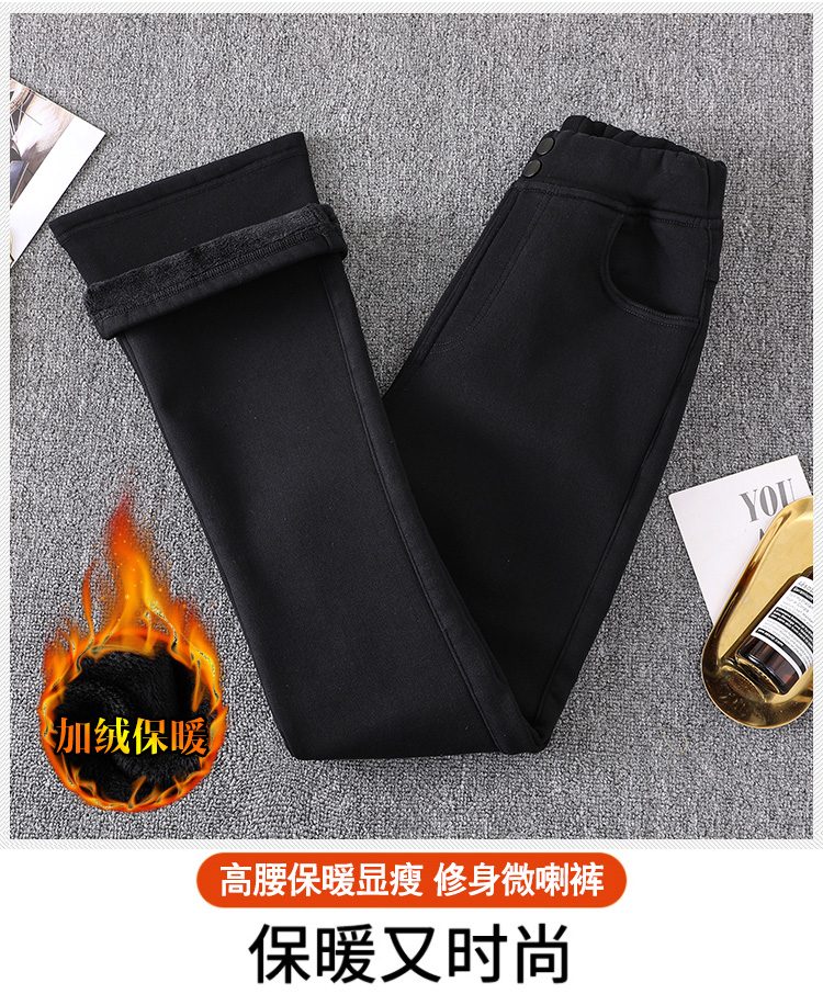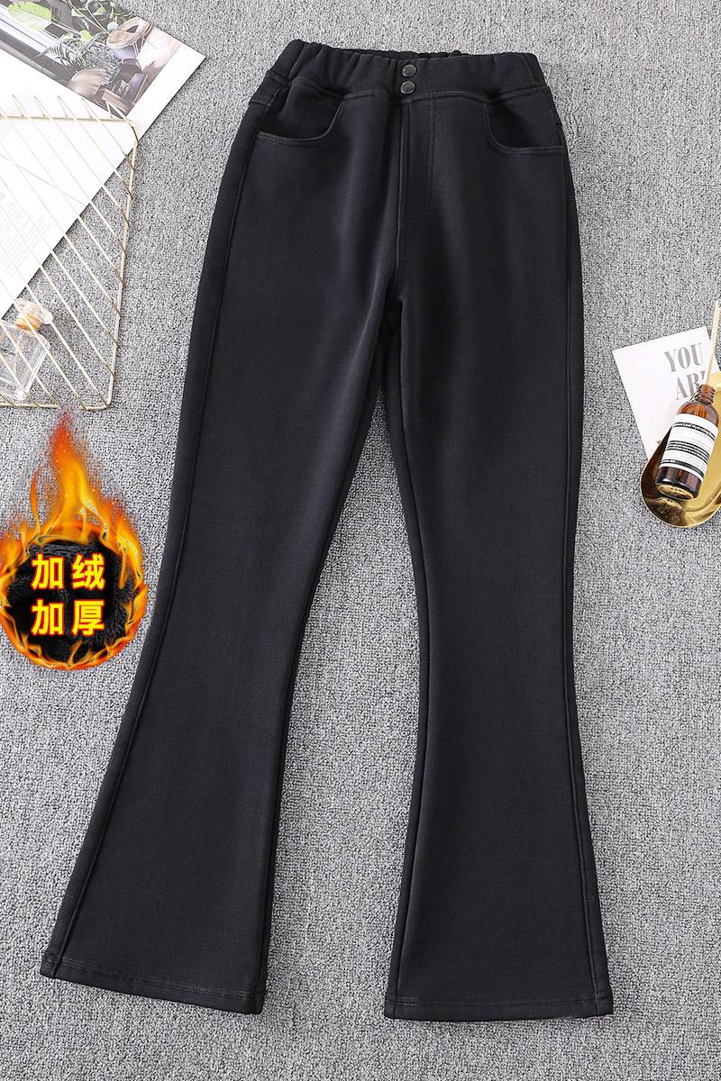 MY15236# 大码高腰弹力加绒加厚微喇女休闲显瘦胖MM韩版保暖裤女裝貨源服裝批發