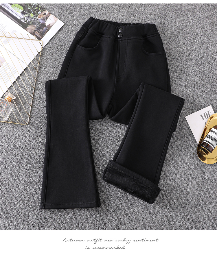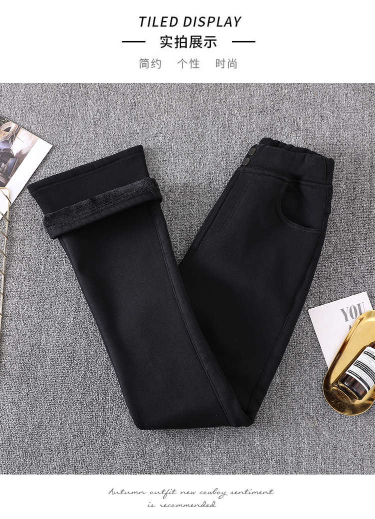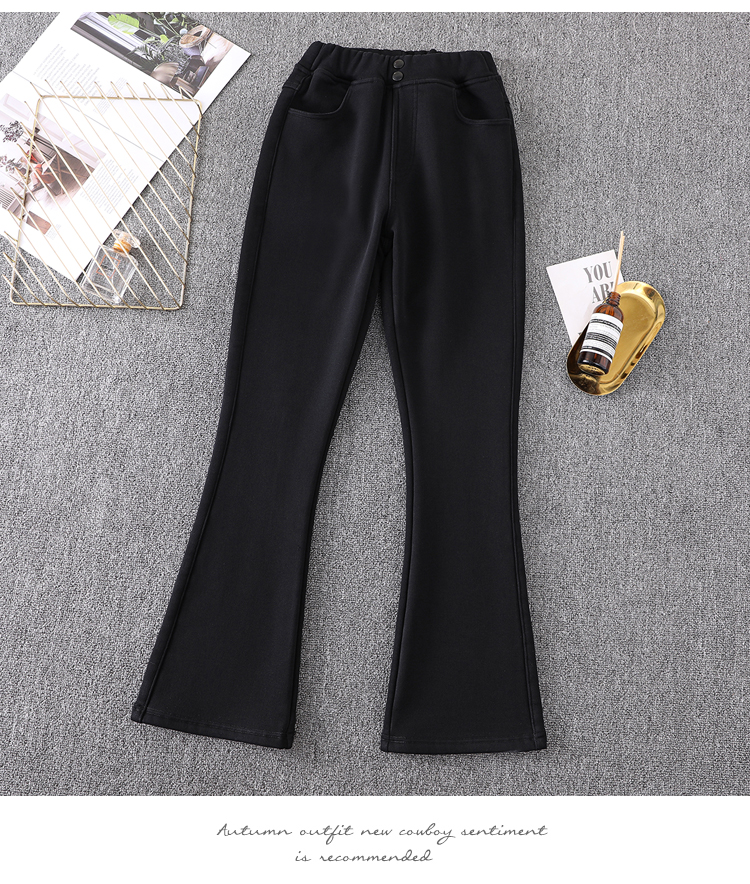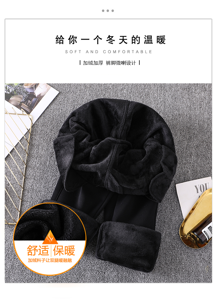 MY15236# 大码高腰弹力加绒加厚微喇女休闲显瘦胖MM韩版保暖裤女裝貨源服裝批發