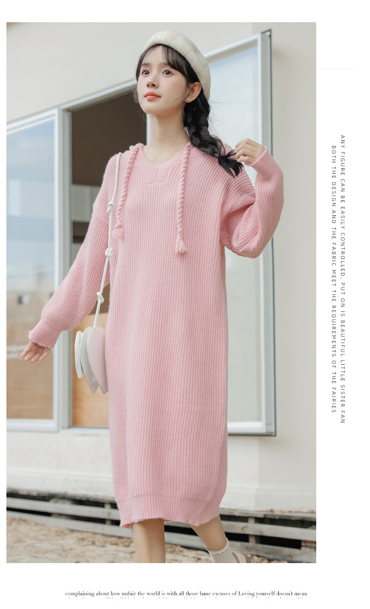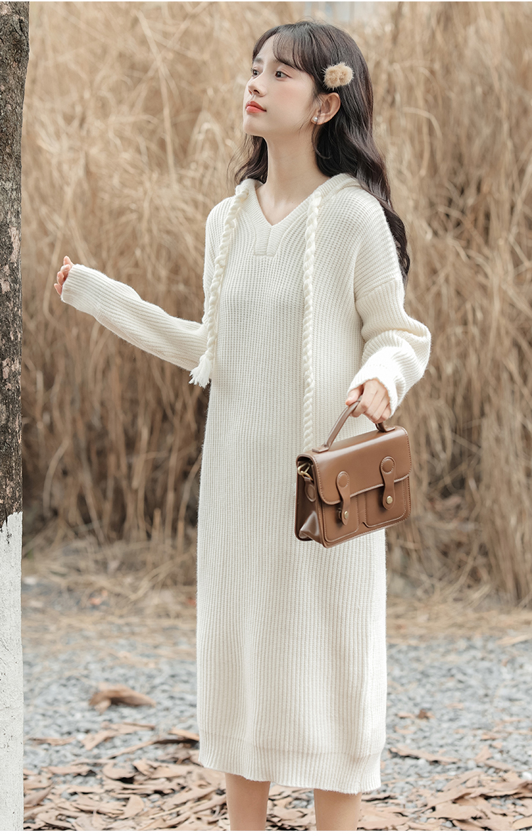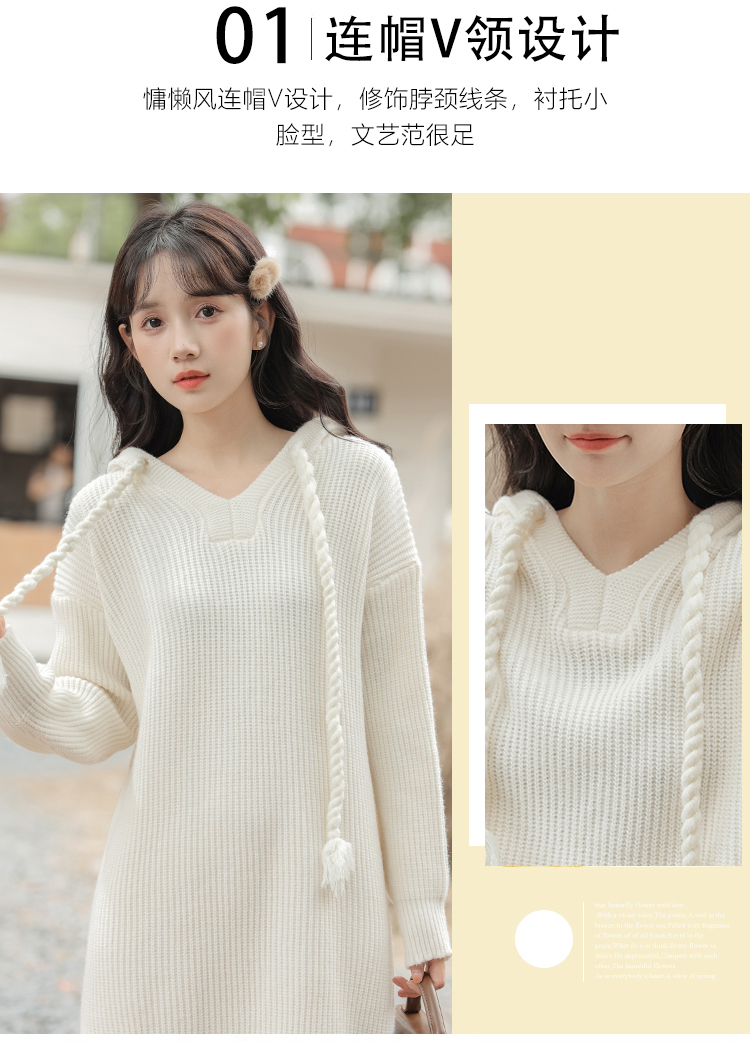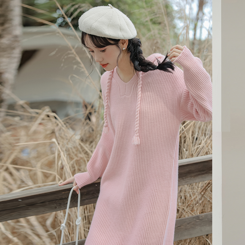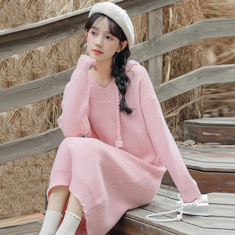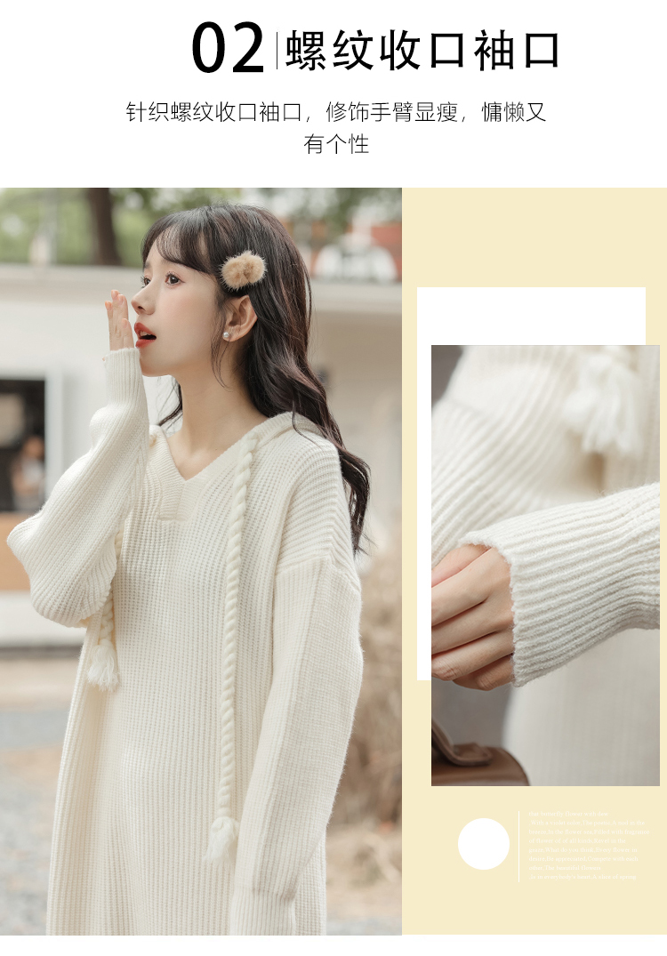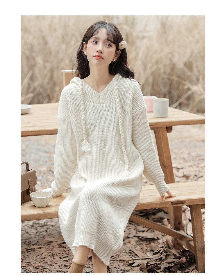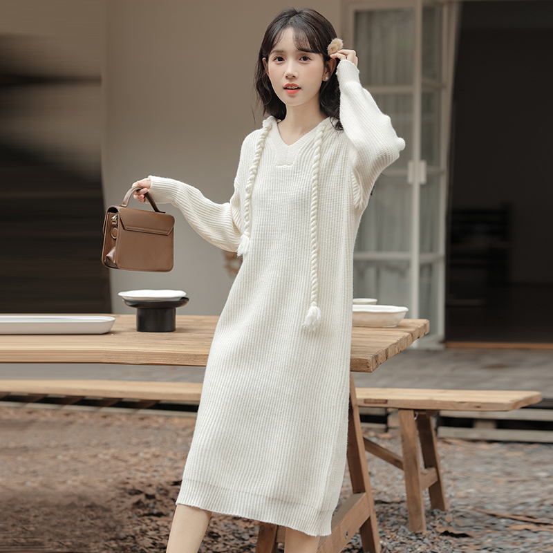 MY15244# 新款法式高级感慵懒风毛衣长裙连帽针织连衣裙女裝貨源服裝批發