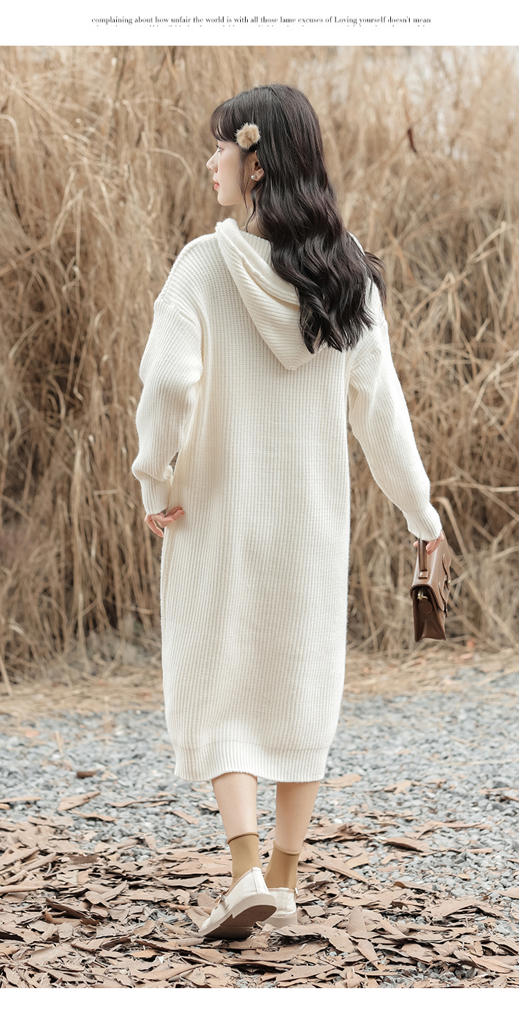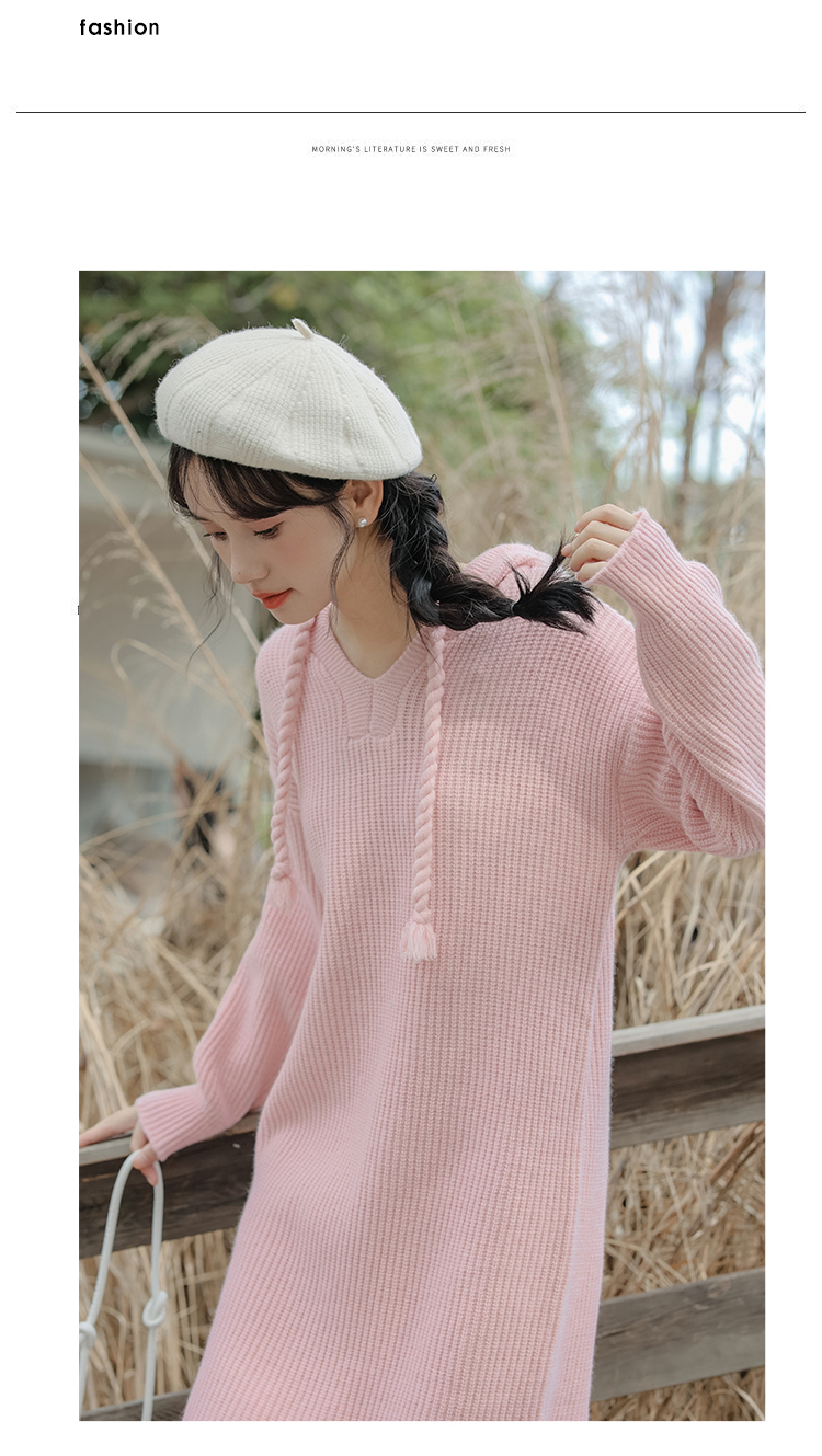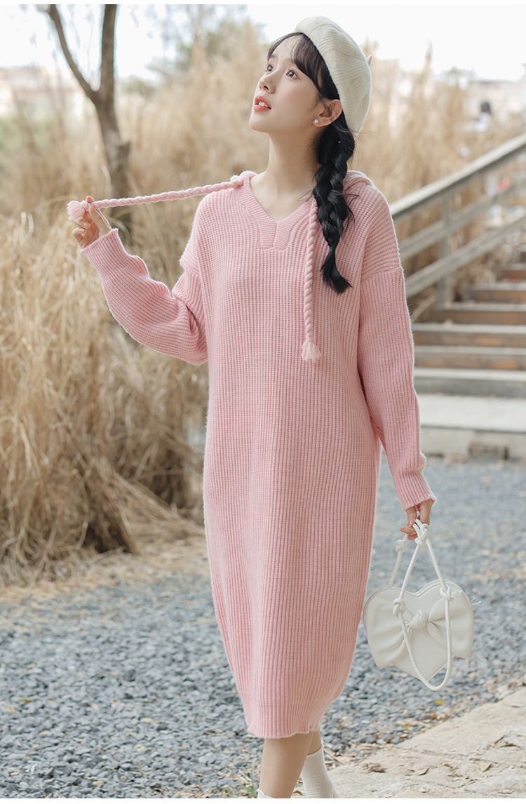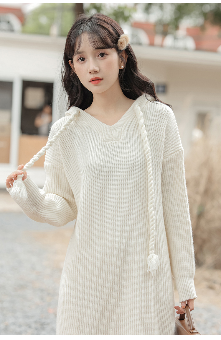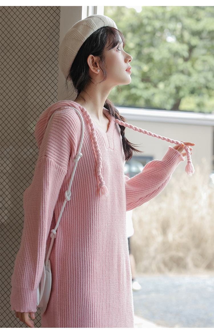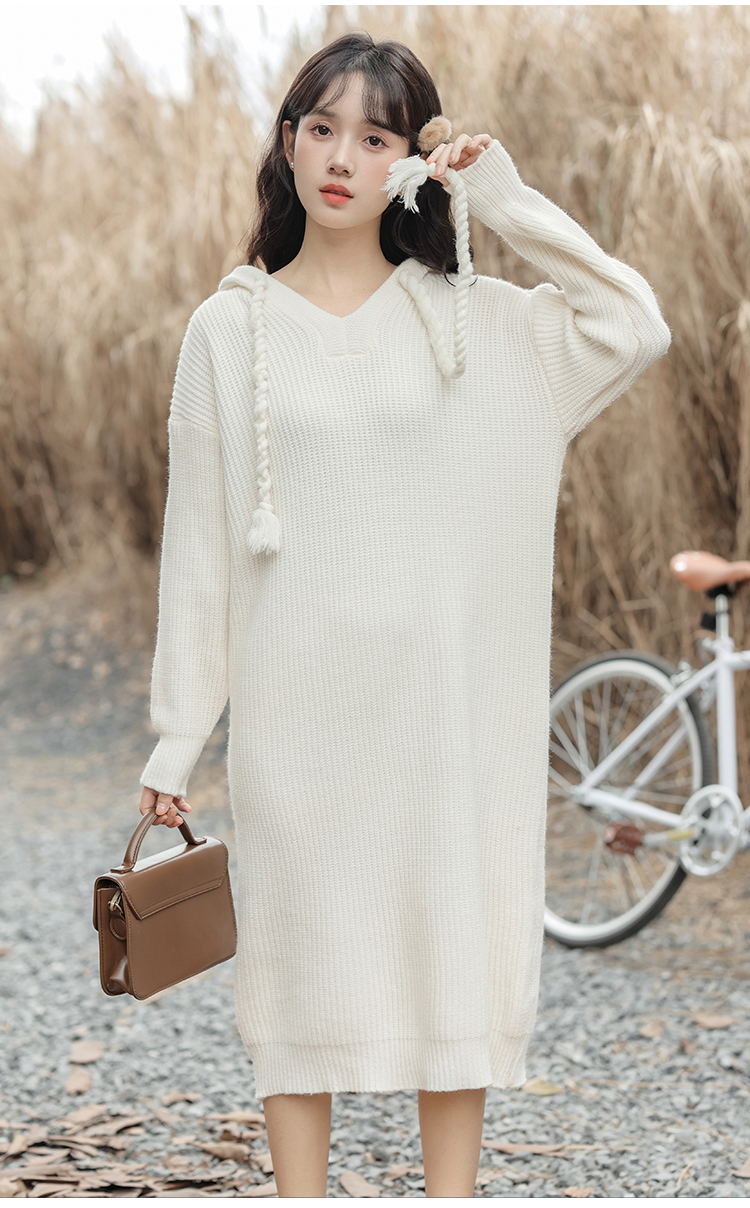 MY15244# 新款法式高级感慵懒风毛衣长裙连帽针织连衣裙女裝貨源服裝批發