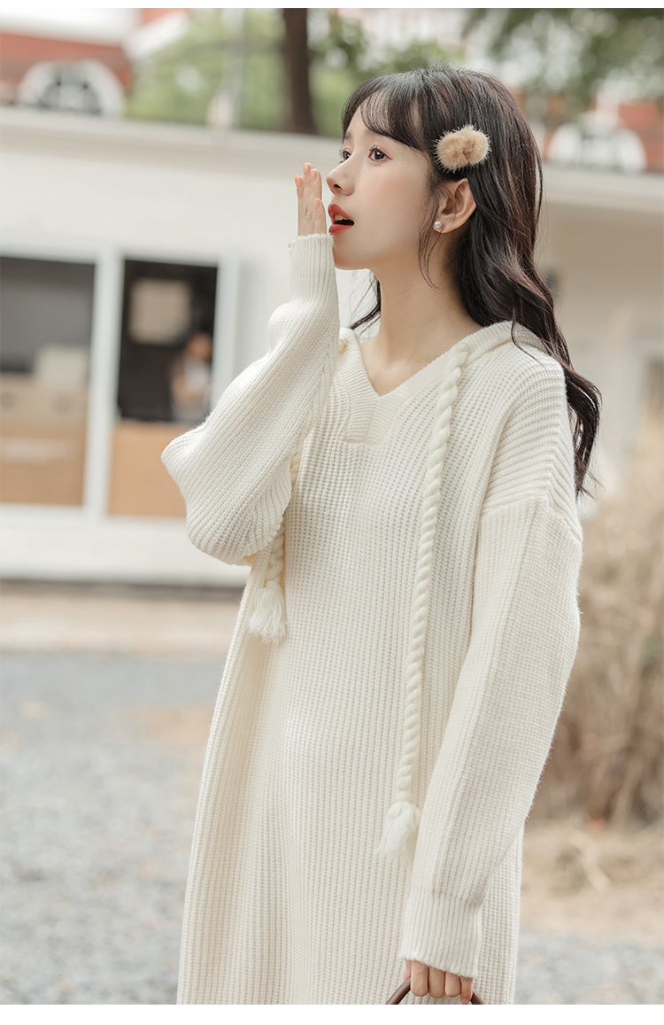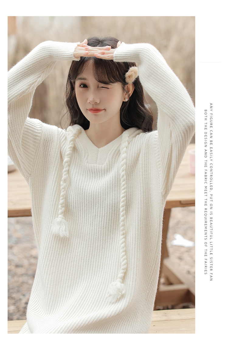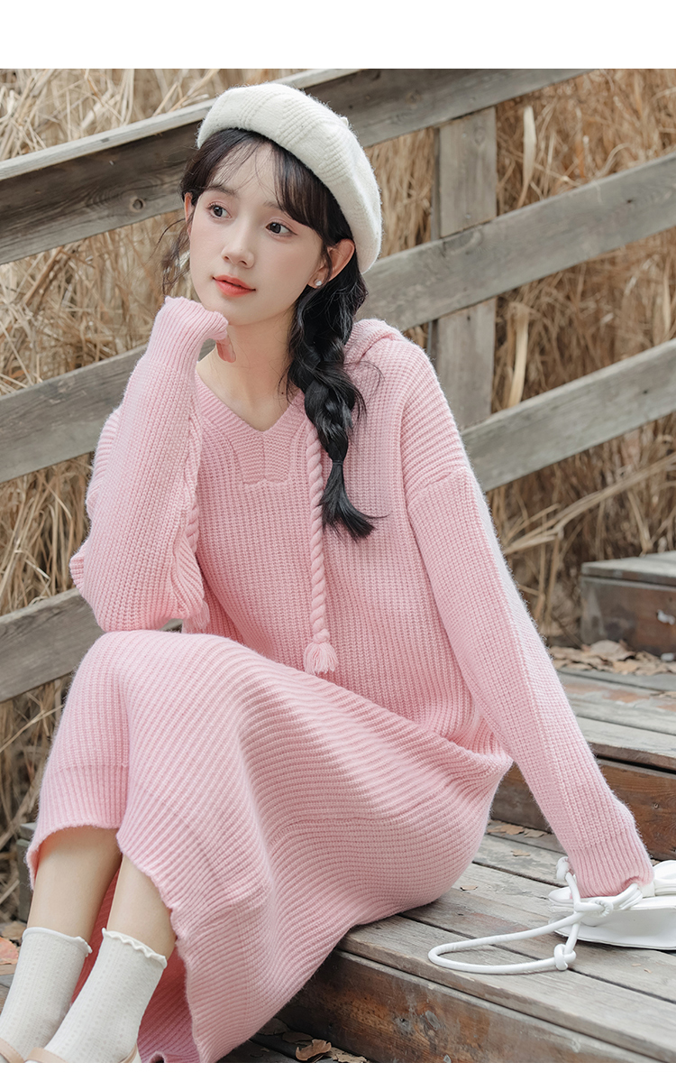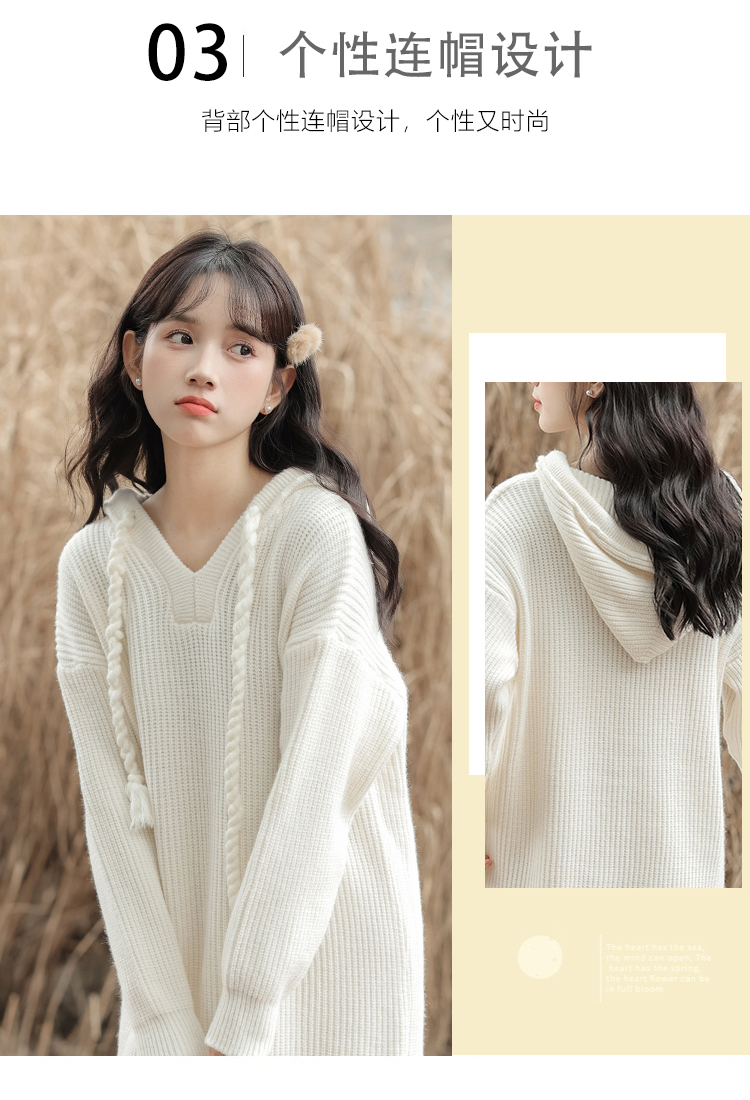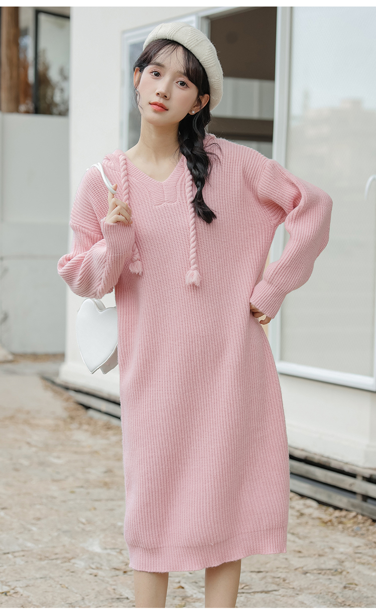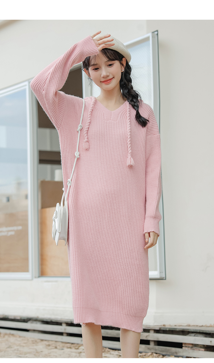 MY15244# 新款法式高级感慵懒风毛衣长裙连帽针织连衣裙女裝貨源服裝批發