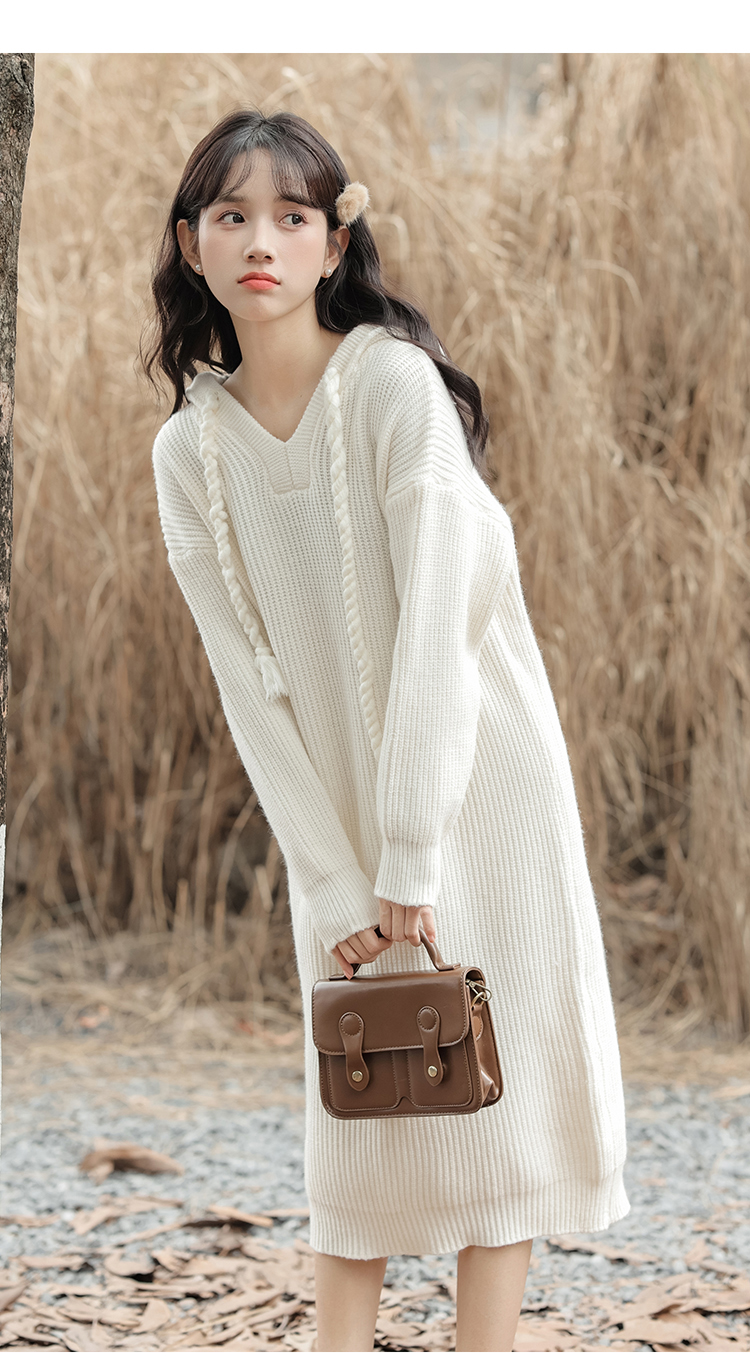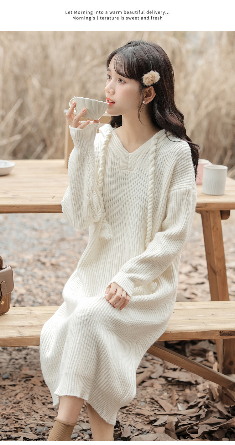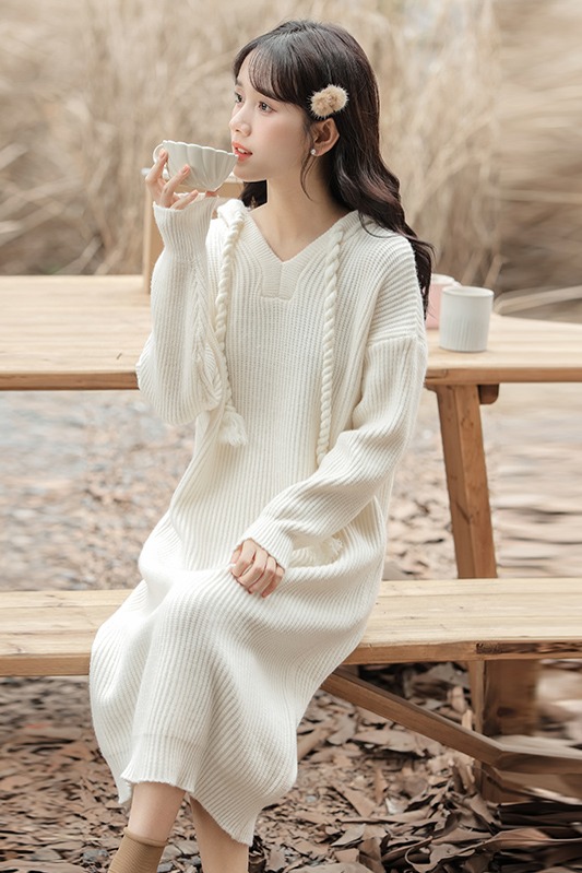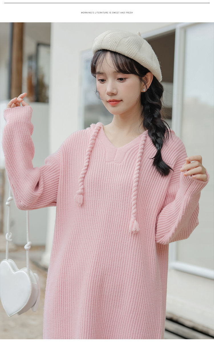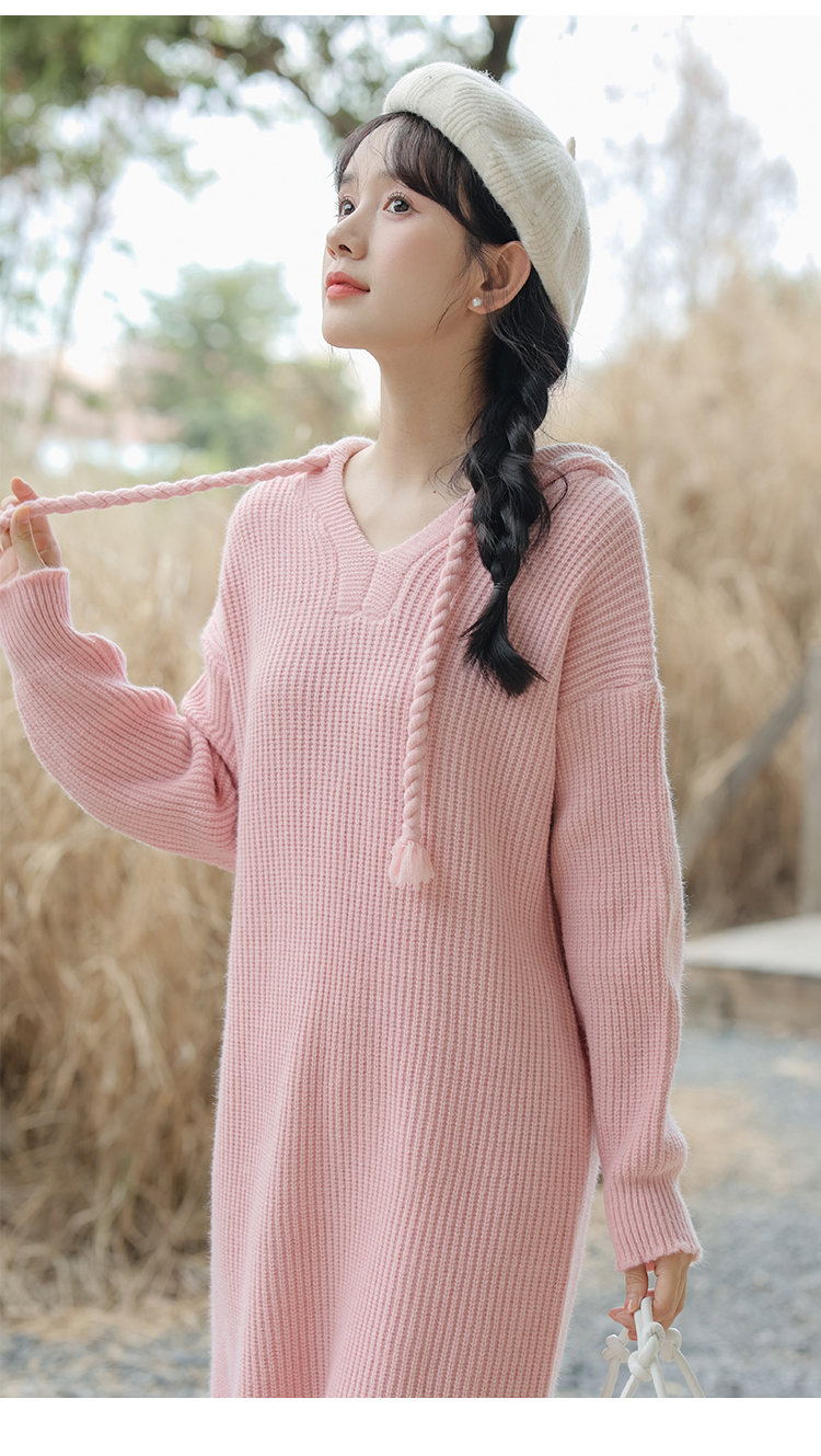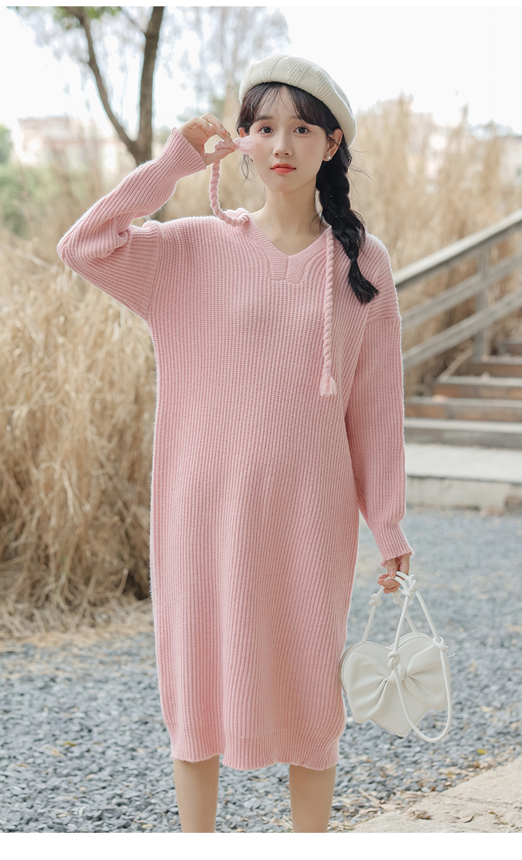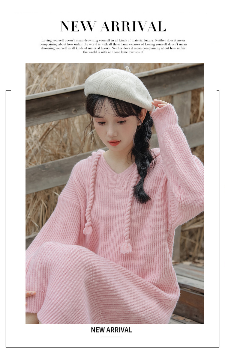 MY15244# 新款法式高级感慵懒风毛衣长裙连帽针织连衣裙女裝貨源服裝批發
