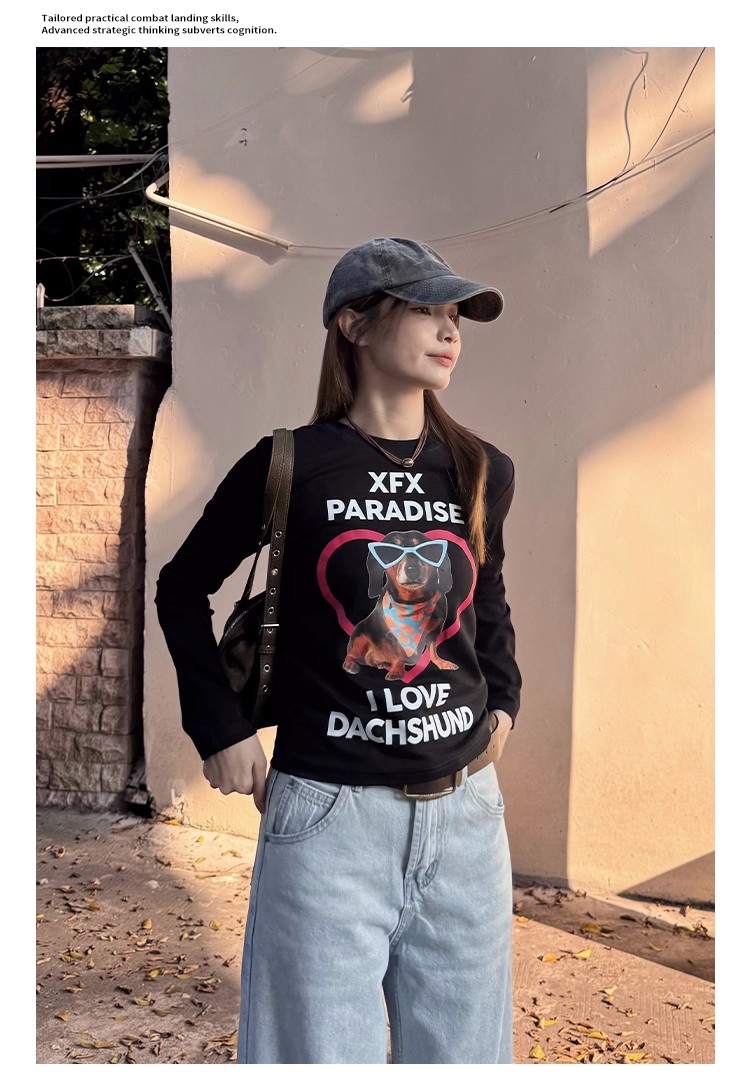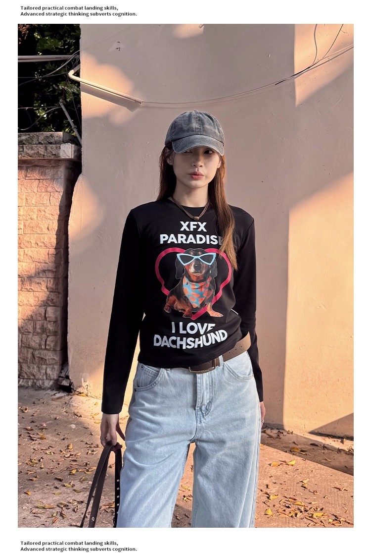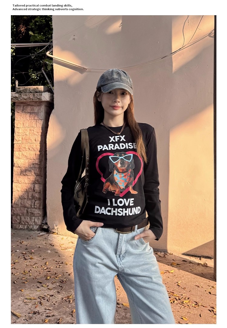 MY15262# 不漏腰 常规款长袖t恤新款修身打底衫设计感常规款辣妹上衣女裝貨源服裝批發