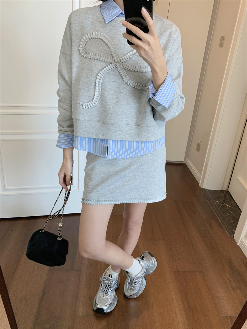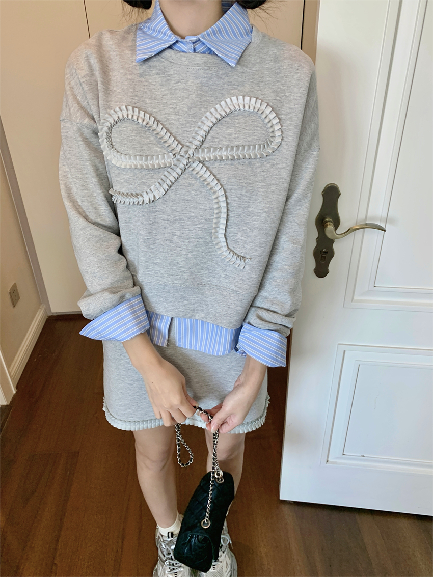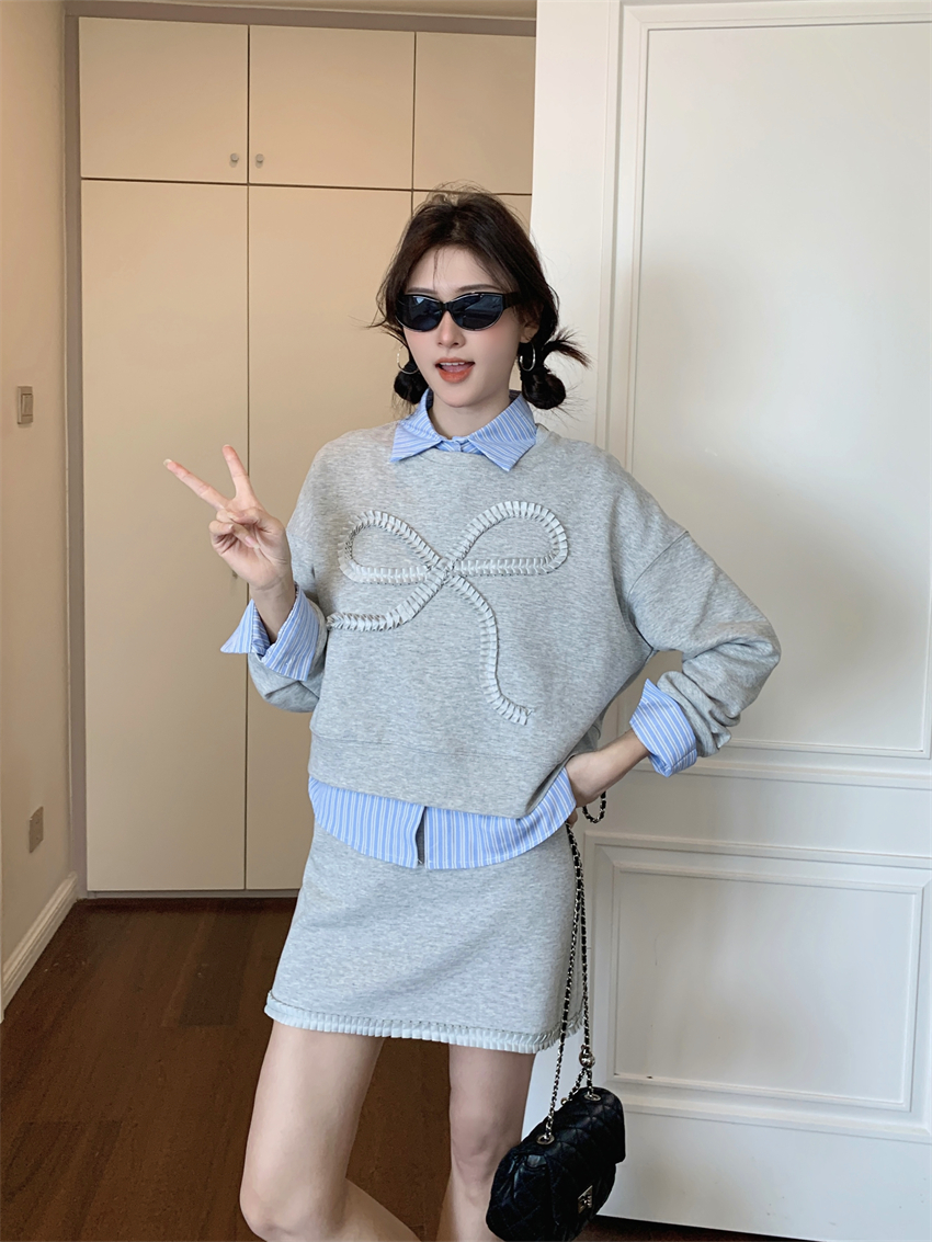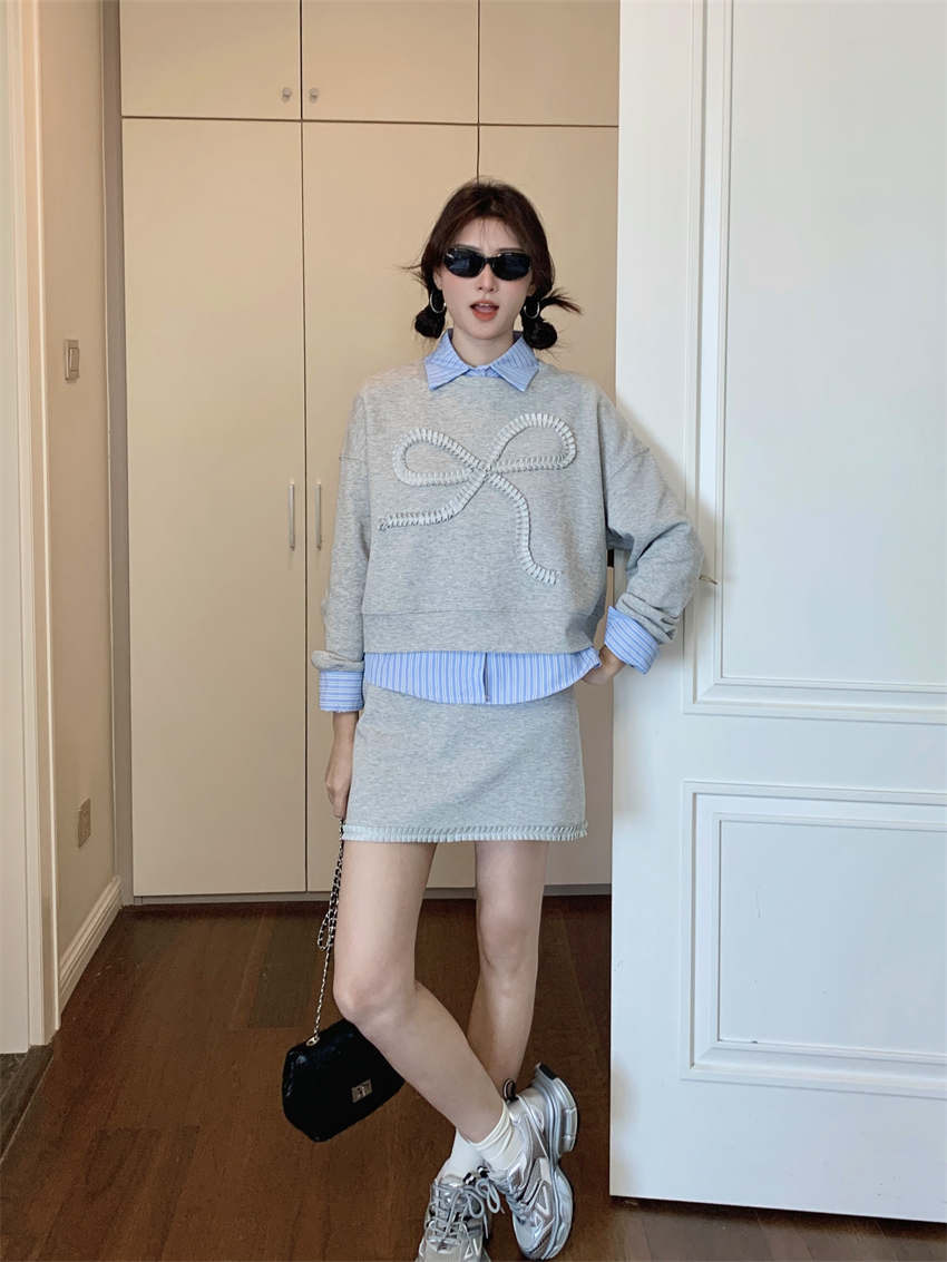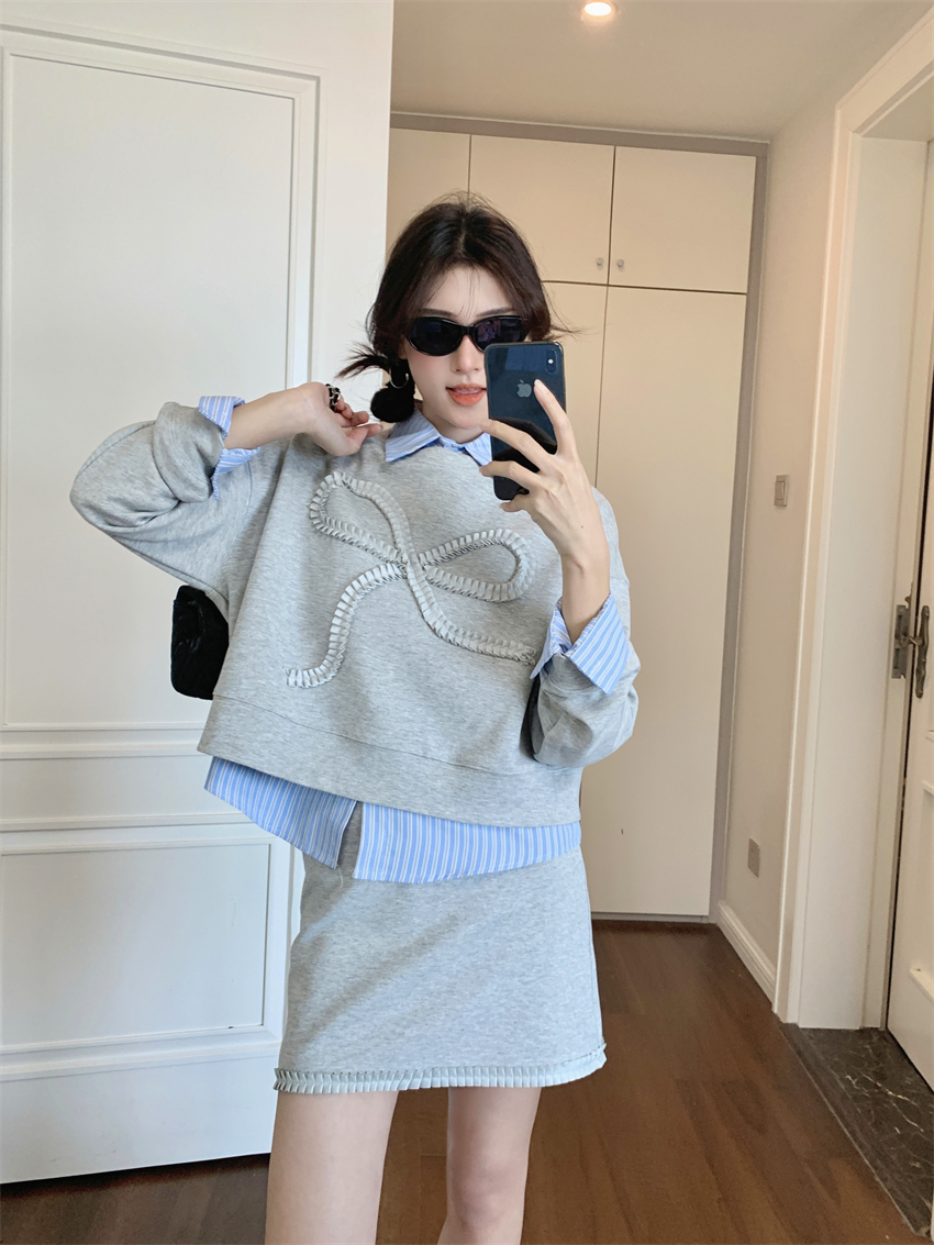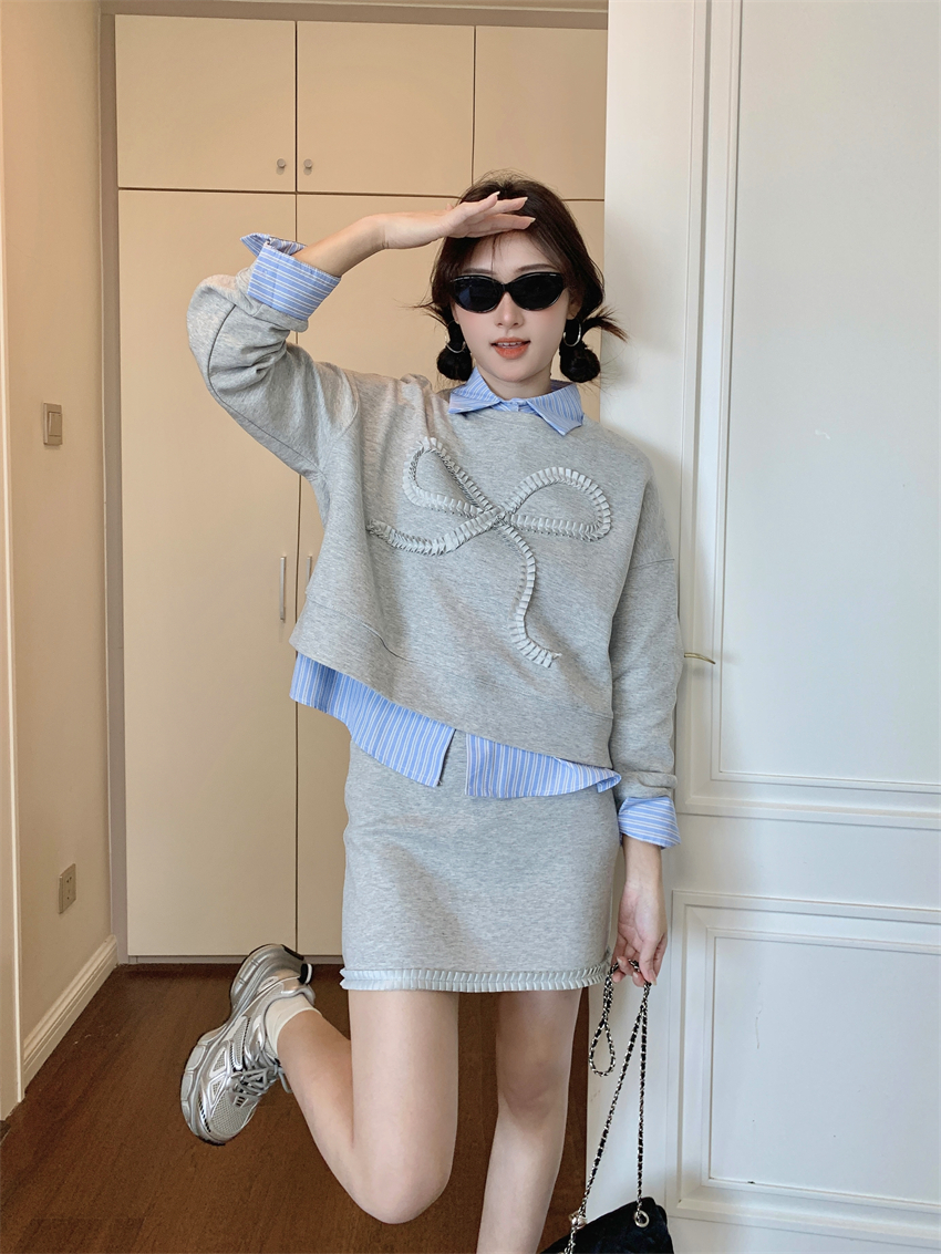 MY15276# 新款叠穿短款卫衣条纹衬衫2025时尚两件套装女女裝貨源服裝批發