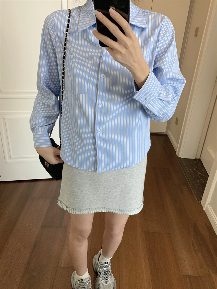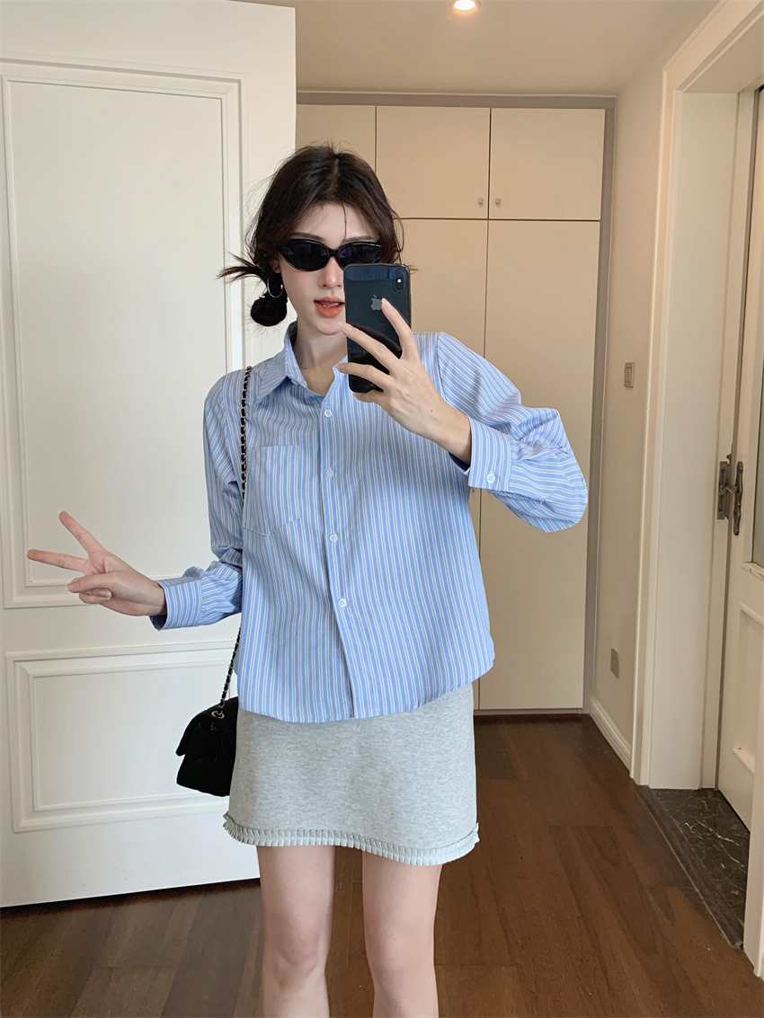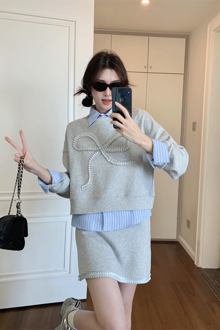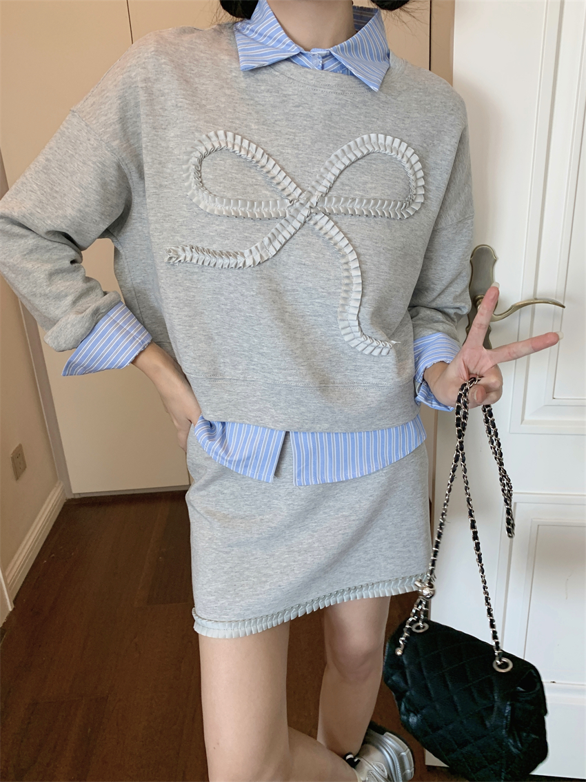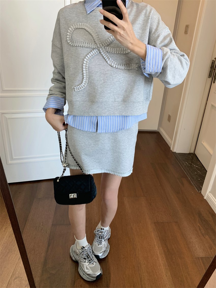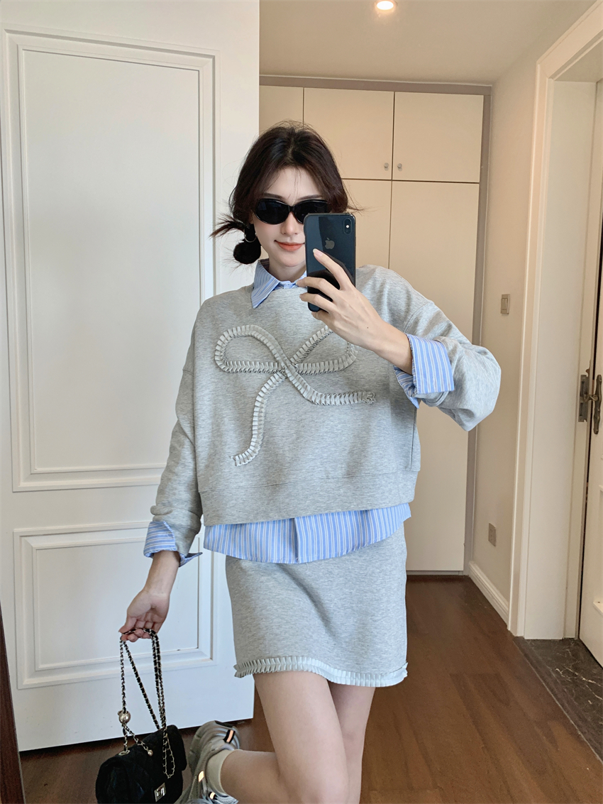 MY15276# 新款叠穿短款卫衣条纹衬衫2025时尚两件套装女女裝貨源服裝批發