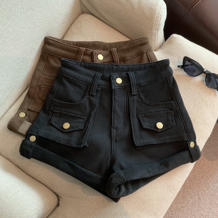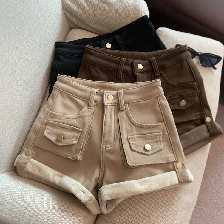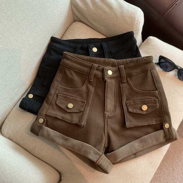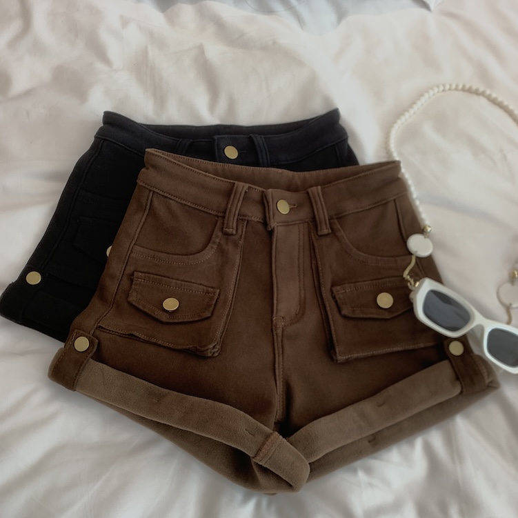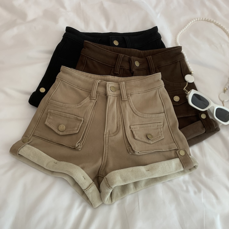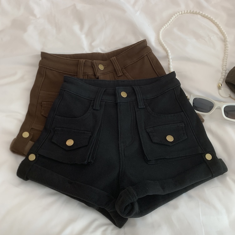 MY15292# 复古高腰工装加绒短裤女裝貨源服裝批發