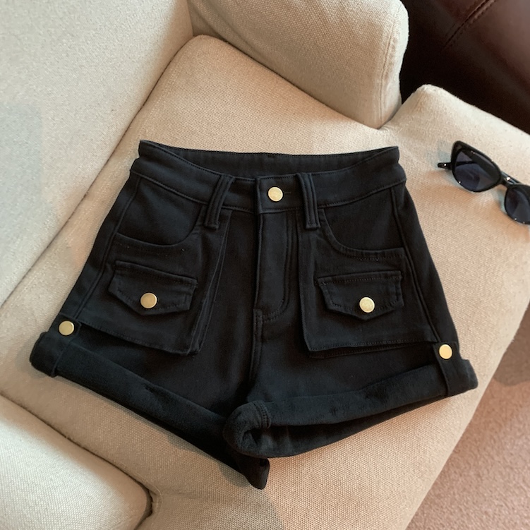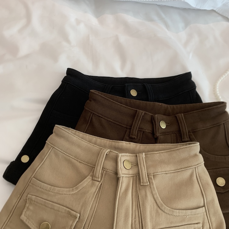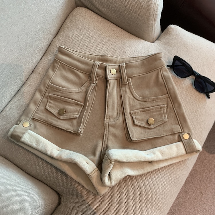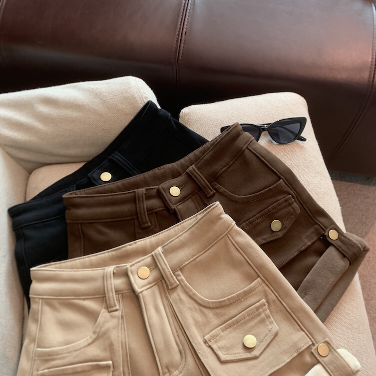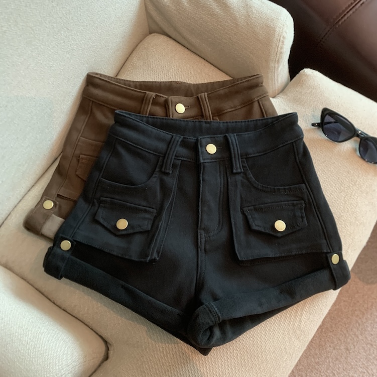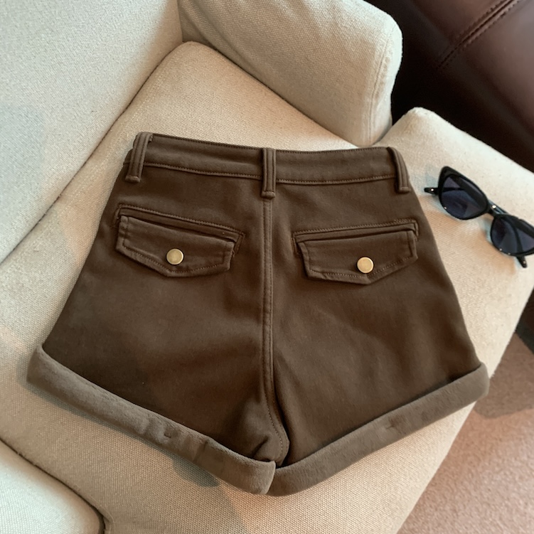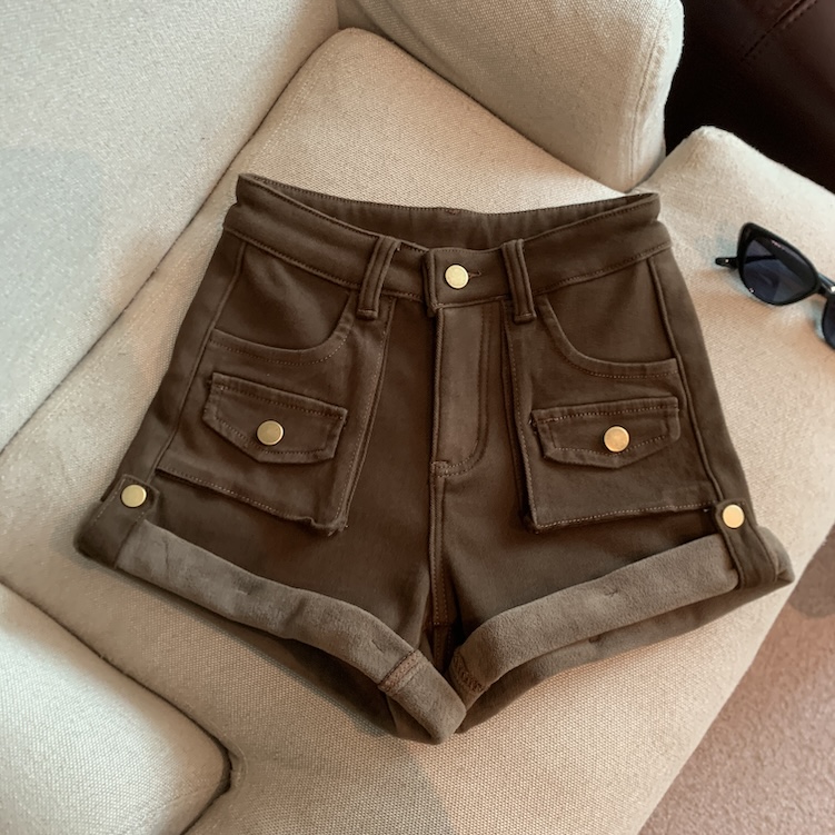 MY15292# 复古高腰工装加绒短裤女裝貨源服裝批發