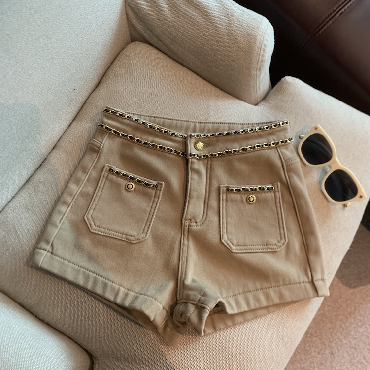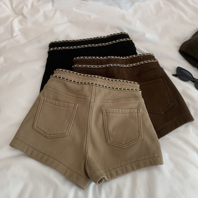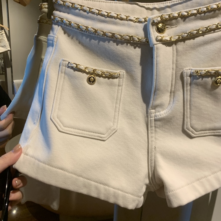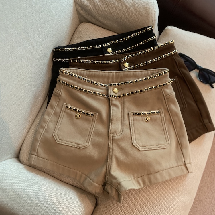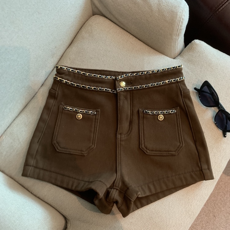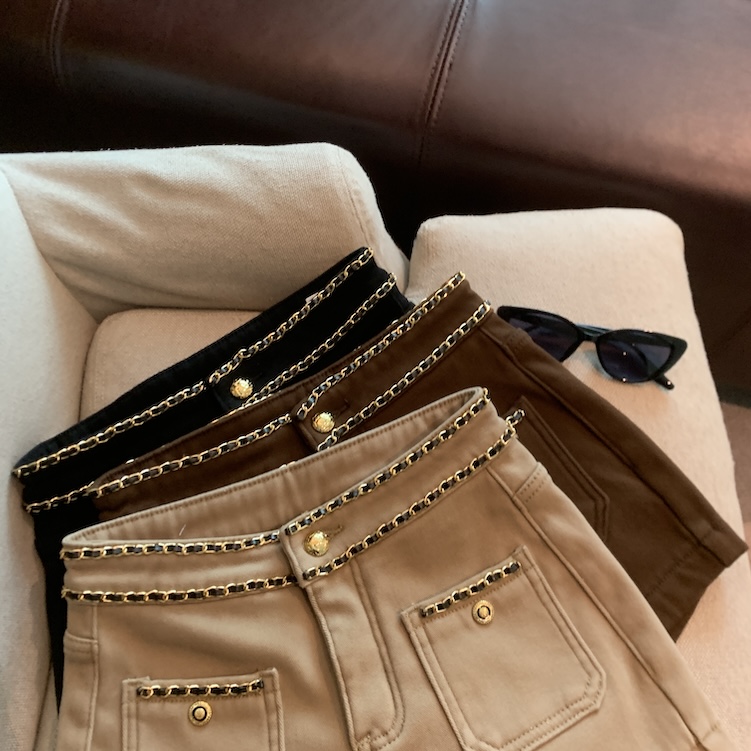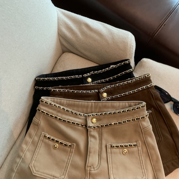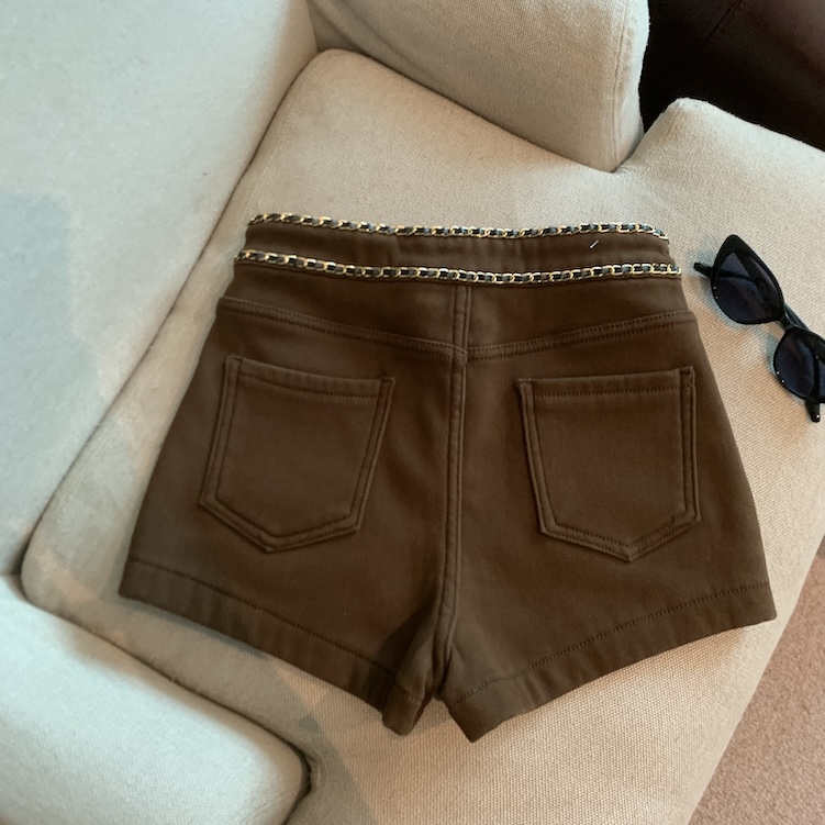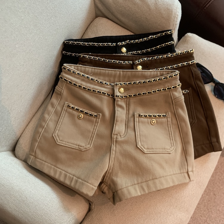 MY15293# 复古小香风设计感链条短裤女裝貨源服裝批發