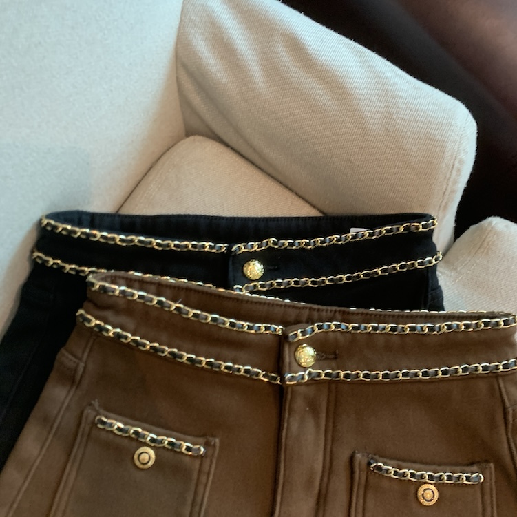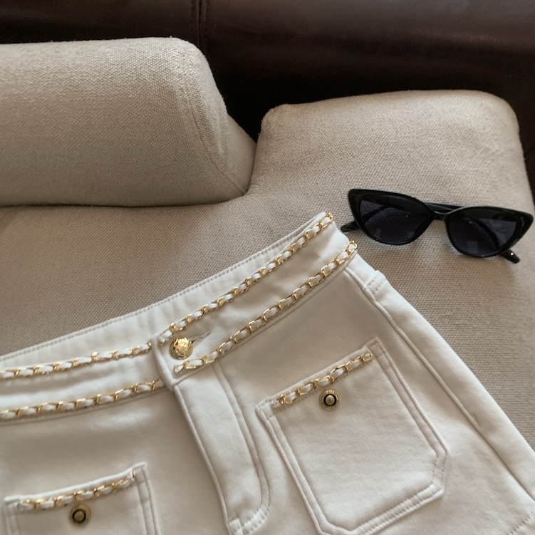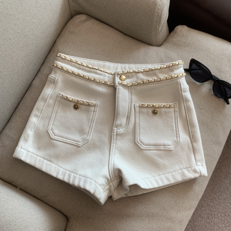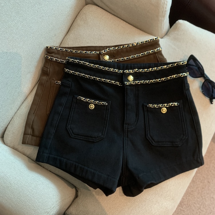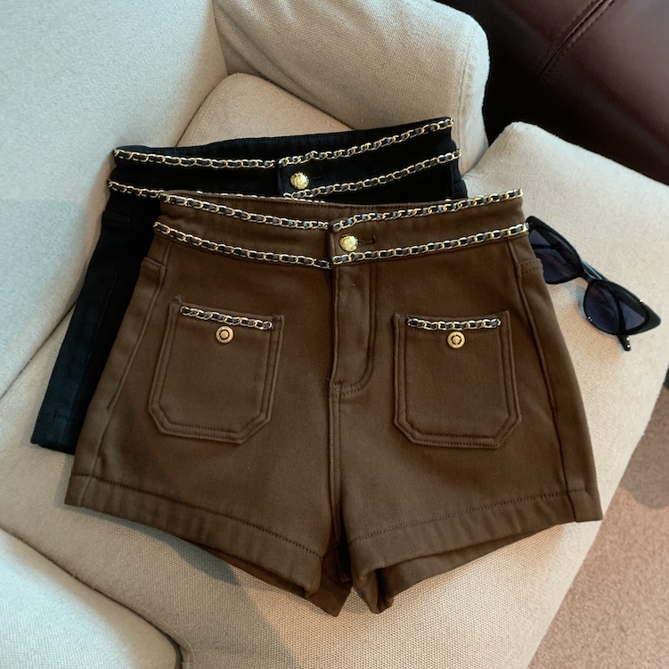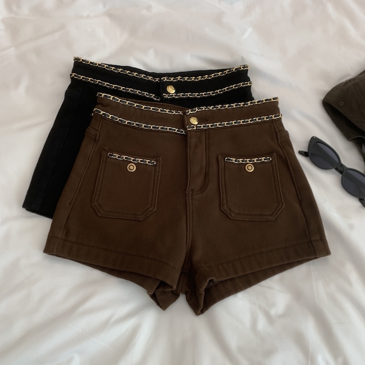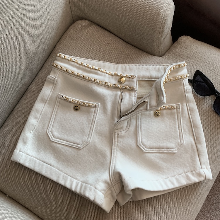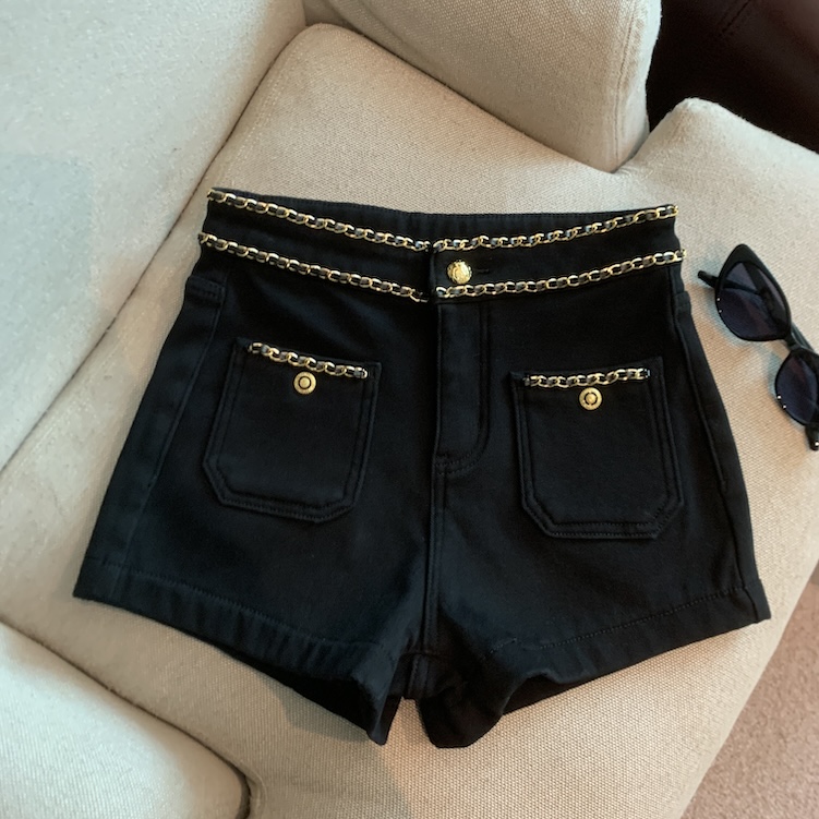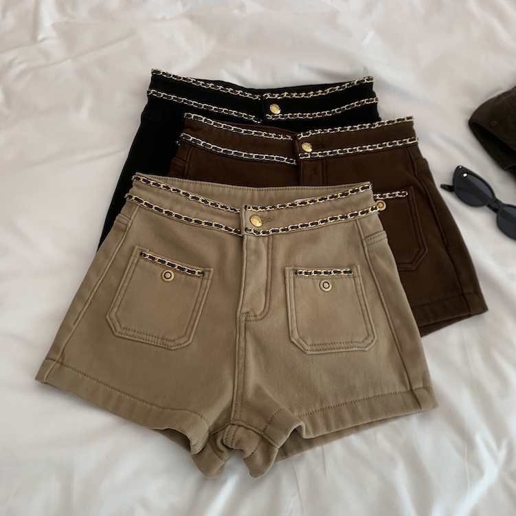 MY15293# 复古小香风设计感链条短裤女裝貨源服裝批發