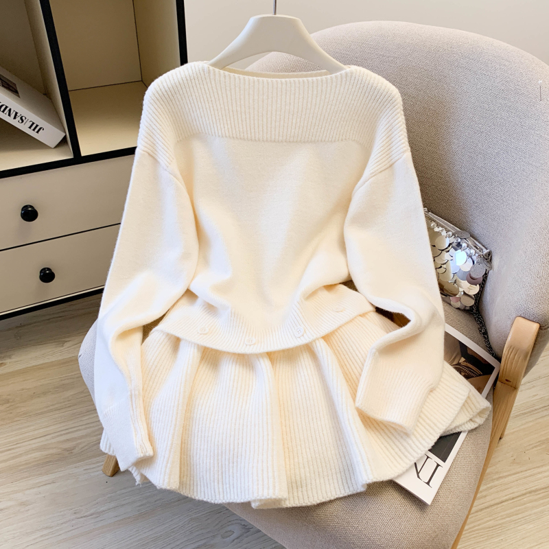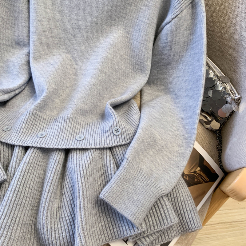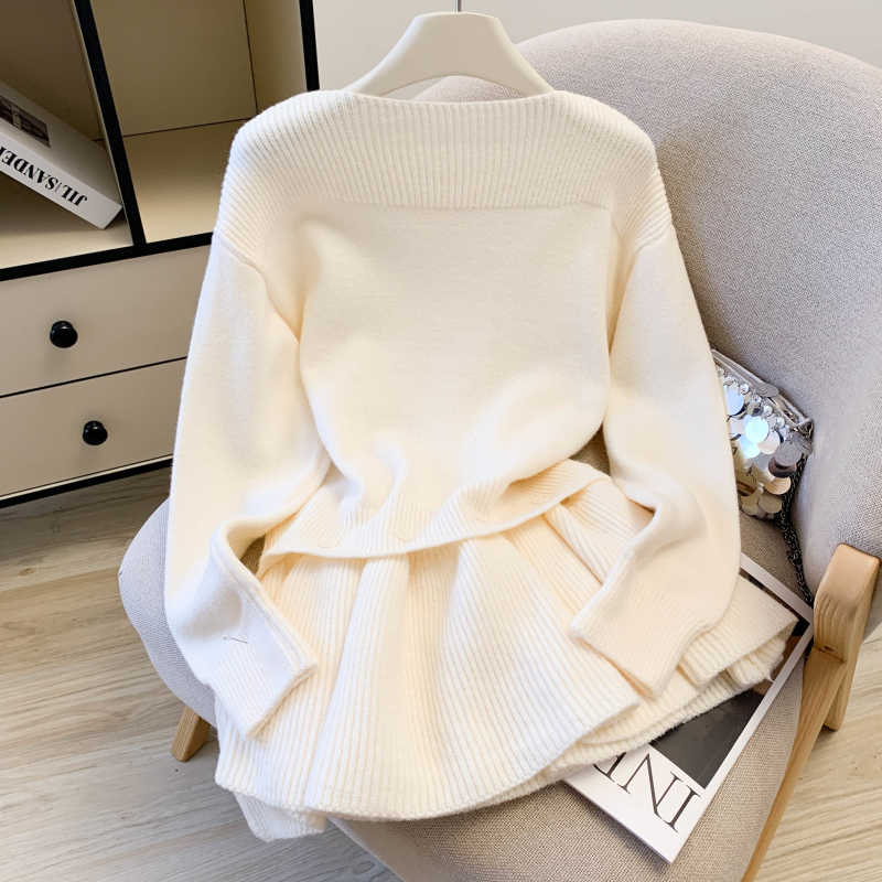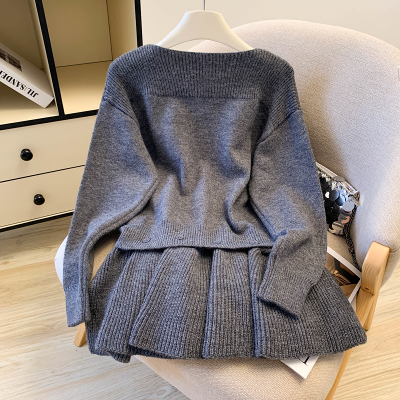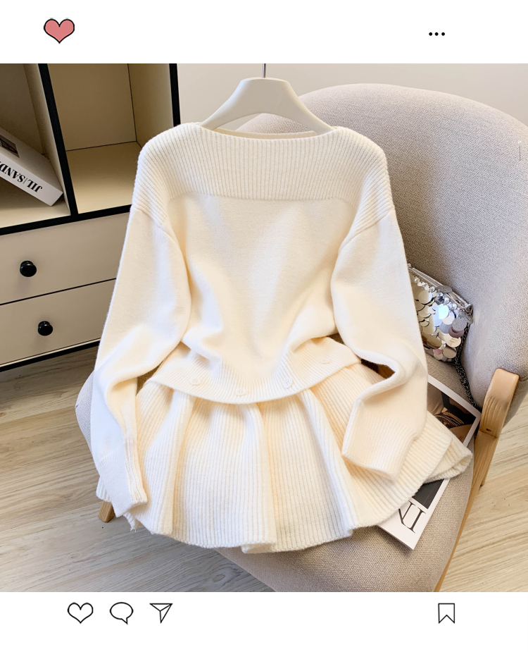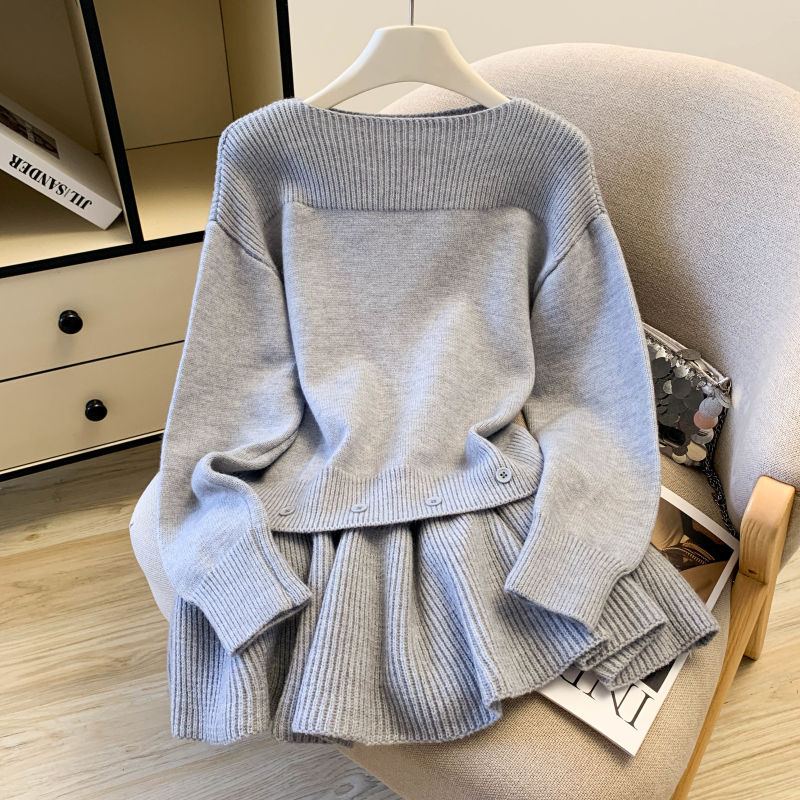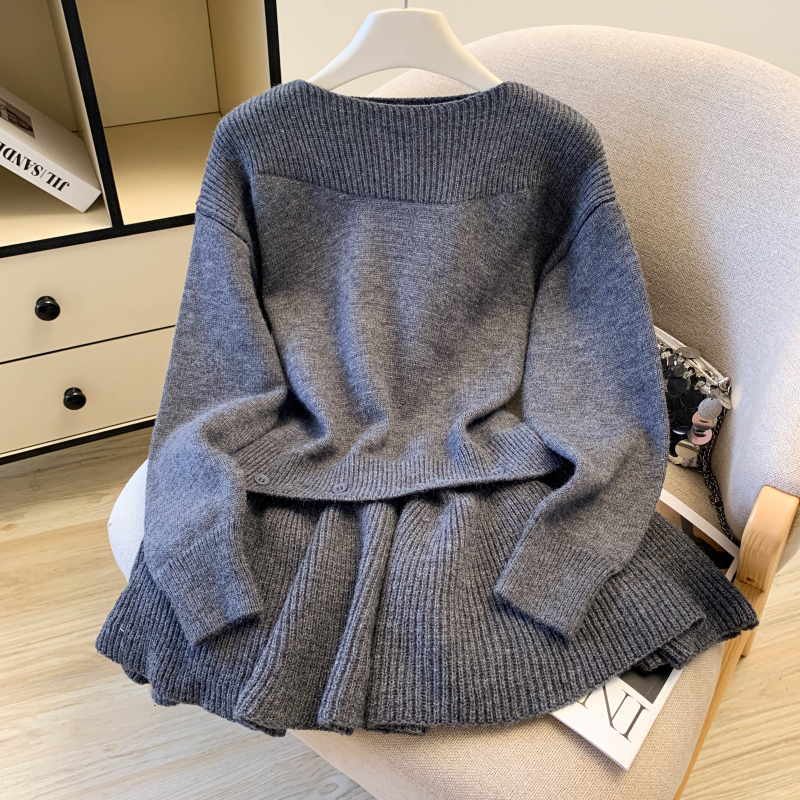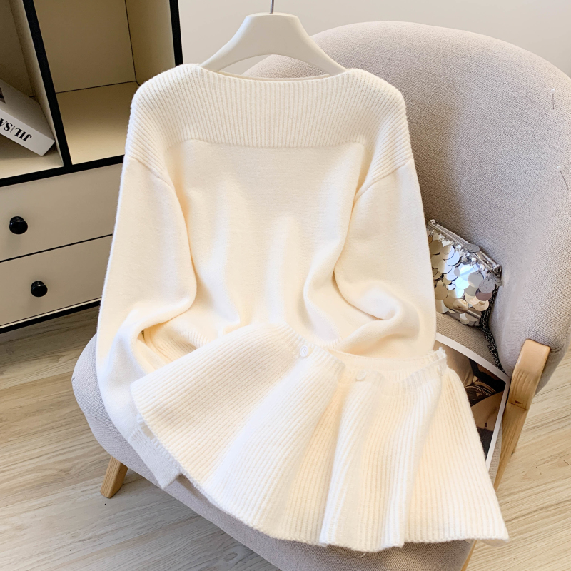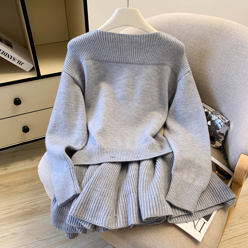 MY15300# 高级感套头针织毛衣可拆卸半身裙屁帘套装新款上衣女女裝貨源服裝批發